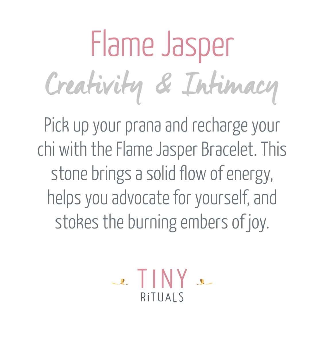 This Flame Jasper Energy Bracelet is here to set fire to your heart, awaken your senses, and provide a slow and steady burn that will balance and lead you to your very best self. Found in the same mines as Red Jasper and Tigers Eye, Flame Jasper comes with intense color schemes and a jolt of energy to match.