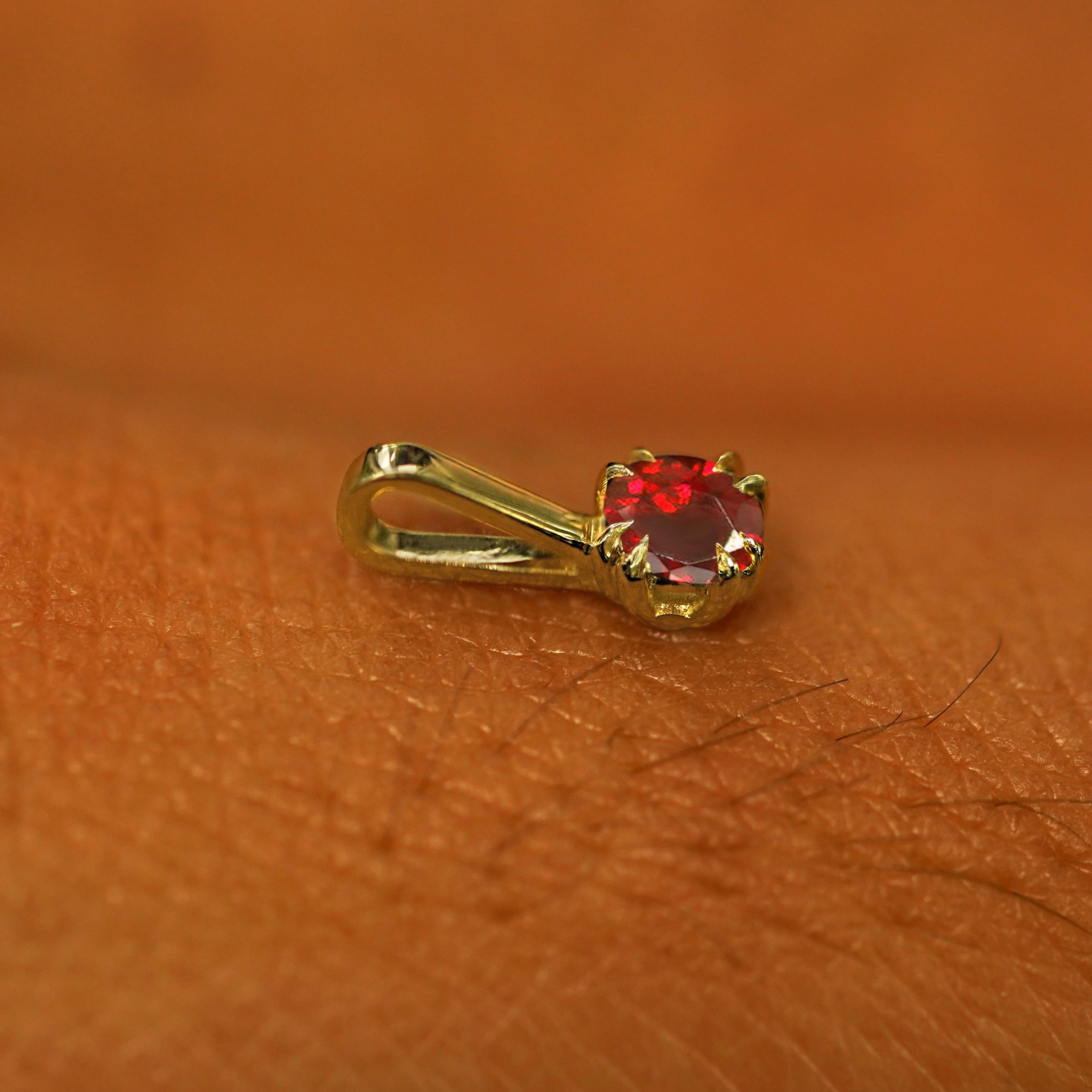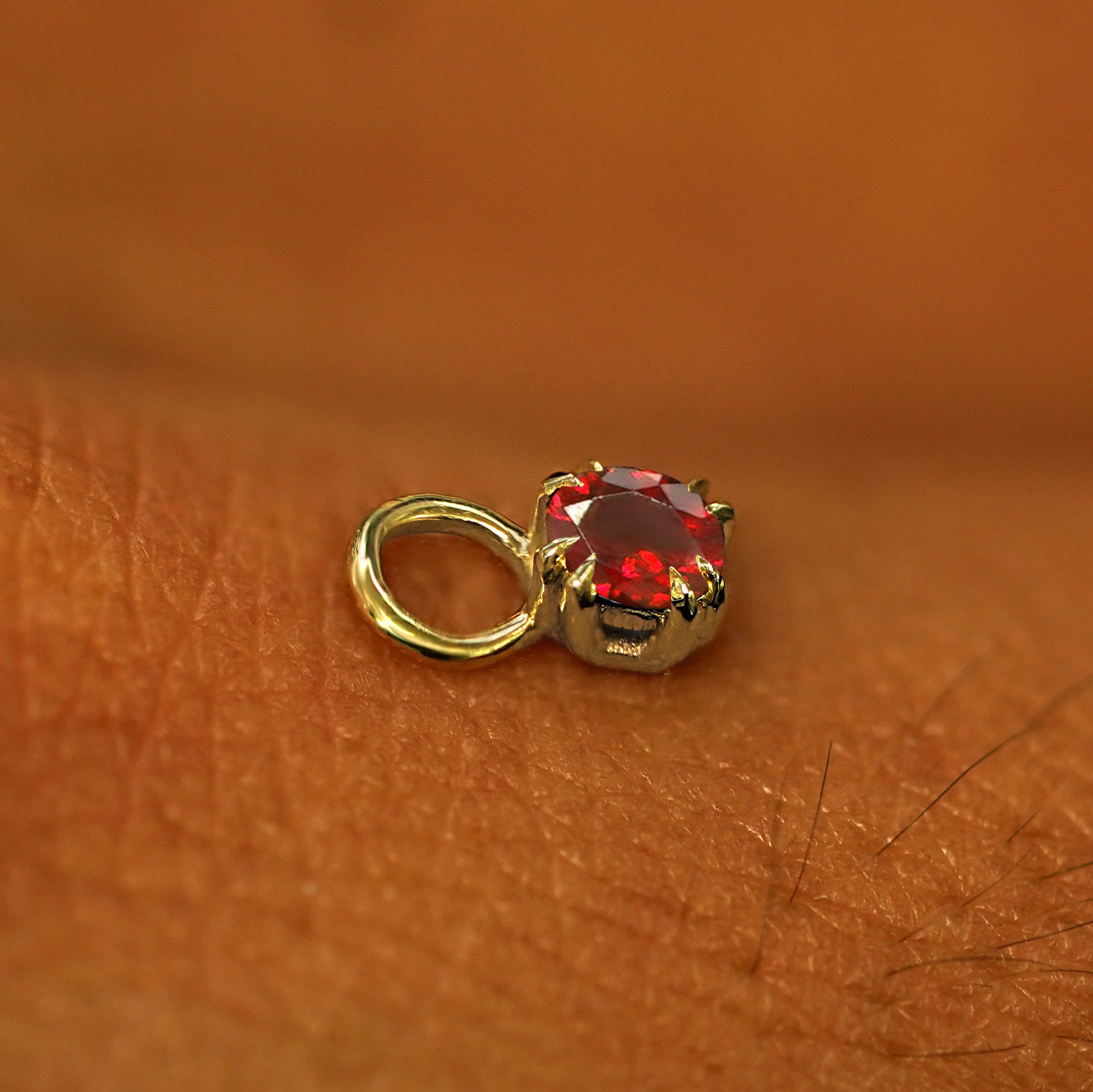 The radiant red of our Garnet charm is eye-catching head-turning and oh so beautiful. This dainty piece of January birthstone jewelry is the perfect pop of color to add to your favorite outfit. Our 14k solid gold gemstone charms make a great little addition to your chain, bracelet or hoop earrings.