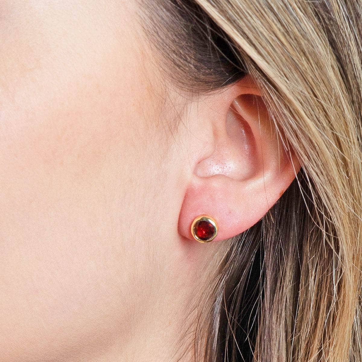 The perfect pomegranate, these Garnet Stud Earrings in sterling silver lend their light, lore, and powerful lilt to all those who want to stand up and shine. It’s amazing that the flash of silver and the subtle dance of light on this enigmatic red stone can have such a positive impact. Known for their style, prowess, and guiding light, these garnet studs are glorious.