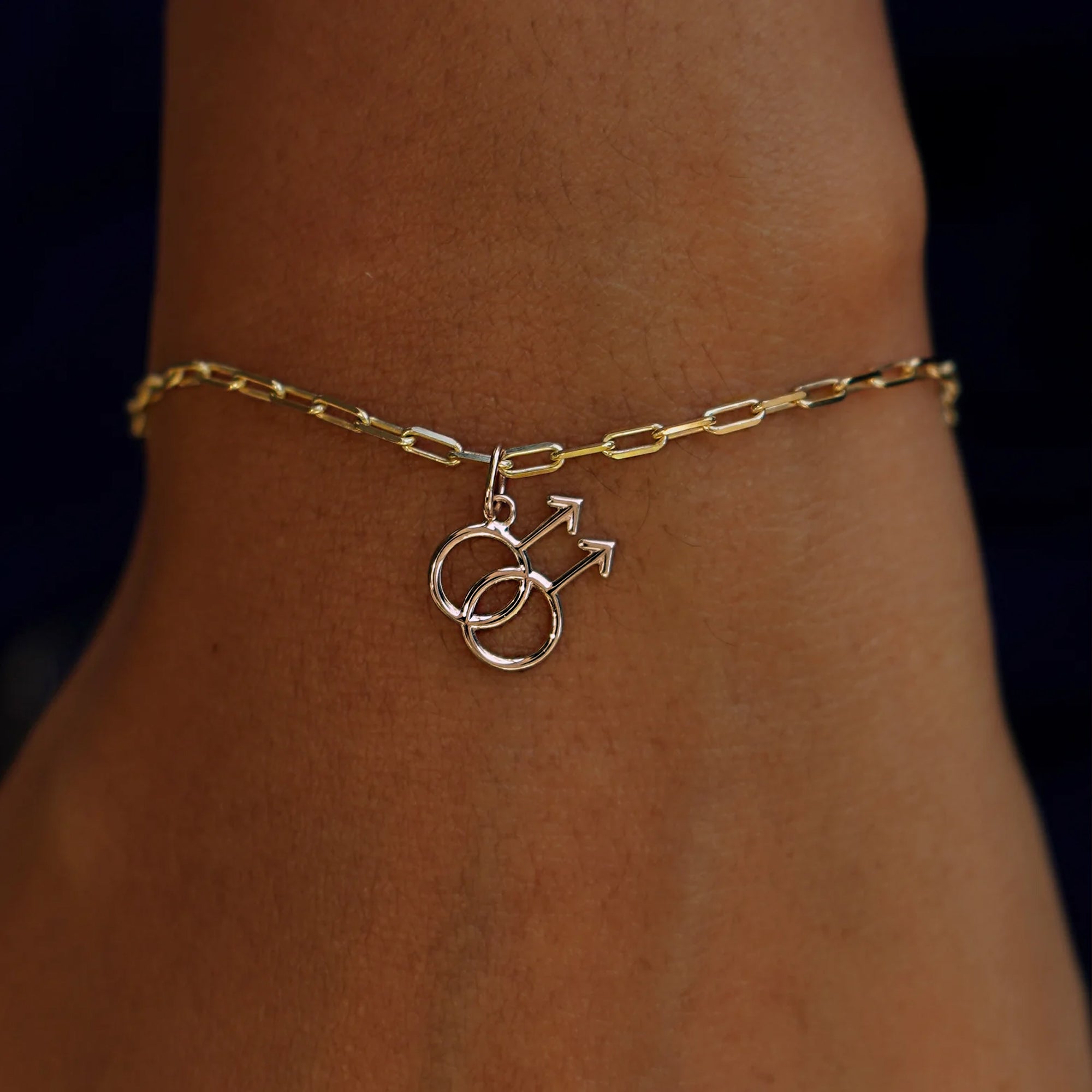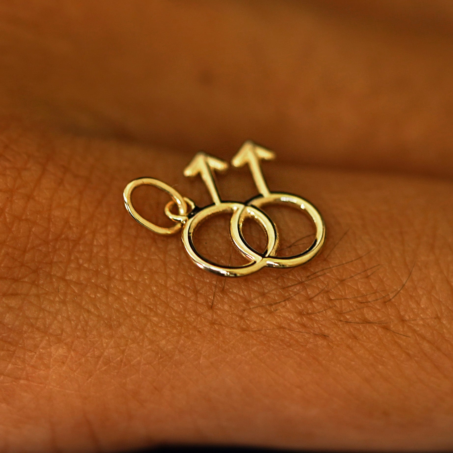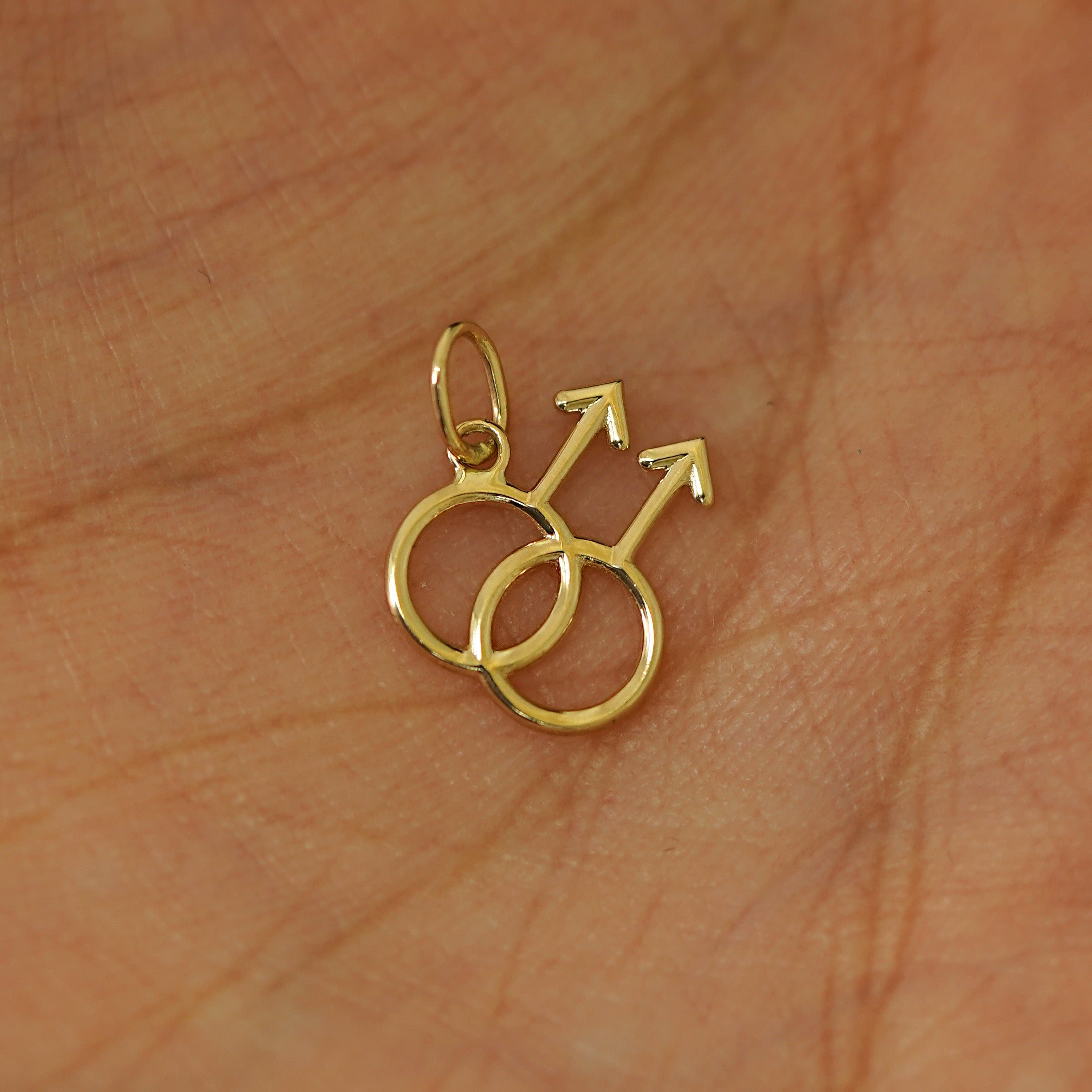 The gay symbol is a strong and meaningful one. This charm features two interlocking male symbols representing the love between men. The male symbol is the same glyph used to represent the planet Mars, named for the god of battle and agriculture, unlike his counterpart Ares, Mars was not a god of destruction but of growth and peace. Crafted from recycled solid 14k gold, you can wear this sustainable charm with pride.