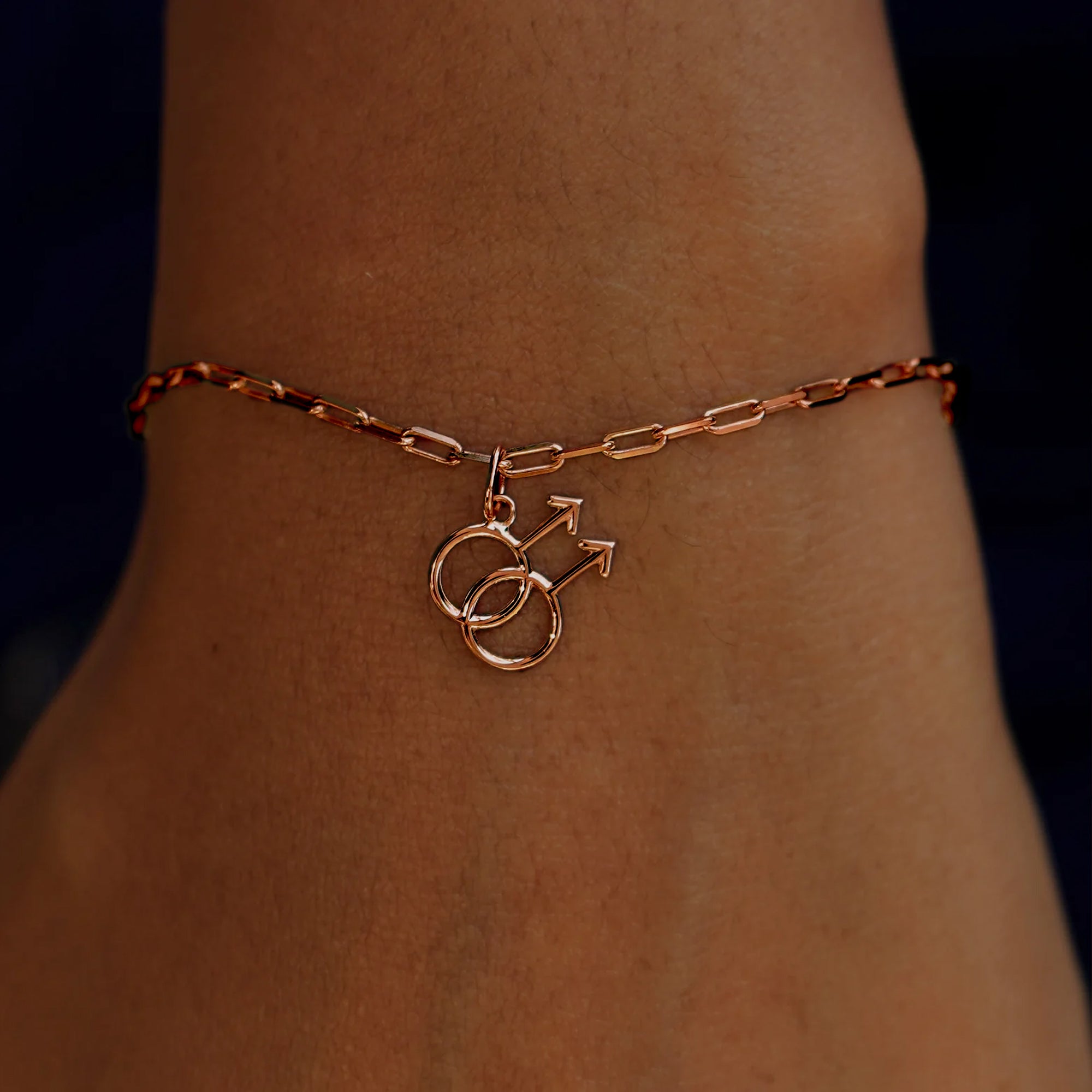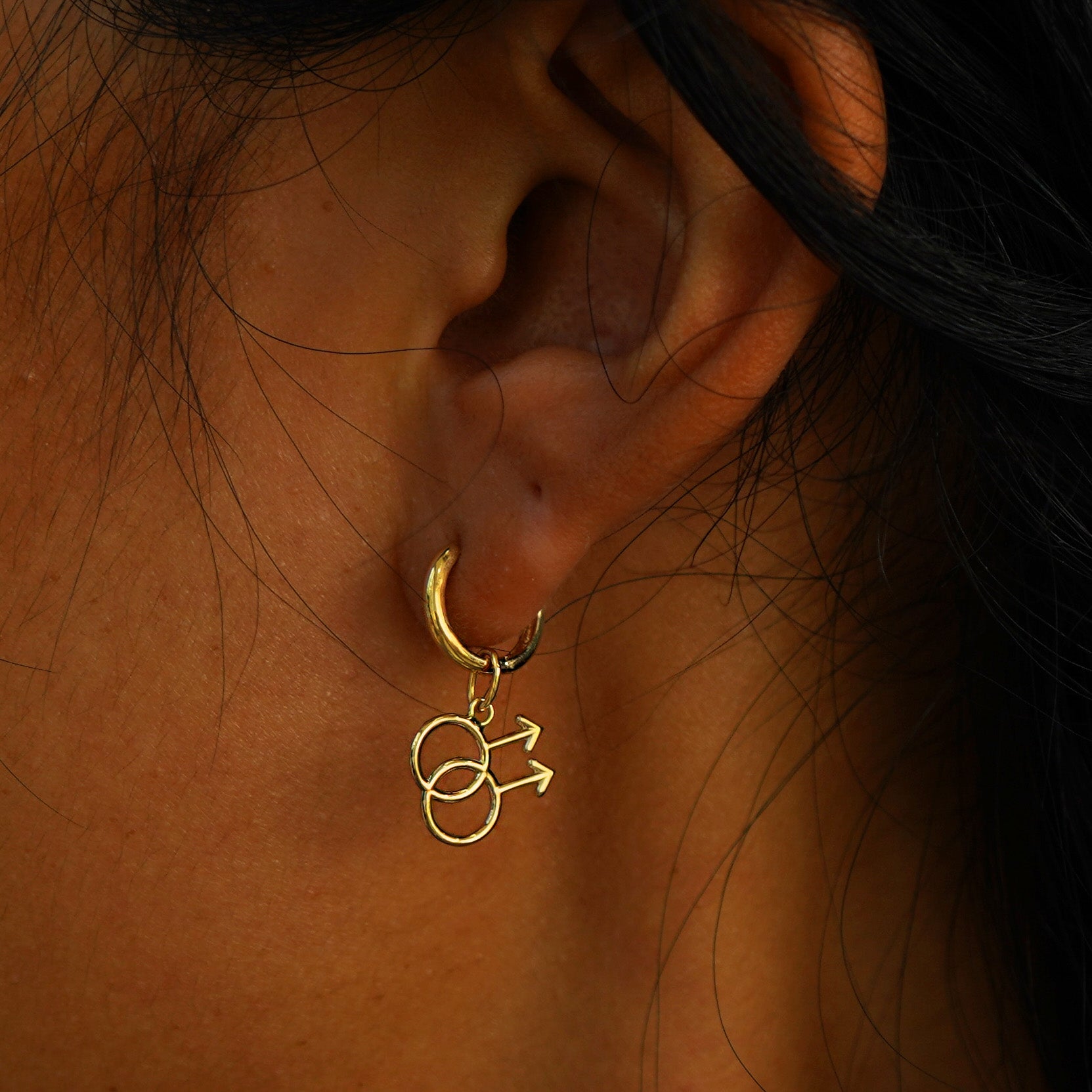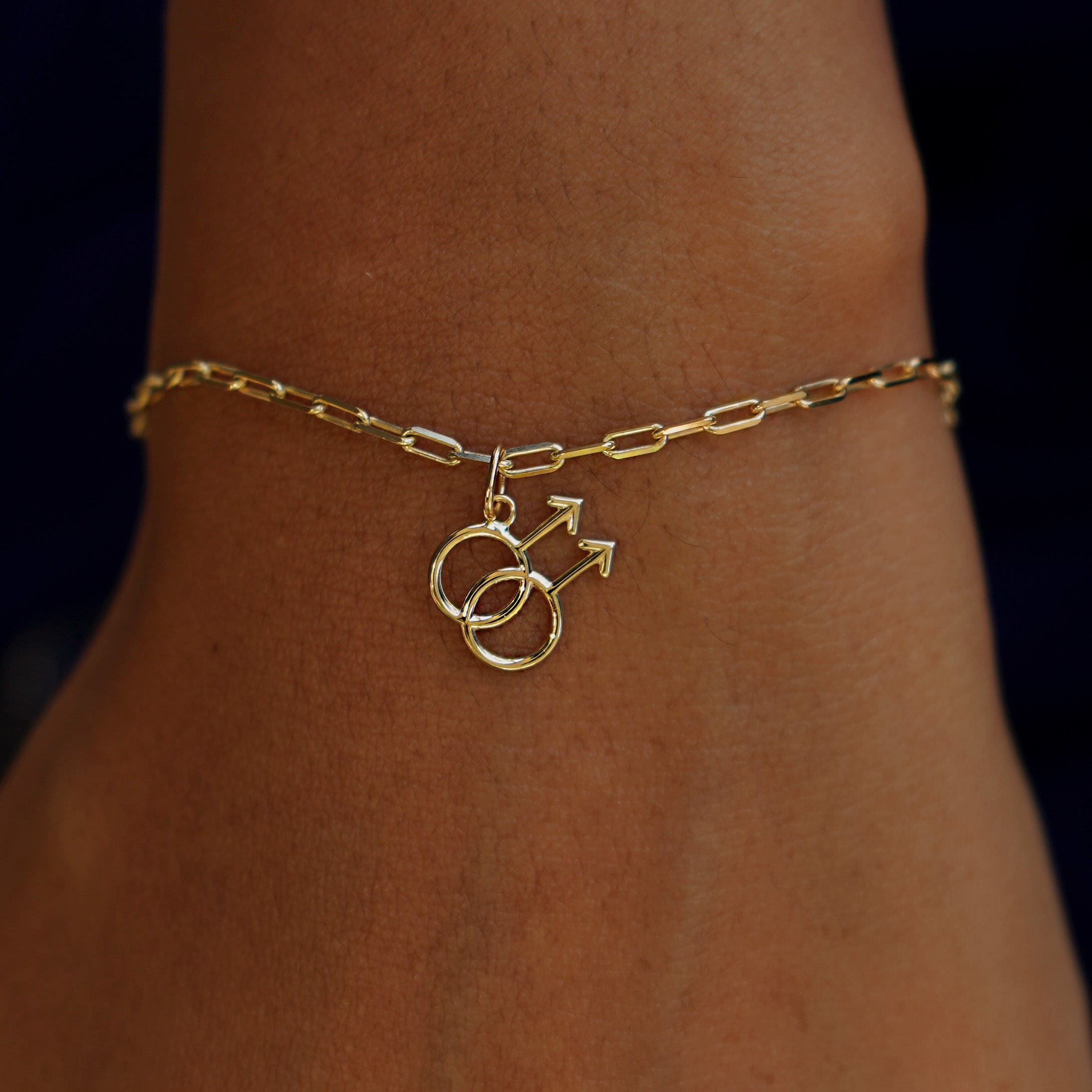 The gay symbol is a strong and meaningful one. This charm features two interlocking male symbols representing the love between men. The male symbol is the same glyph used to represent the planet Mars, named for the god of battle and agriculture, unlike his counterpart Ares, Mars was not a god of destruction but of growth and peace. Crafted from recycled solid 14k gold, you can wear this sustainable charm with pride.