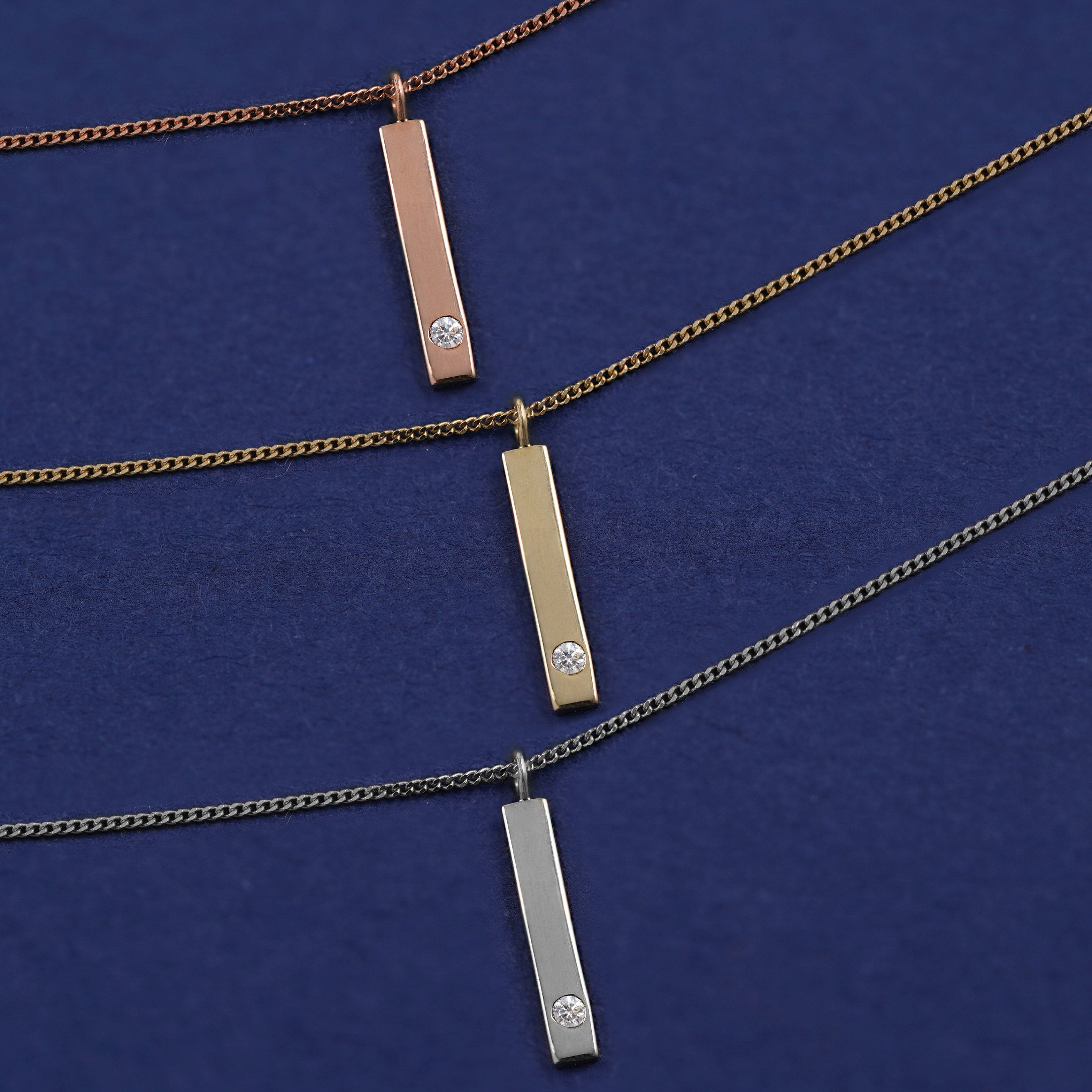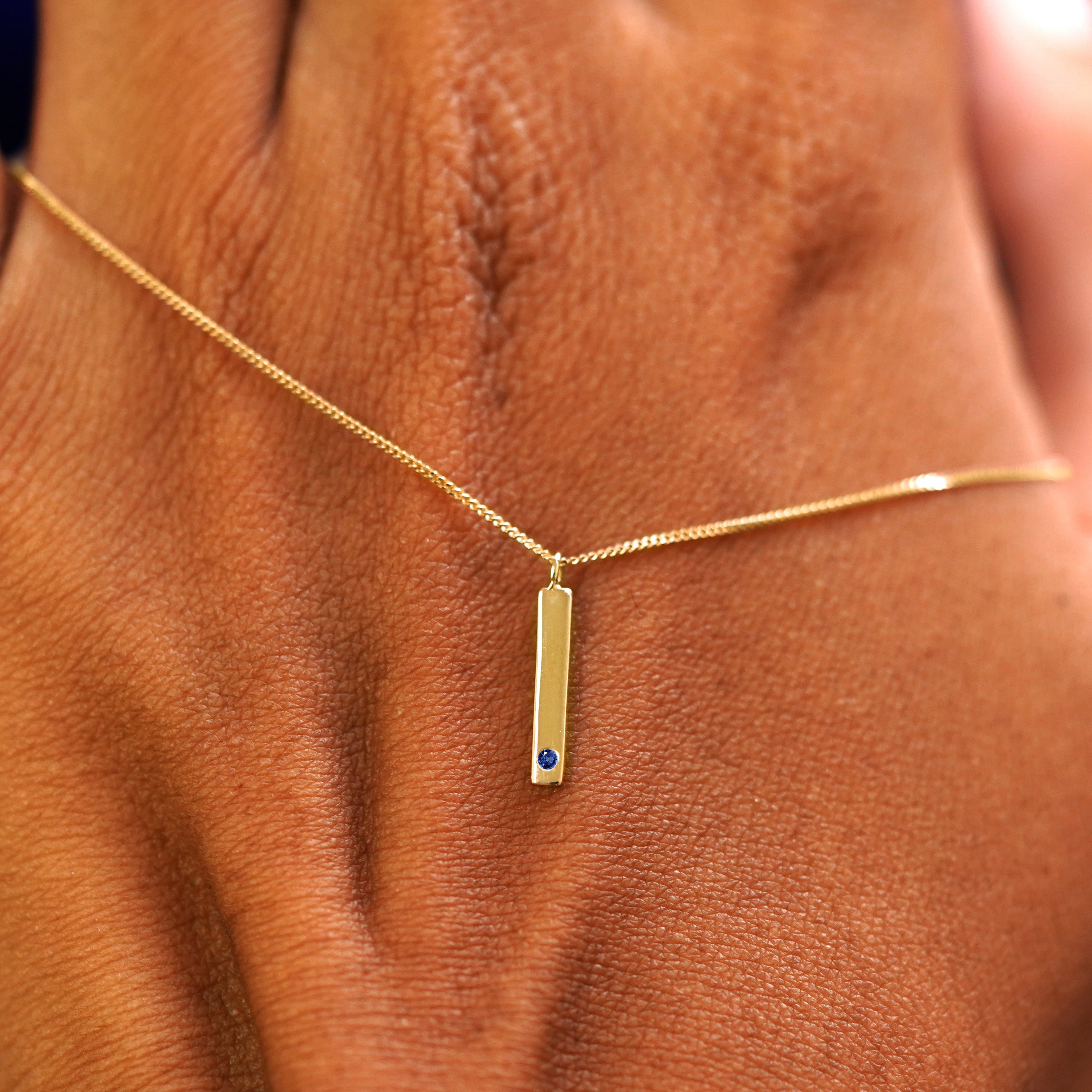 Scale and proportion are what make this Gemstone Bar necklace stand out yet blend in. The size of the gemstone solitaire is carefully chosen to be a perfect match to the sustainable gold bar pendant, and it shows in the powerful subtlety of this design. Wear this delicate gold necklace wherever and however you want - leave it on whether you take a shower or a nap. The Essential Chain secures with a lobster lock and easy-to-grip Automic Gold AU plate.