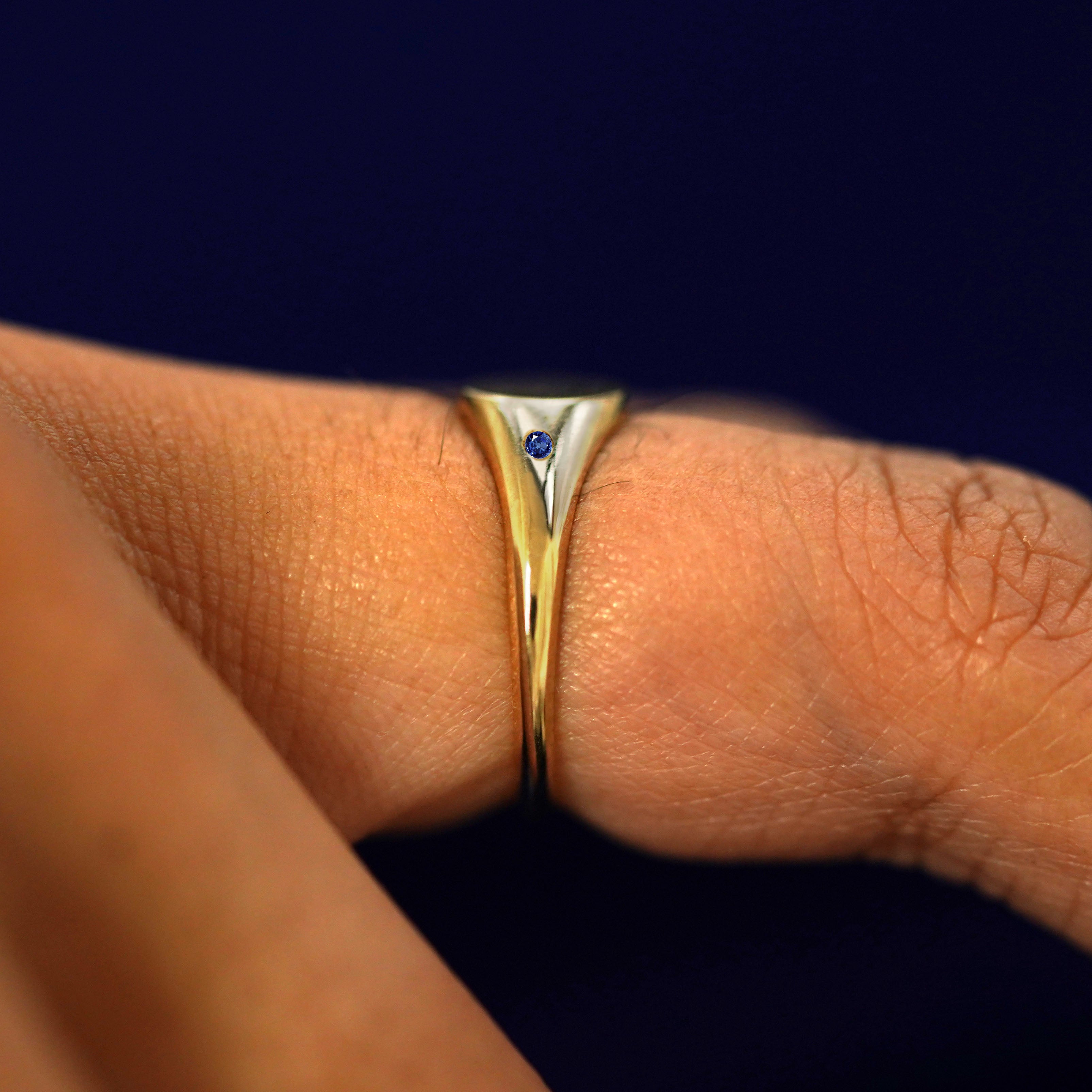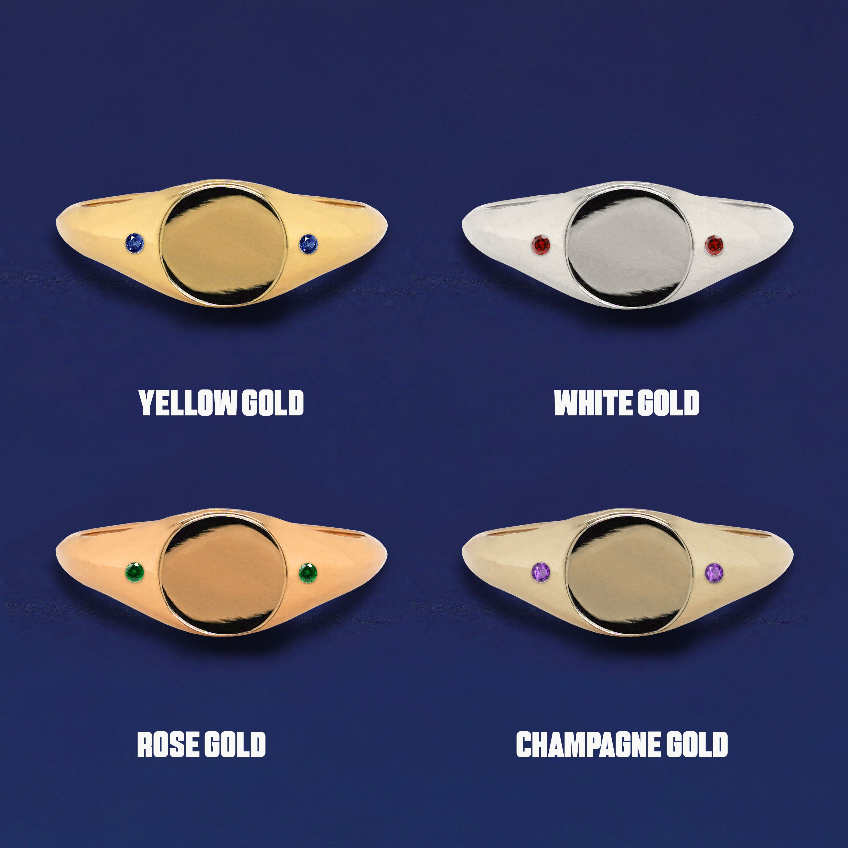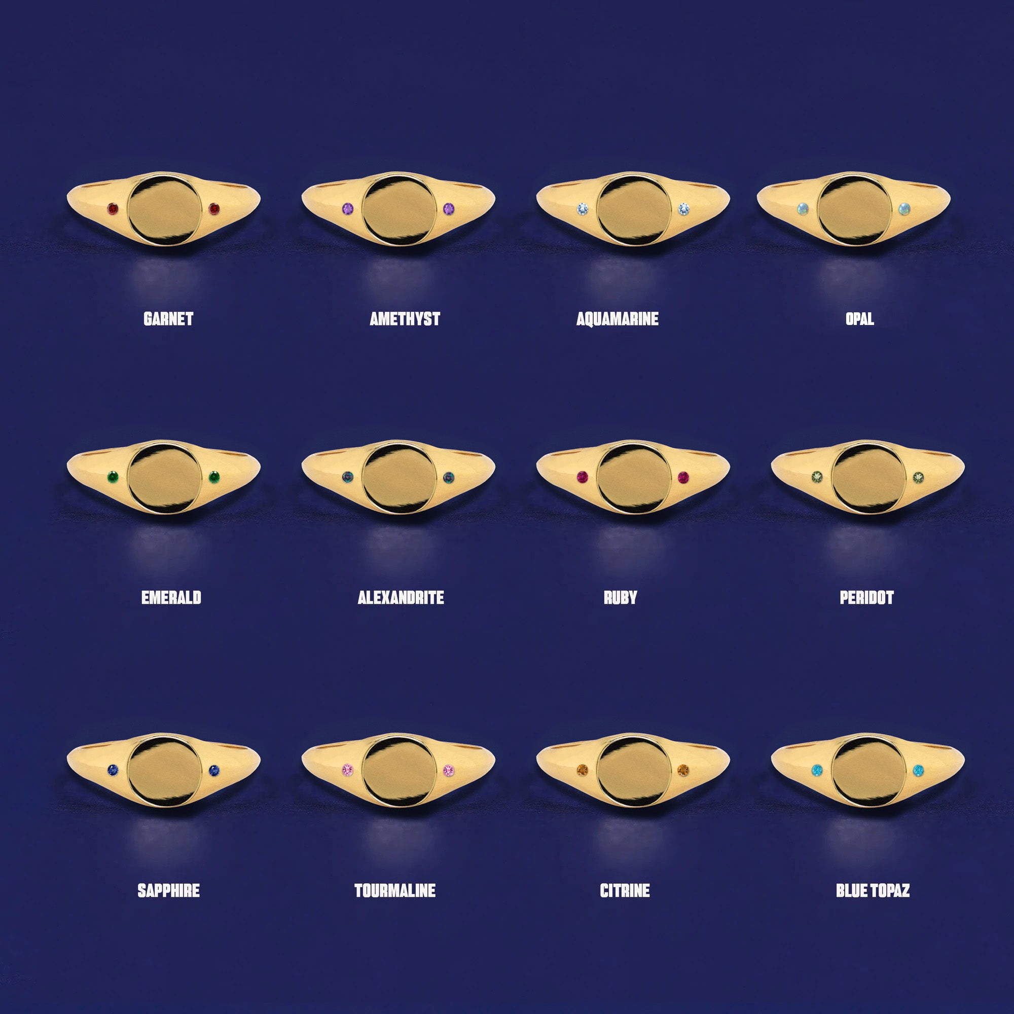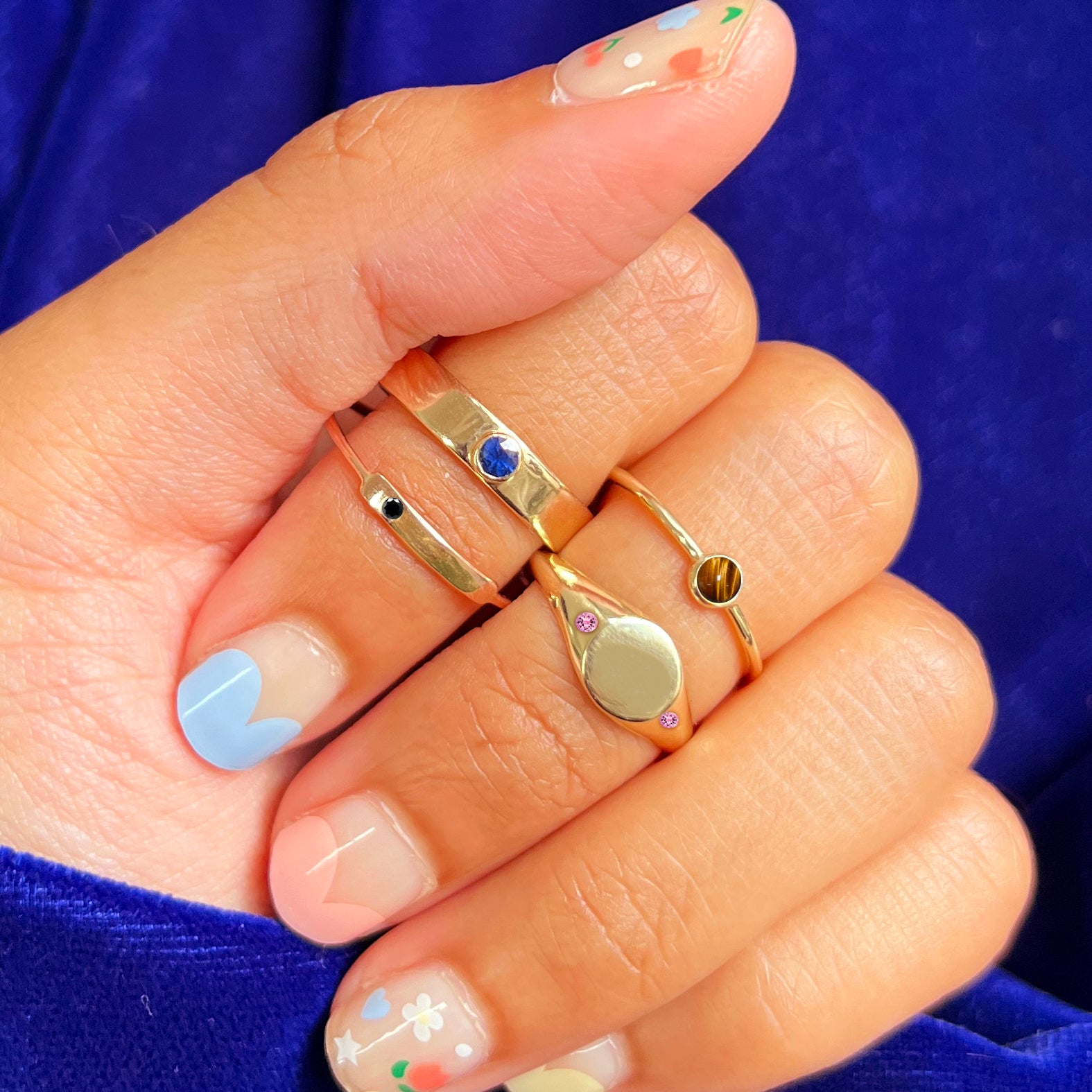 The perfect everyday jewelry staple with a little hint of sparkle, our birthstone signet ring is everything you’ve ever wanted. This beautiful statement ring is made with 14k solid gold and glittering 2mm gemstones. This ring is completely solid, with no cutouts under the signet making it super comfortable to wear and easy to glide onto your finger. Style tip: we like it as a pinky ring :)