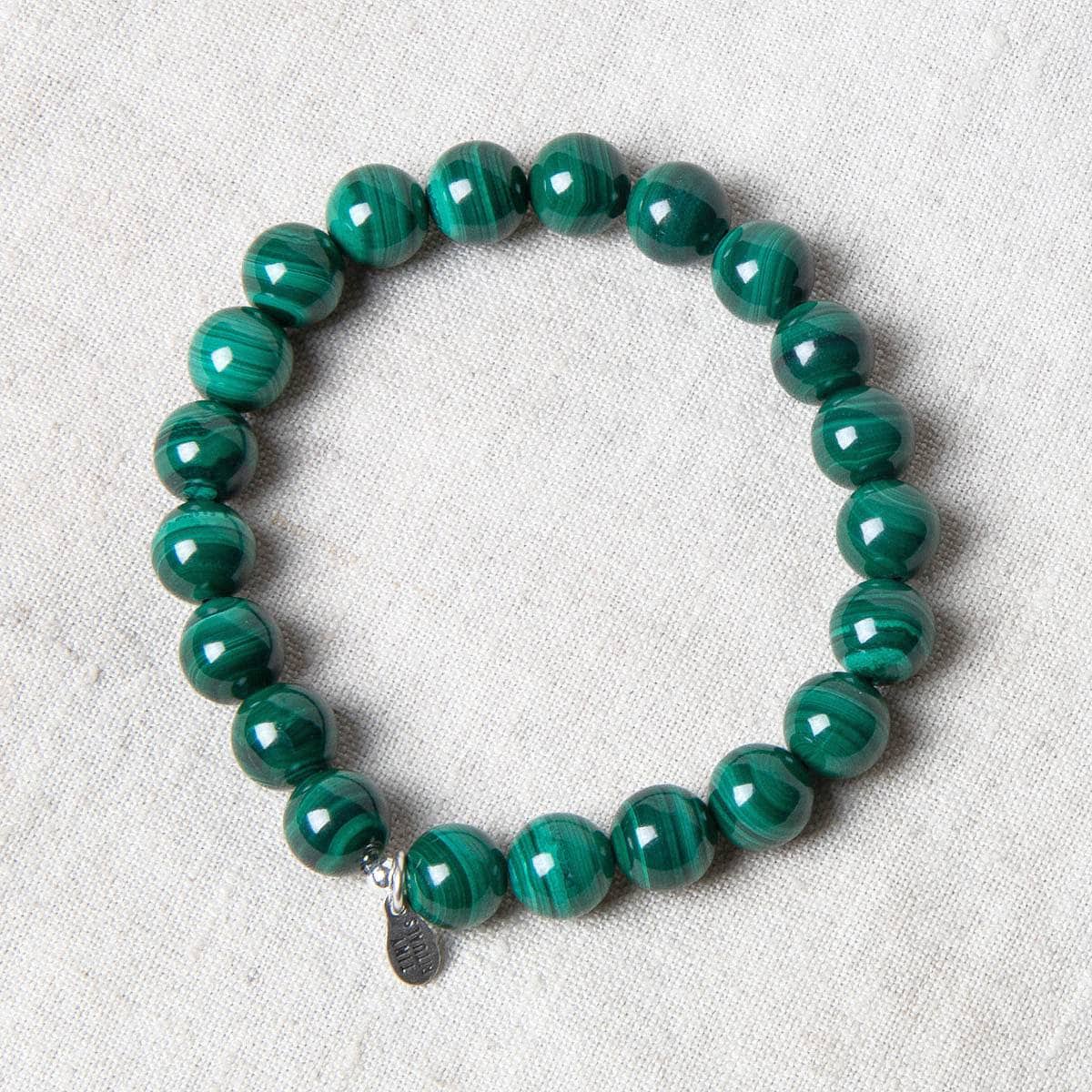 Spring days and sweet trees seem to be stashed in this Malachite Energy Bracelet. Now with bold and beautiful 8mm genuine Malachite gemstone beads, you can slip this healing amulet on your wrist and let it lead the way with protection, growth, and harmonious heart chakra healing.