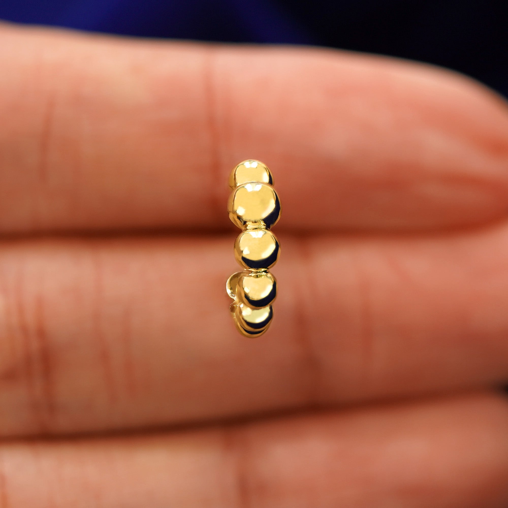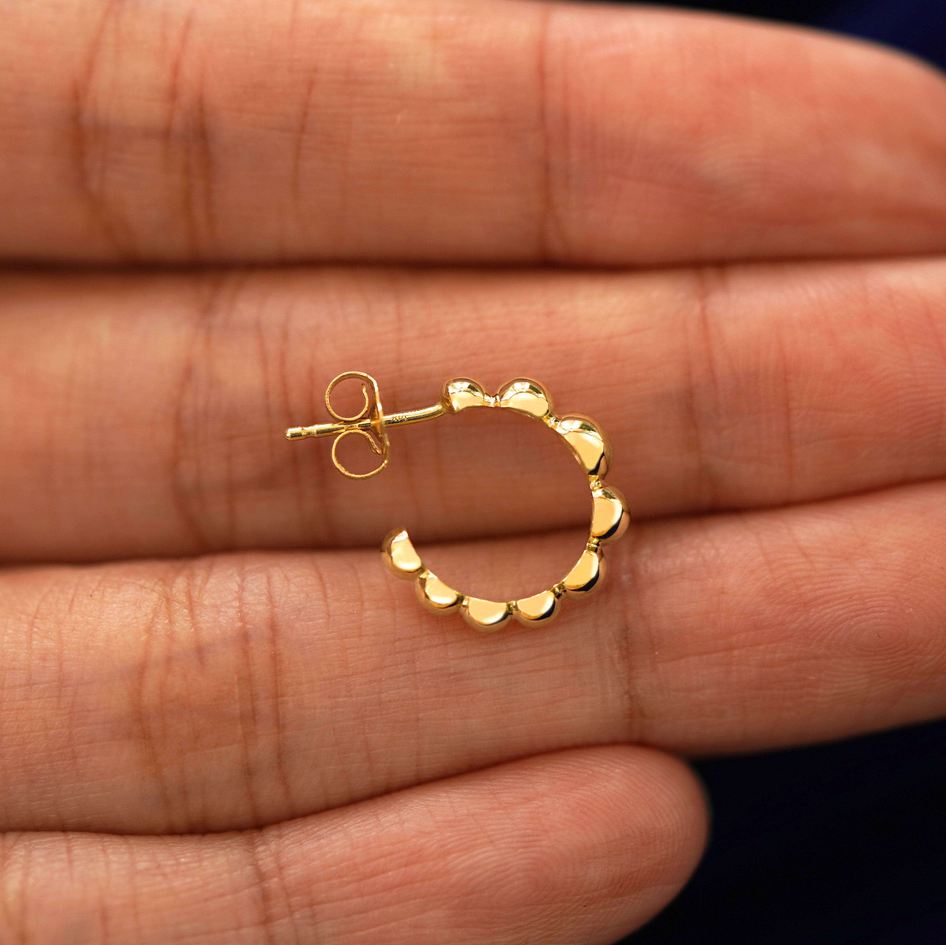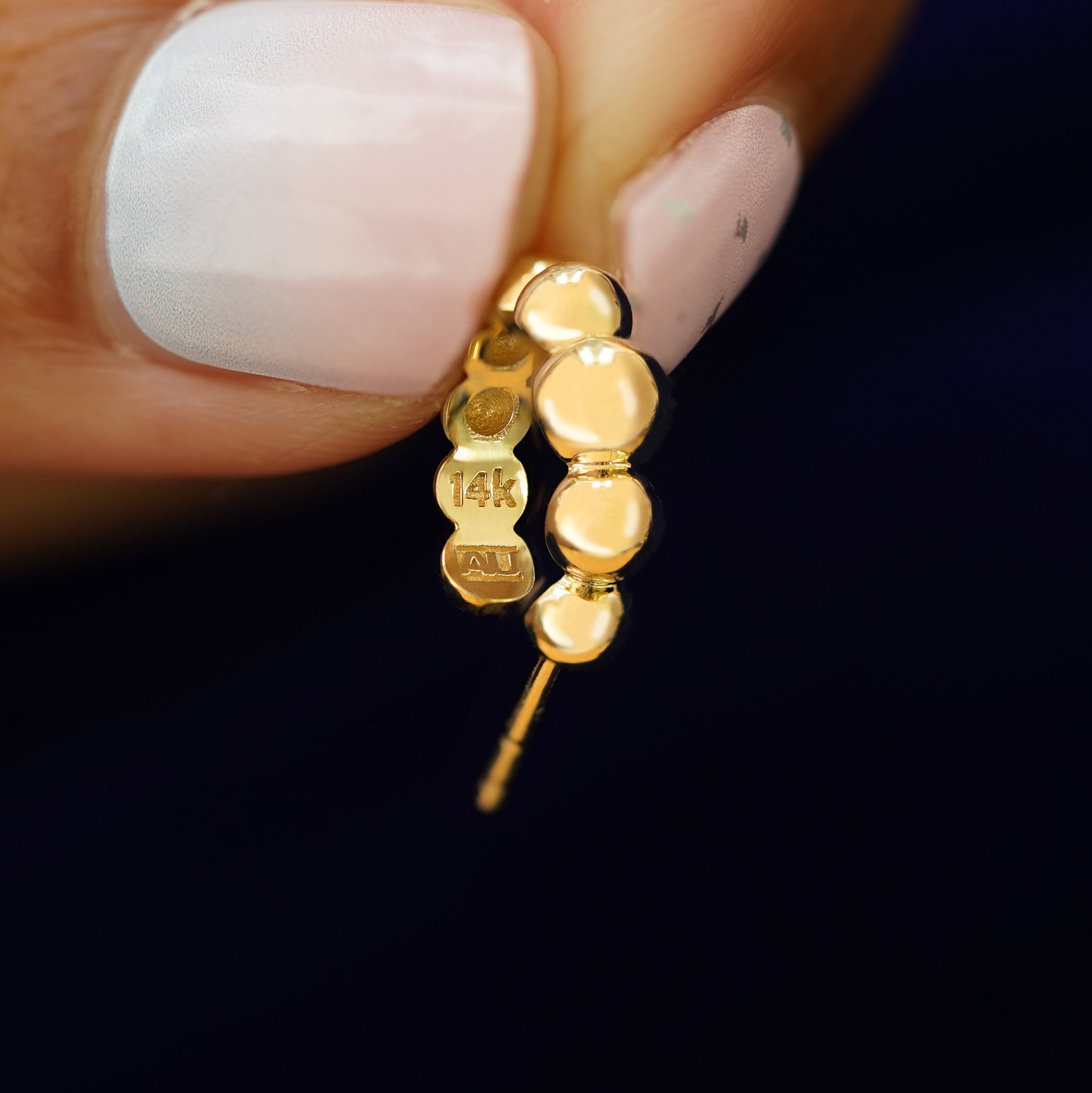 Just like our Mini Puffy Beaded Hoops, these graduated hoop earrings feature a chic beaded design that’s puffy in the front and open in the back. The beads on this open hoop are graduated in size from a head-turning look. Crafted from solid 14k gold, these hoops are lightweight, comfortable, and won’t dent or deform so you can wear them every day!