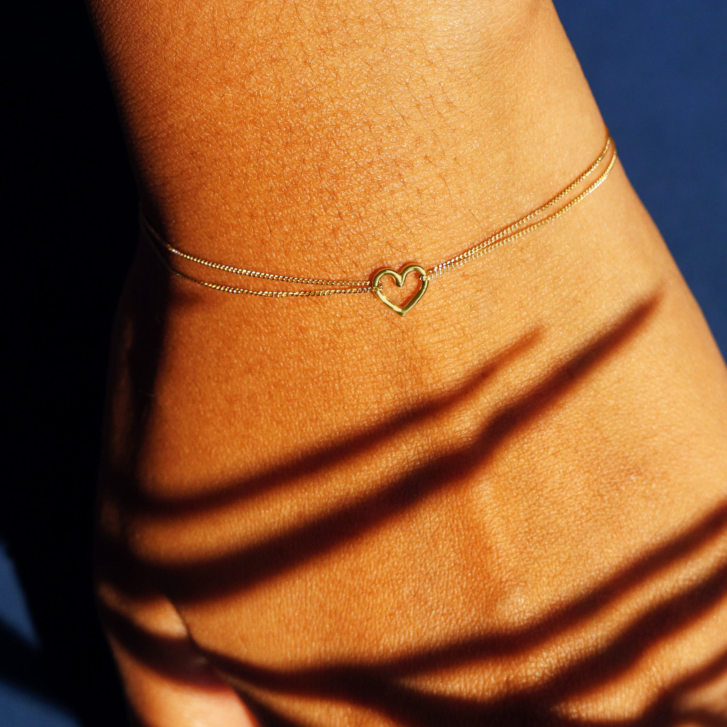 You’ll fall in love with this stunning heart bracelet. A cute little open heart charm and our strong and subtle Essential Chain give this 14k solid gold bracelet substance and sparkle. Our 14 karat gold jewelry is minimalist style at its finest - so you can wear this dainty beauty wherever, whenever. Secures with a lobster lock and easy-to-grip Automic Gold AU plate.