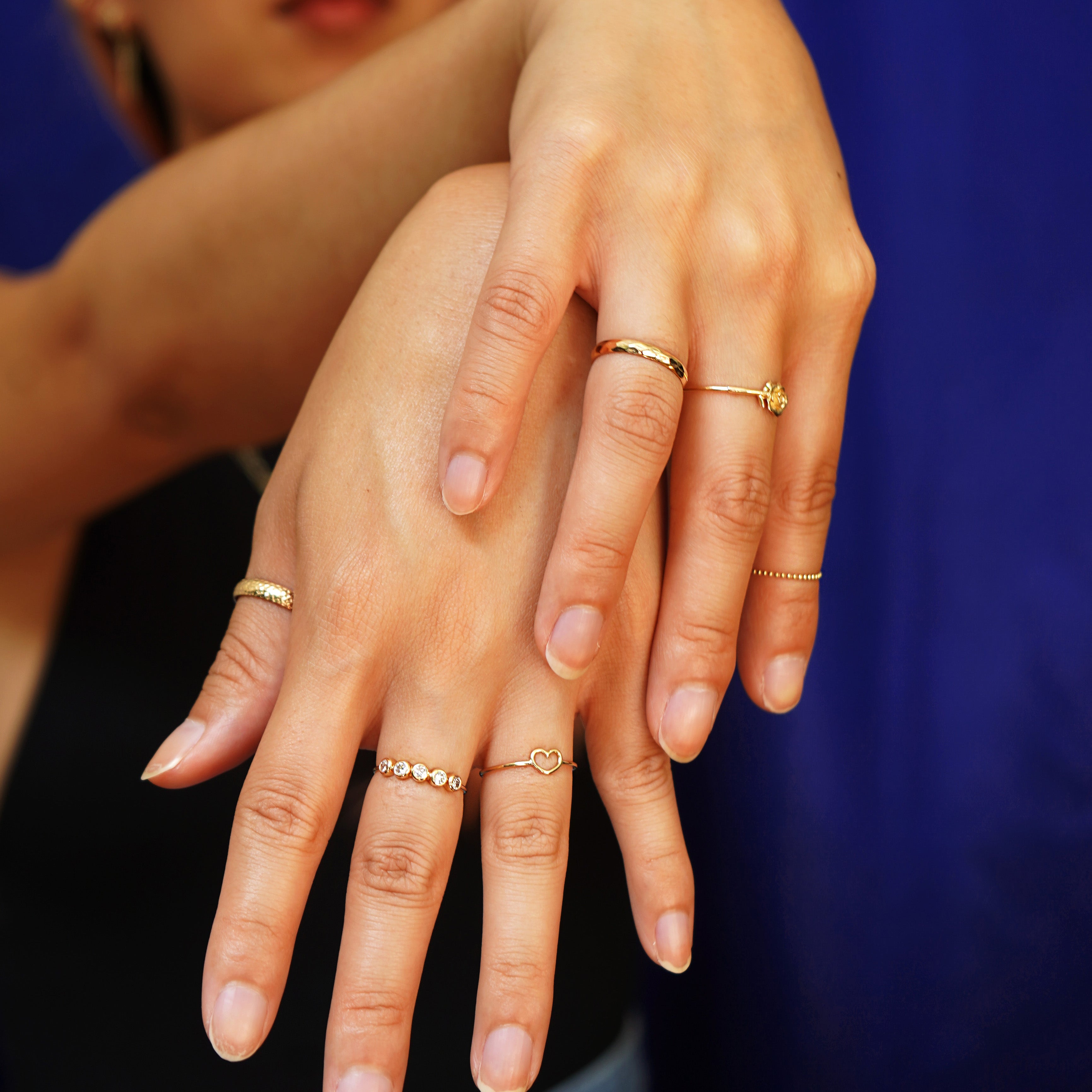 Wearing your heart on your sleeve is cute, but wearing it on your fingers is fabulous. This heart ring is a dainty little babe that you’re sure to fall in love with. Since it’s made from solid gold or platinum, you can wear this minimalist ring whether you’re going out or staying in. Pair this perfect stacking piece with our other rings!