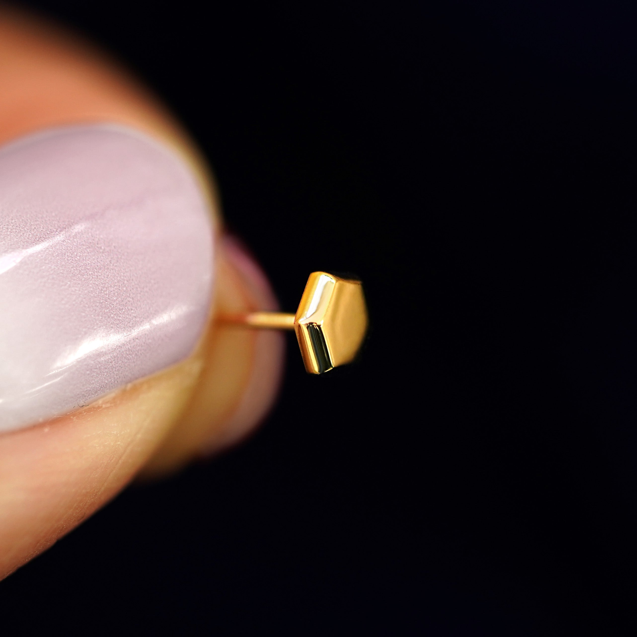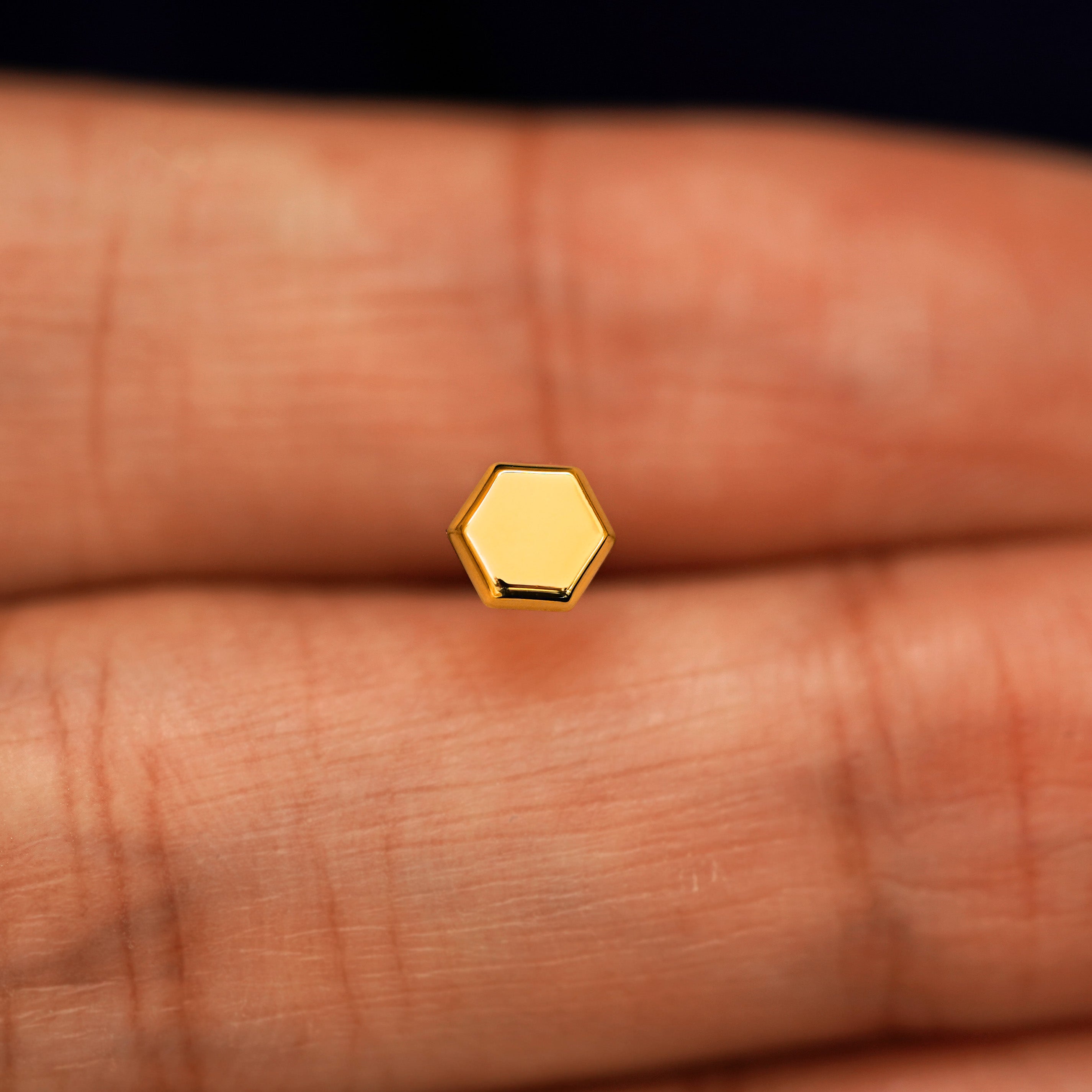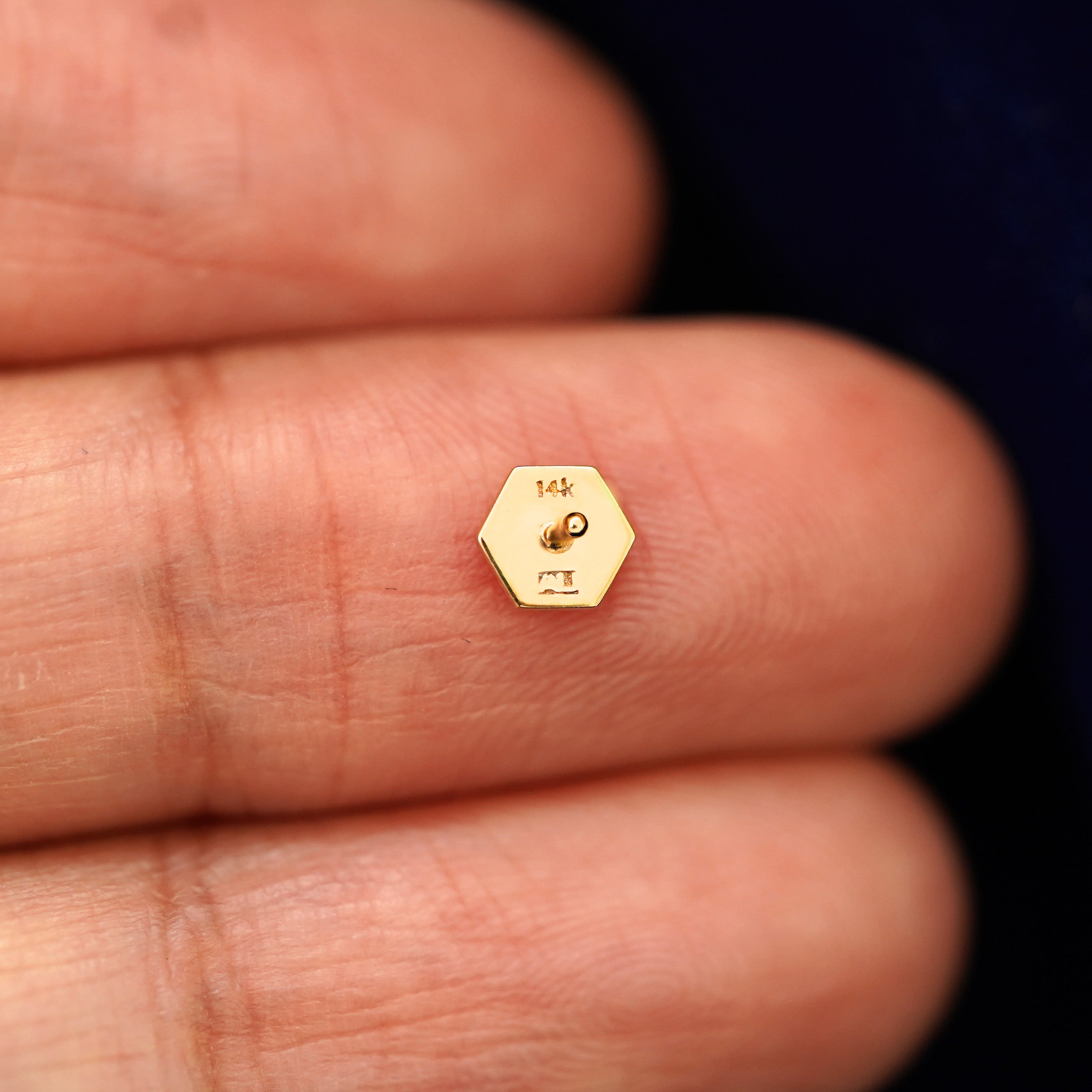Sweet like honeycomb and stylishly modern, these hexagon earrings are shapely little studs perfect for everyday wear. Crafted with recycled 14k solid gold, these stud earrings feature a raised hexagon design with rounded edges so they are durable, comfortable, and sustainable.