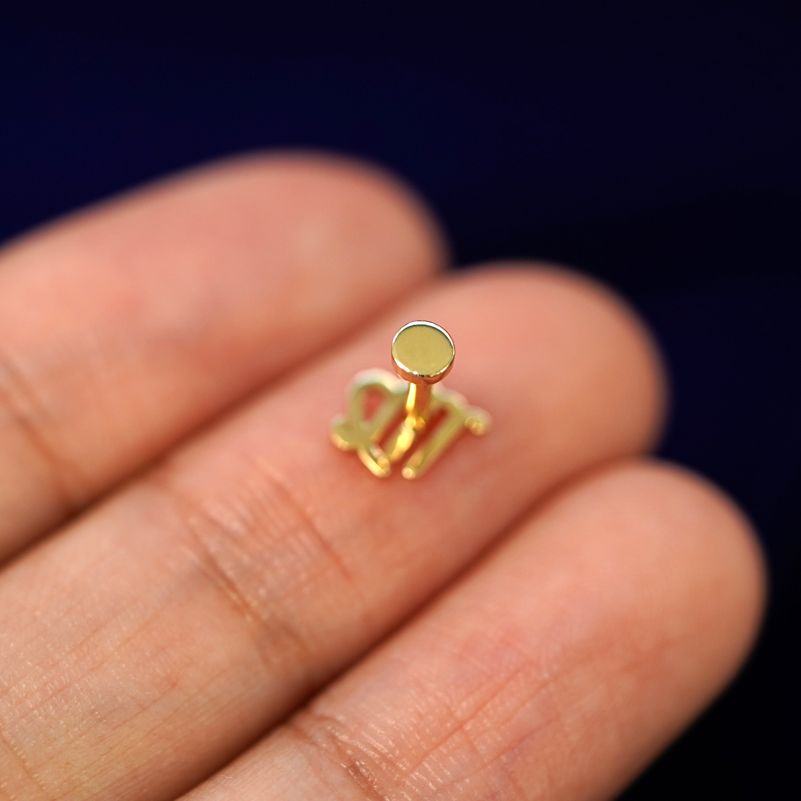 Show off your star sign with this 14k solid gold horoscope flat back push in stud. From Aries to Pisces, this zodiac threadless stud piercing is the perfect gift for any astrology lover. Our flatbacks are crafted only in 14k yellow gold to avoid sensitivity.
