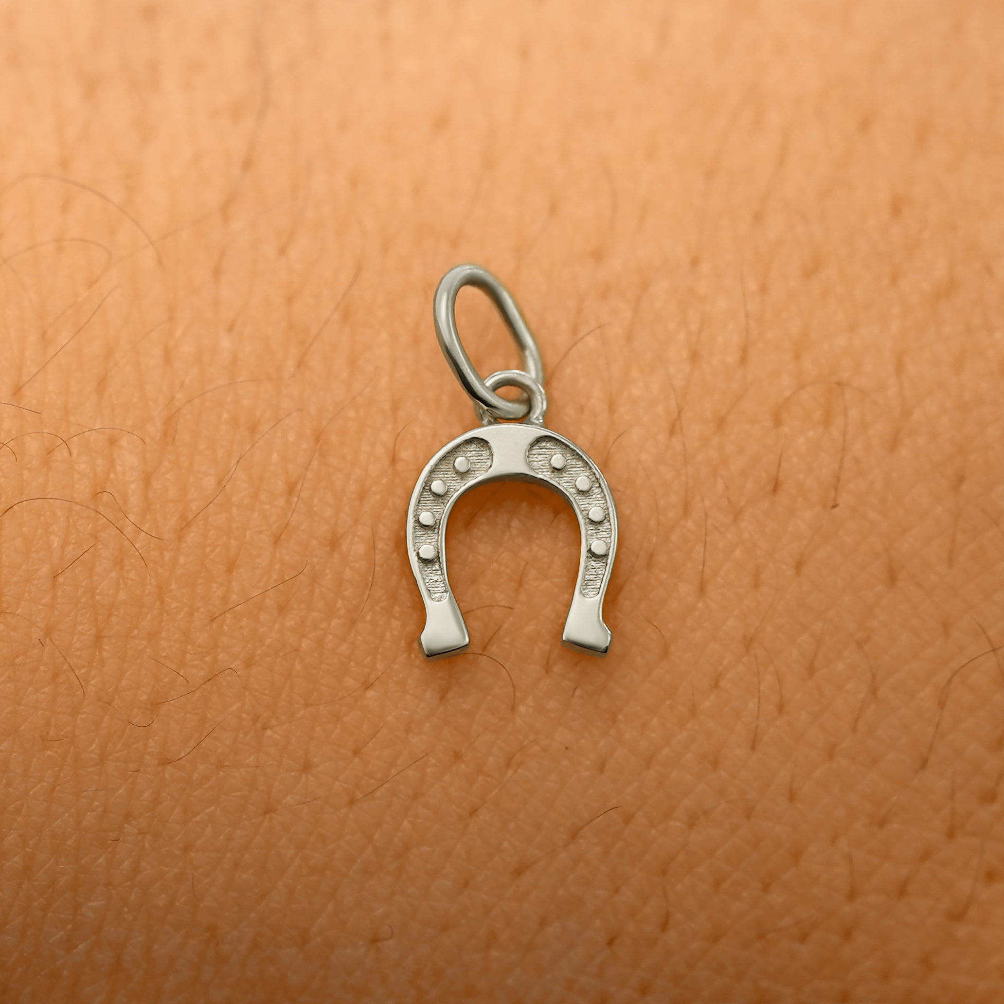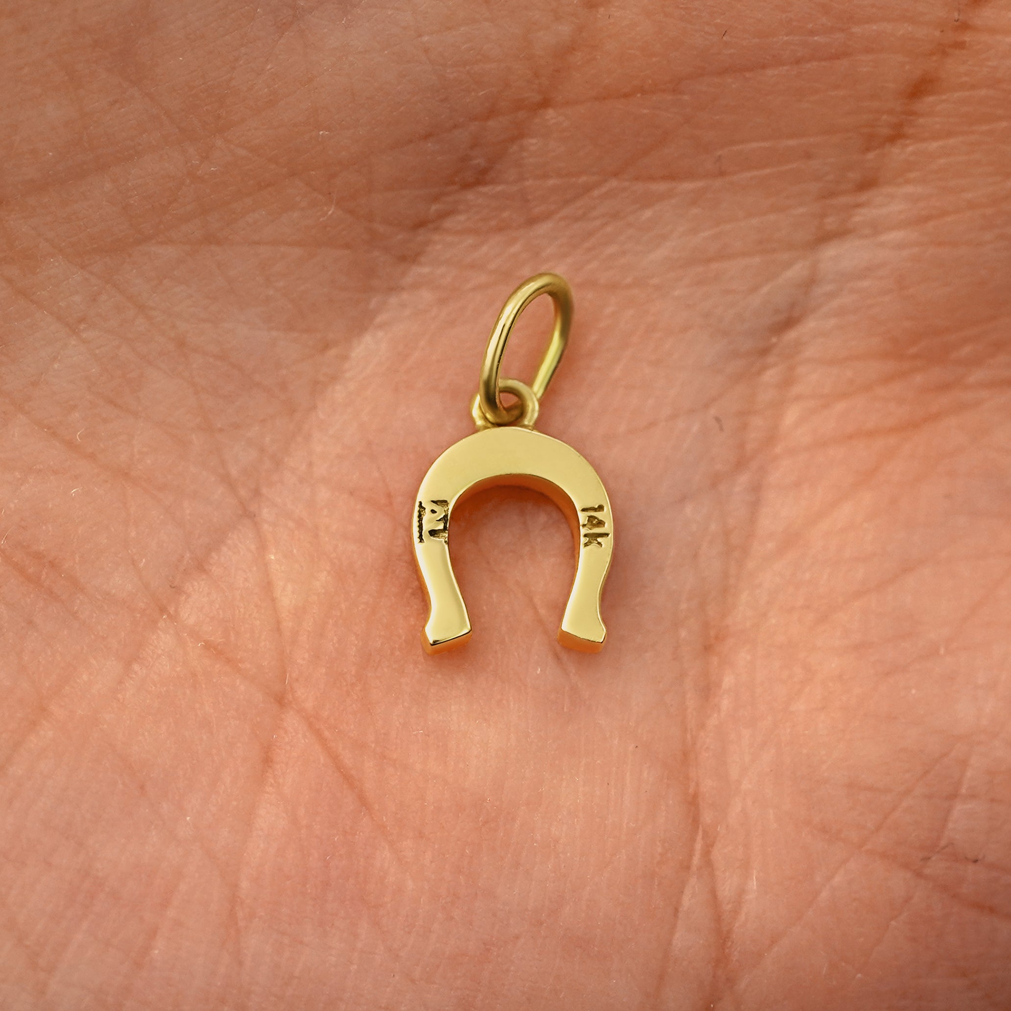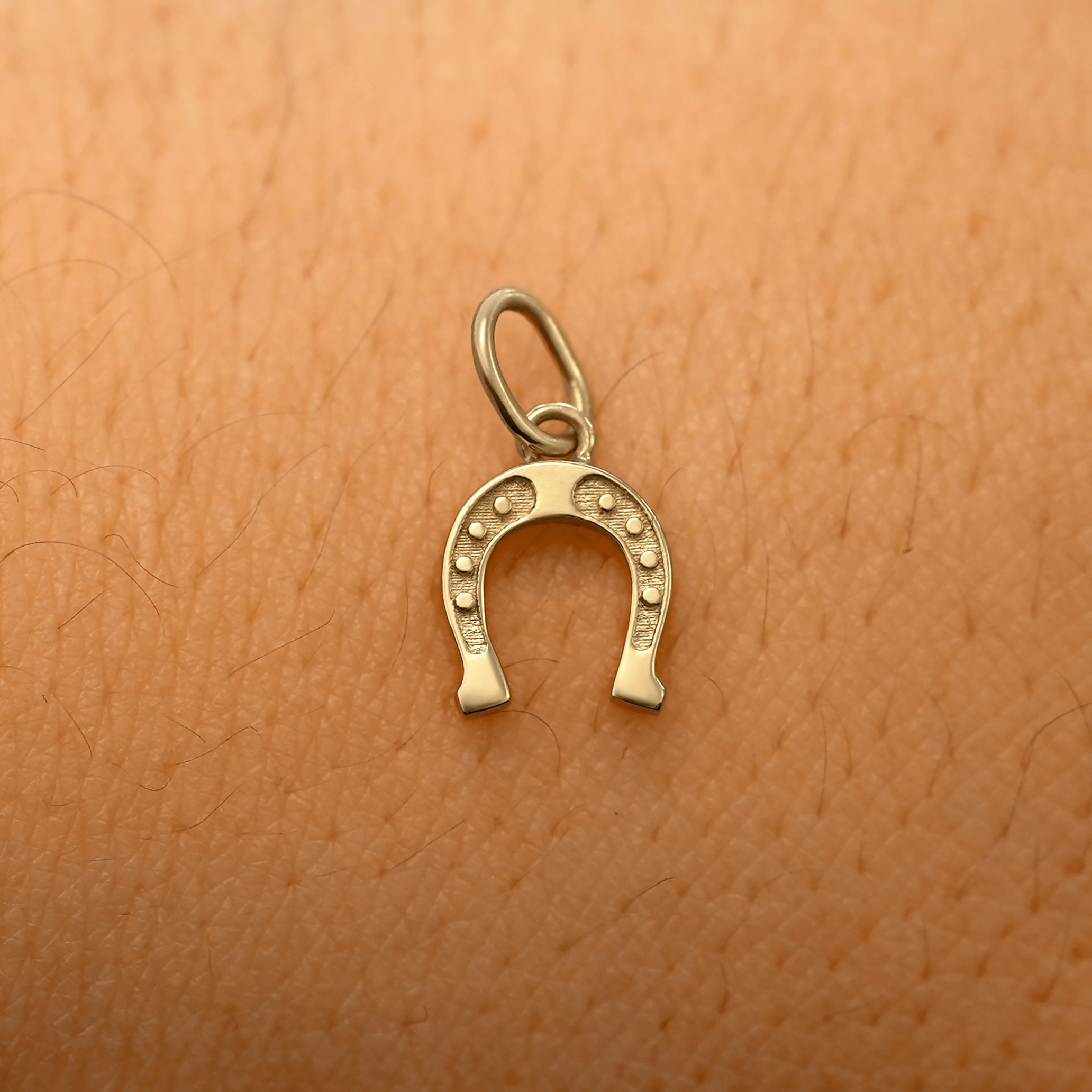 A symbol of luck and protection, this solid gold horseshoe charm is a stunning addition to any lucky charm collection. With its sleek rounded horse shoe shape and striking rivet detailing this charm is perfect for anyone who loves horses or just needs a little extra luck.