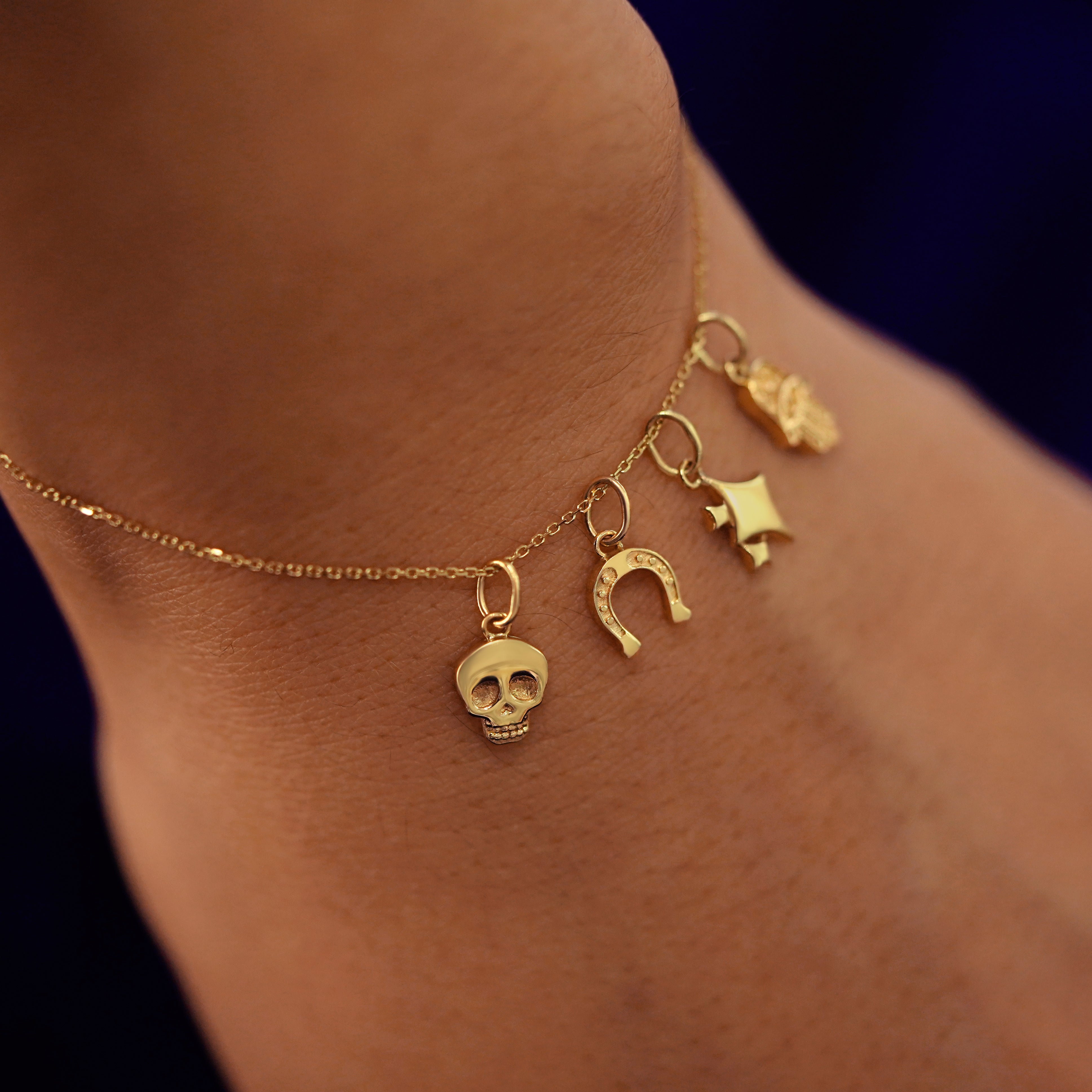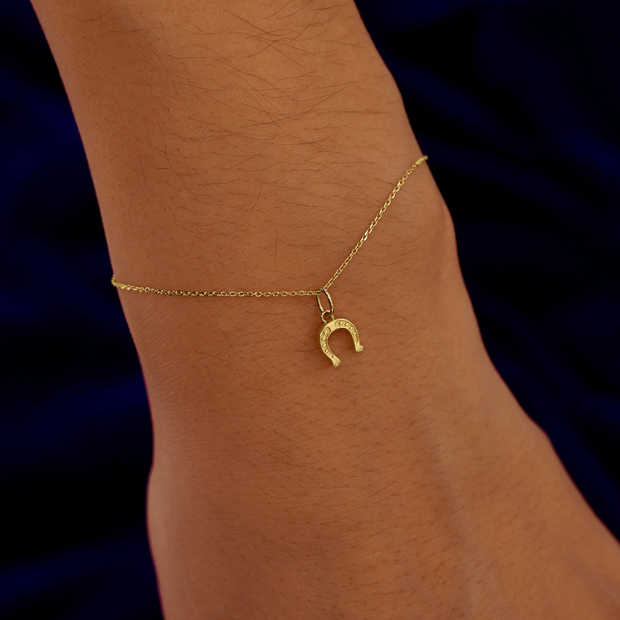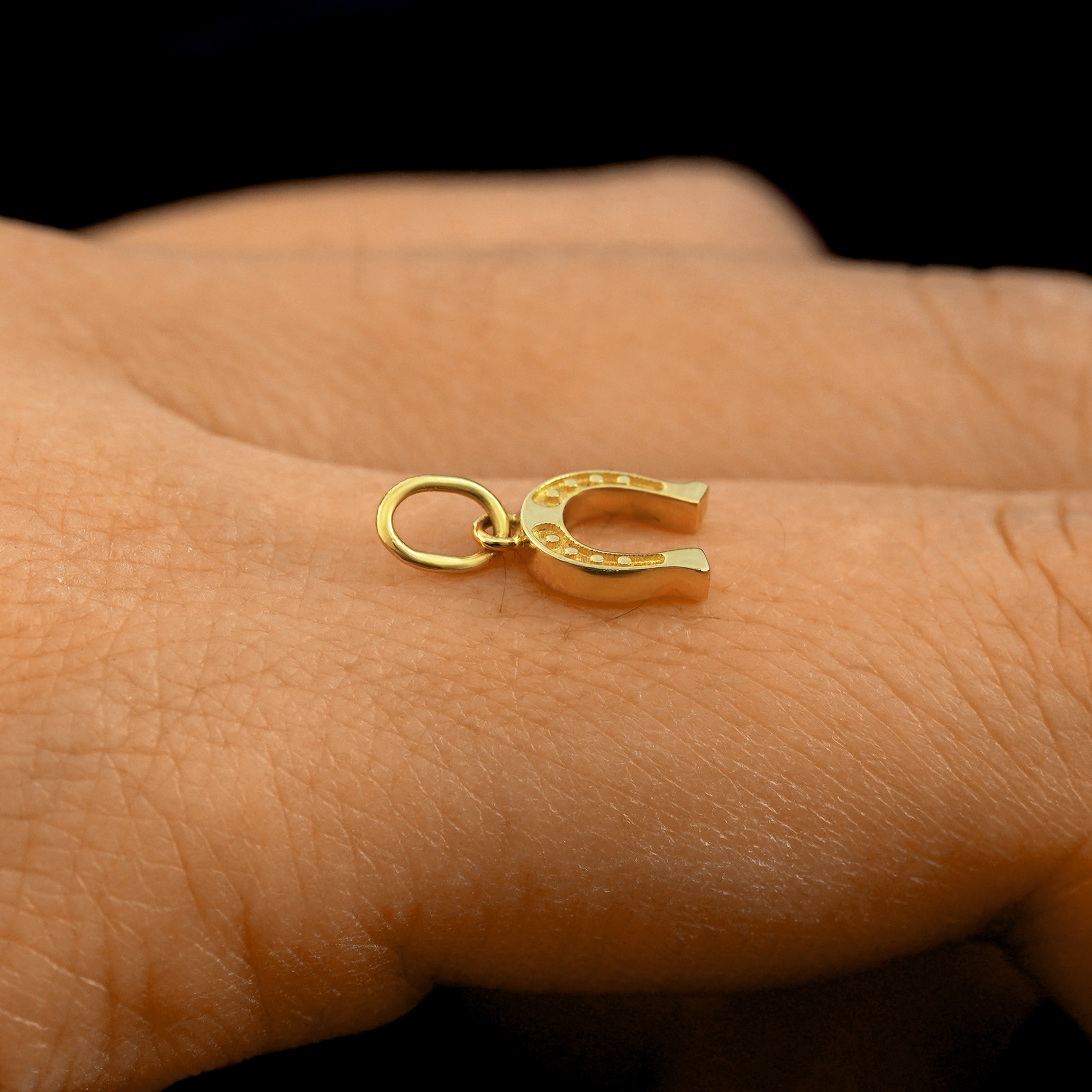A symbol of luck and protection, this solid gold horseshoe charm is a stunning addition to any lucky charm collection. With its sleek rounded horse shoe shape and striking rivet detailing this charm is perfect for anyone who loves horses or just needs a little extra luck.