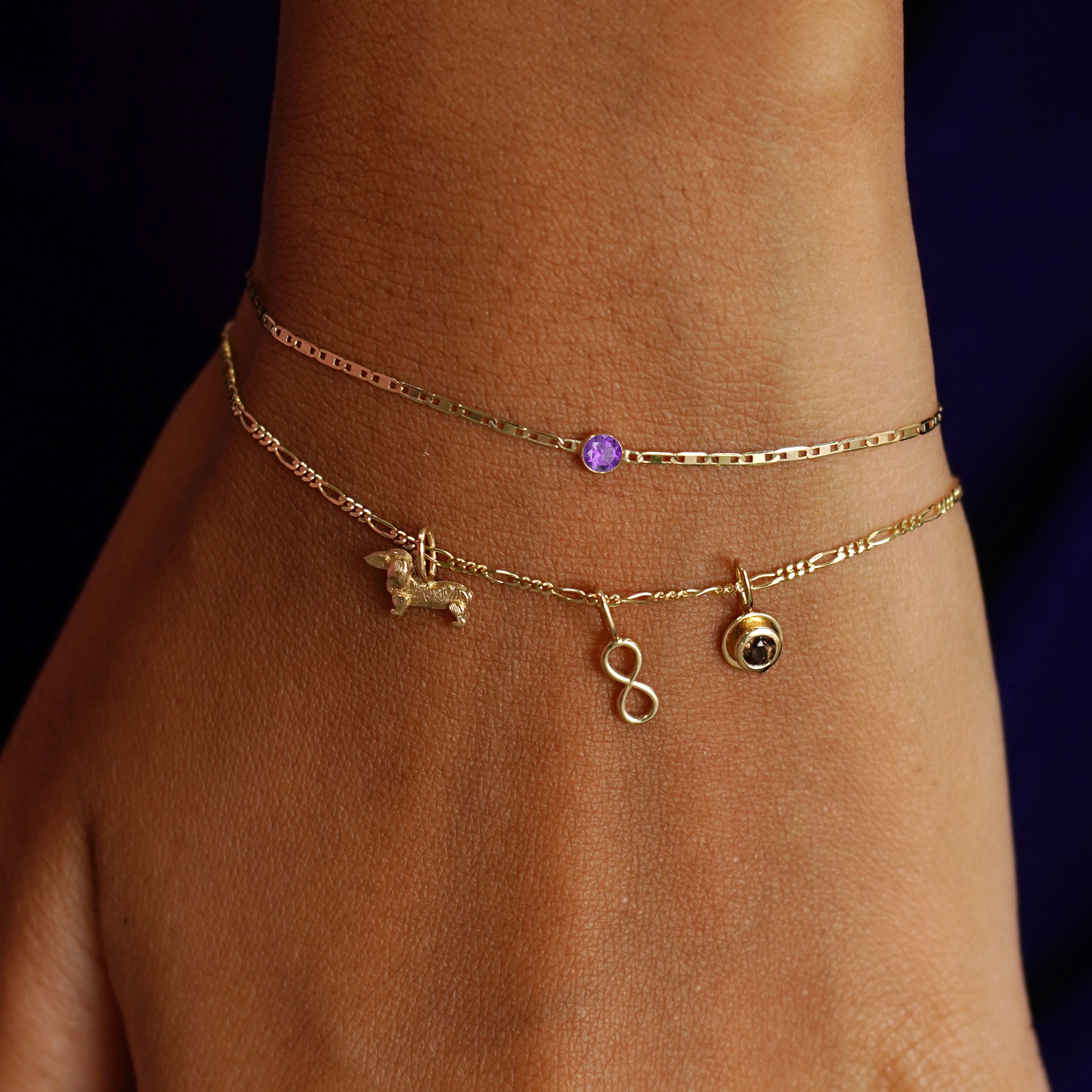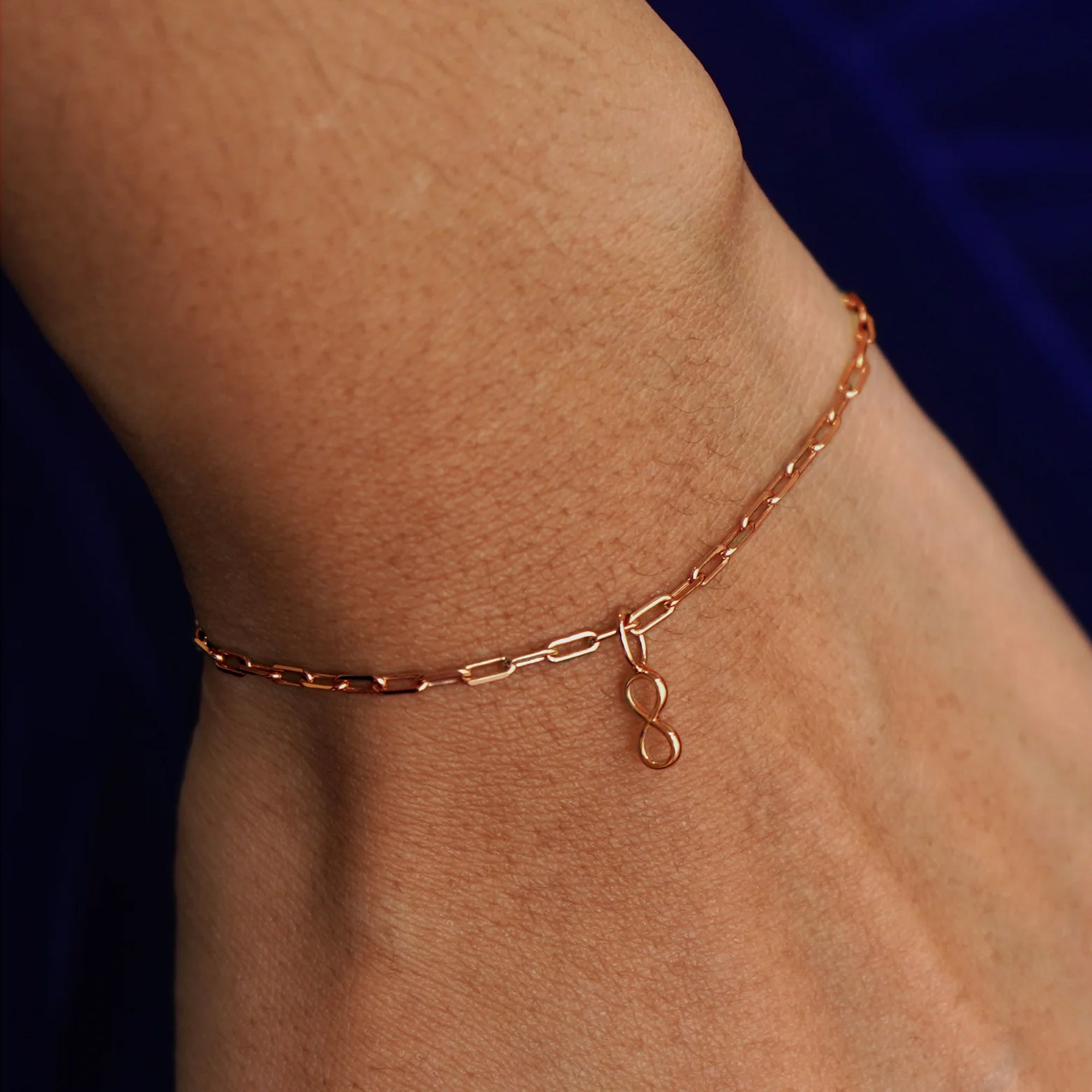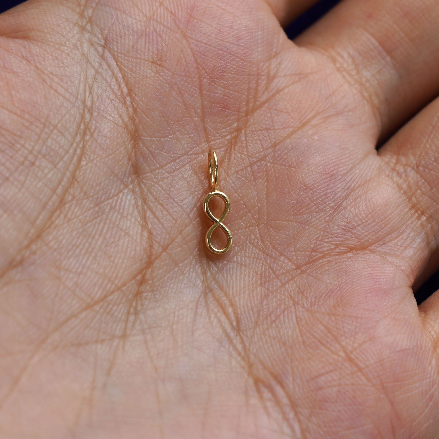 This charming little infinity charm is a unique way for you to show off your pride however you want. Wear this 14k solid gold charm on your favorite chains, hoops, or bracelets for a look that is uniquely you.