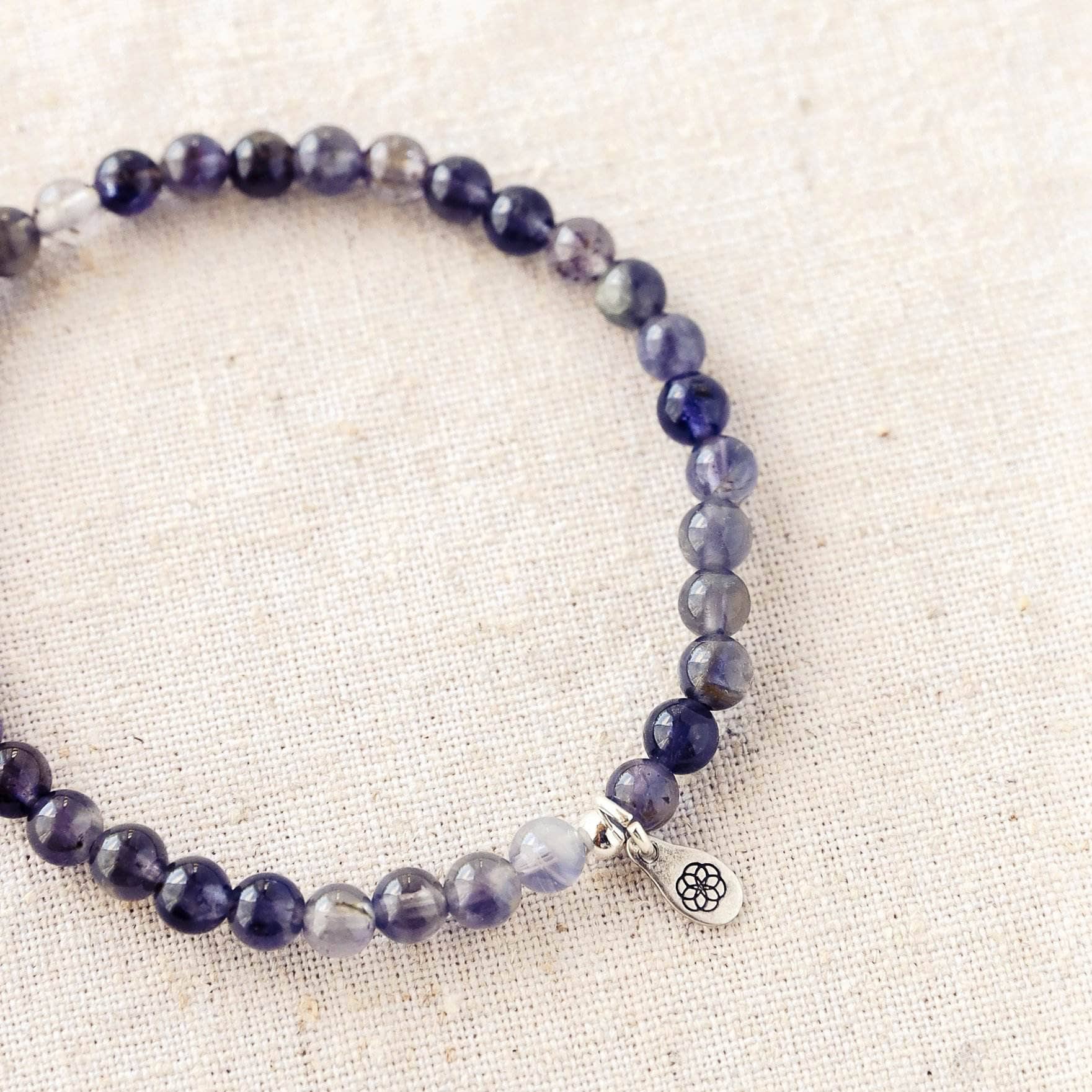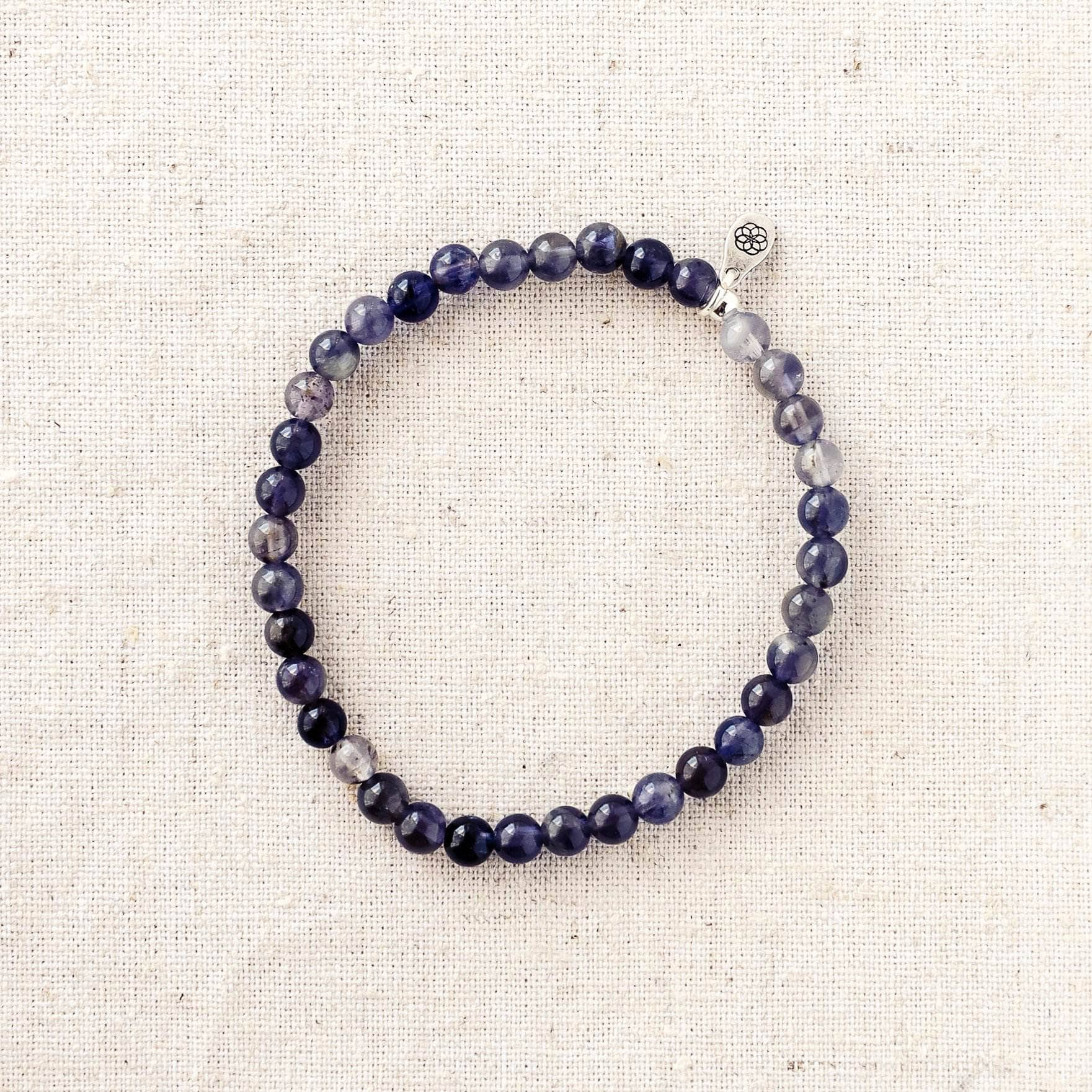 Untangle and set yourself free with the vision quest stone of Iolite. Named for its violet skied hues and taking its name from the lyrical tongue of Ancient Greek, this glorious Iolite Energy Bracelet is known for its ability to break the wheel, cut through destructive cycles, and to never flinch from making the heart face raw honesty.