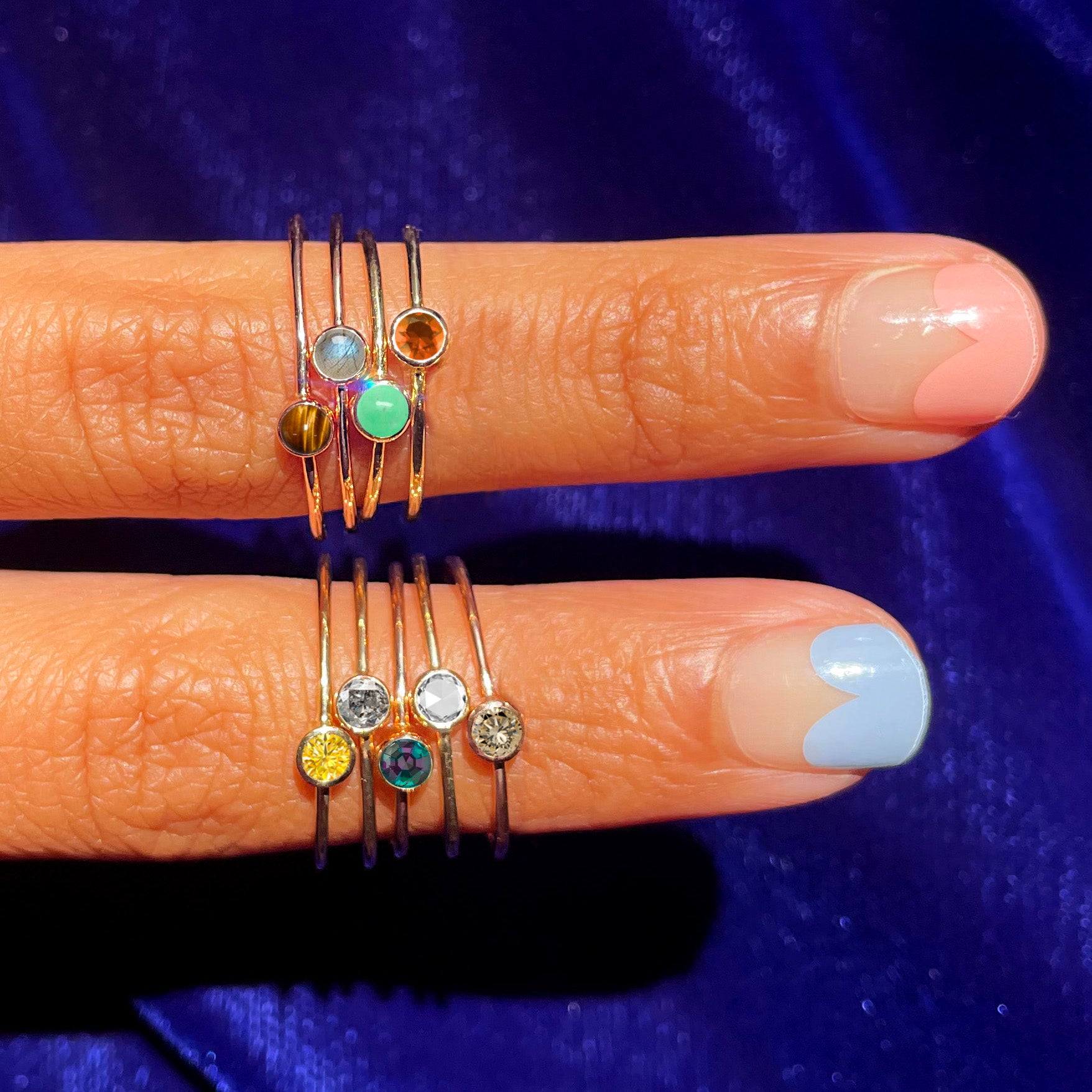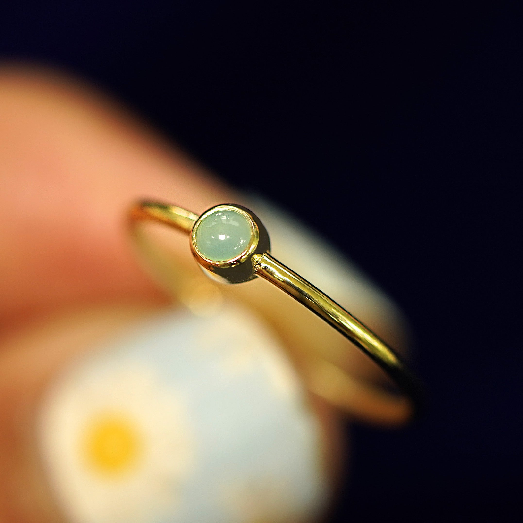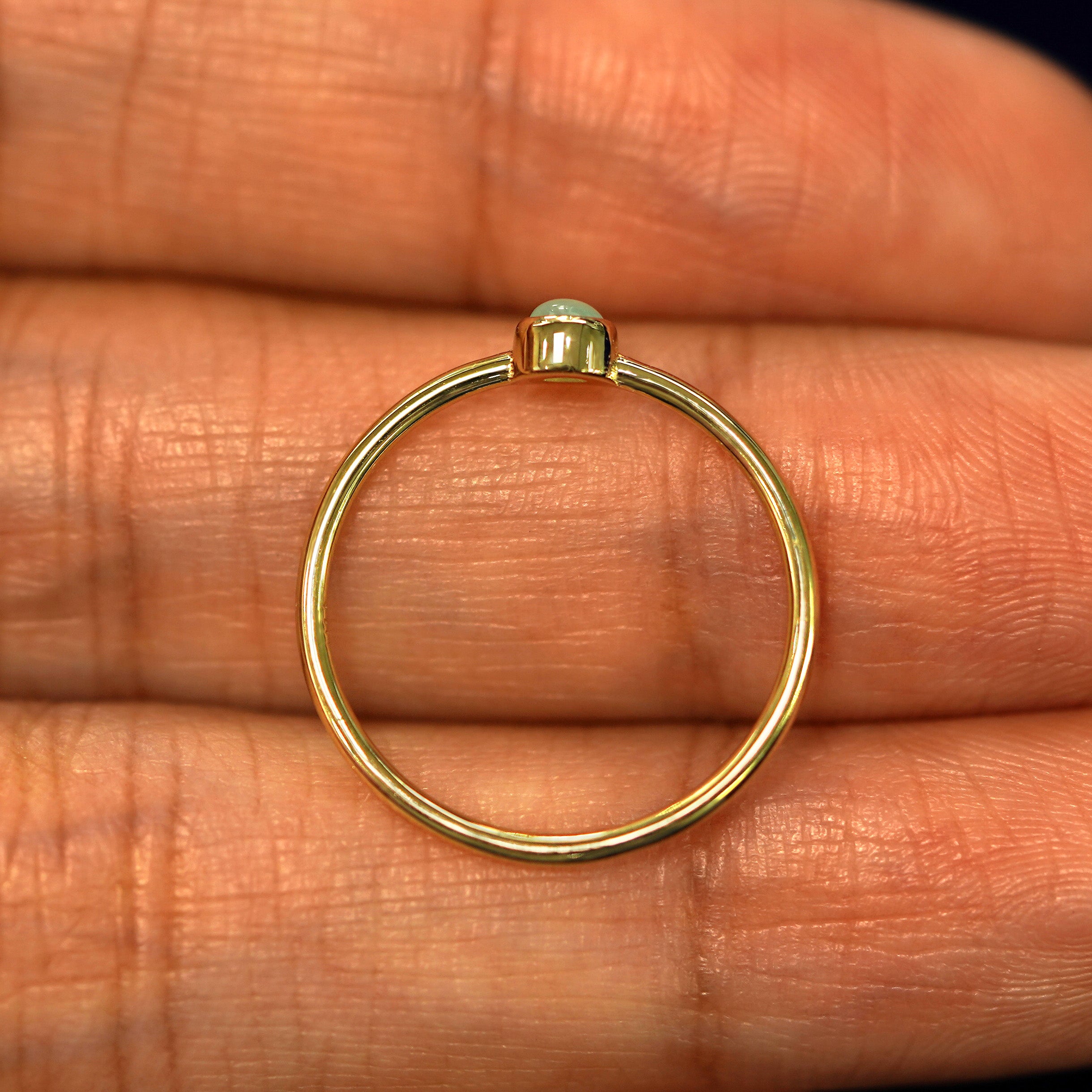 This little jade ring is one gemstone piece you’ll never want to be without. The pale green color is perfectly complemented by the solid 14k gold band. Whether declaring your love with a unique engagement ring that shares your values, or gifting a little shine to yourself just for fun, this dainty ring is a 14k solid gold investment.