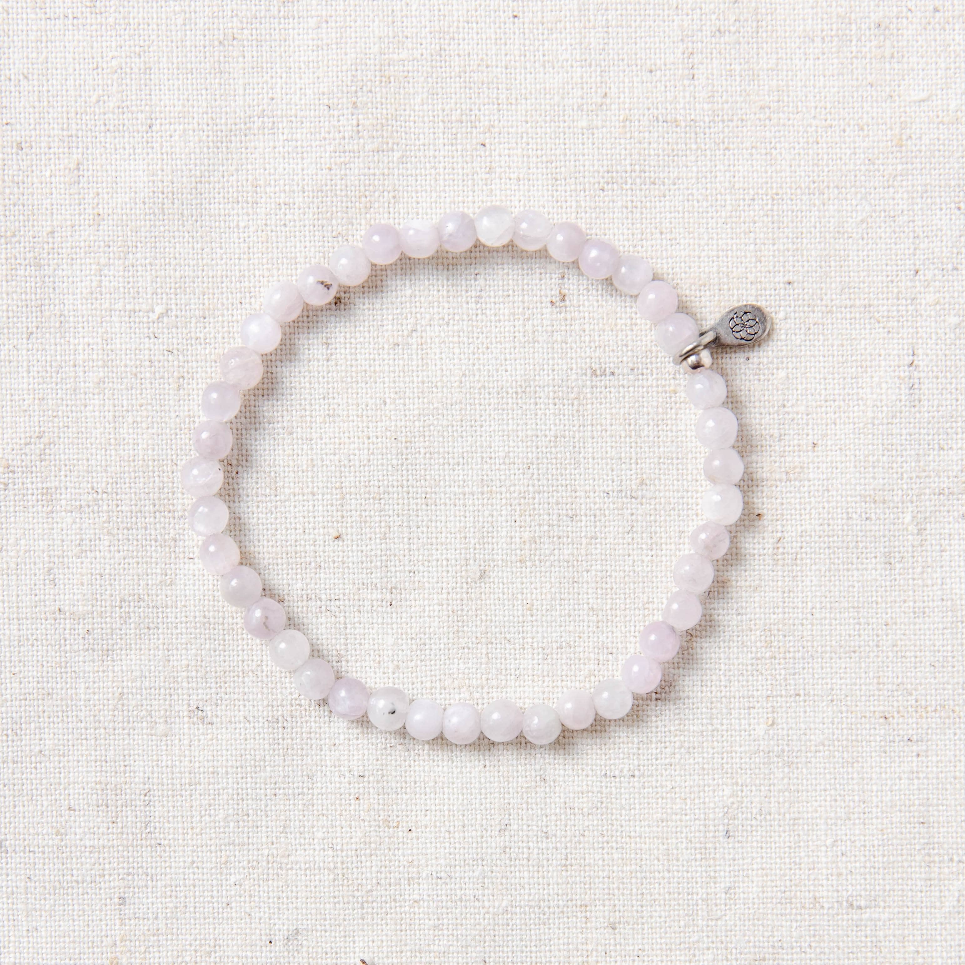 The Kunzite Bracelet is a murmur of loving breath, the softness of morning, and the freedom to unpack your heart from that box. This gem is soaked in healing feminine energy and it's no surprise to hear that it’s a heart chakra healer. Kunzite peels back the petals of a tightly budded heart, inviting courage in that unfolding and giving you all the nurturing water and light you need to open up.