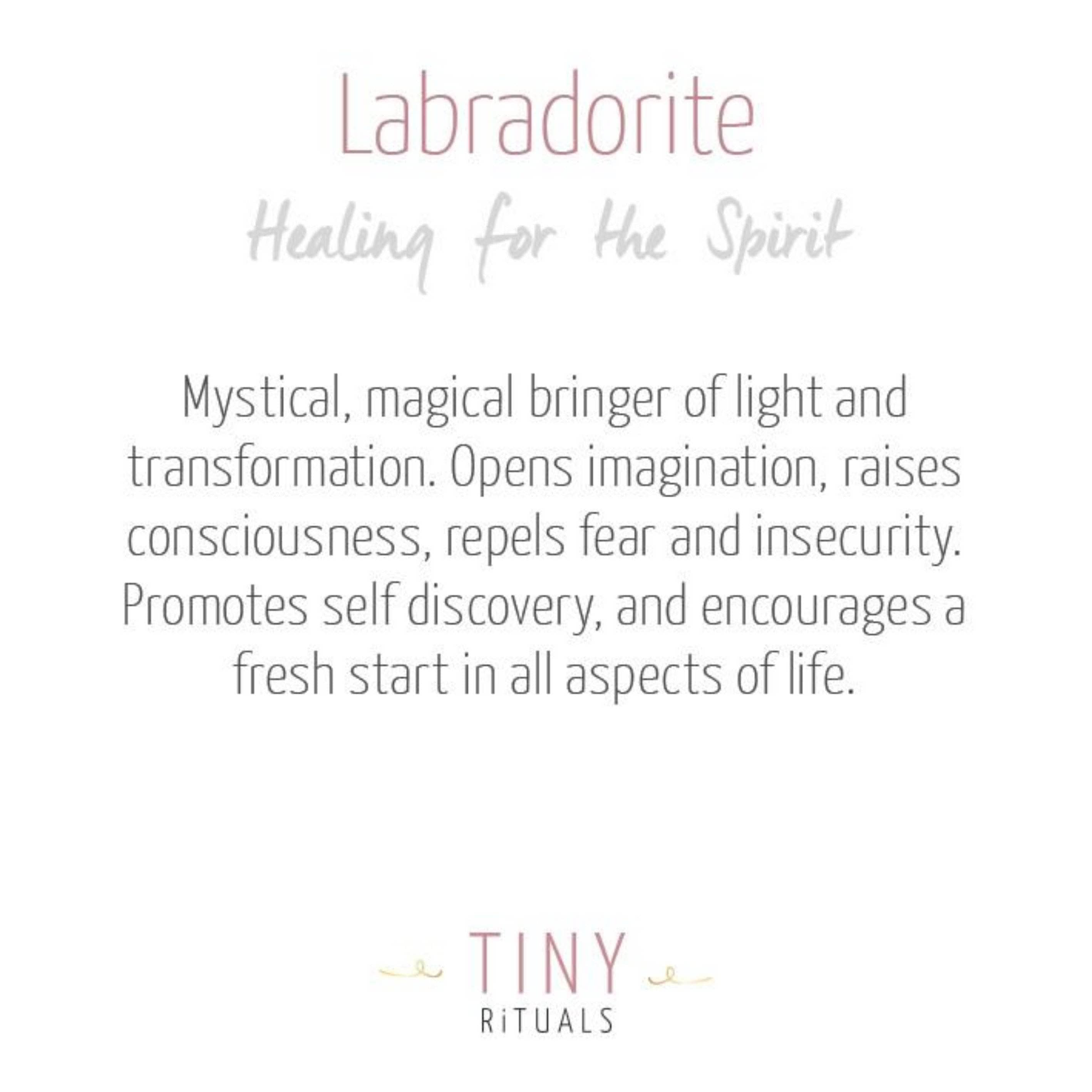 Labradorite has long been the cosmic stone of sages, luminaries and mystics and for good reason. The glimmering greens, blues, and pearly whites seem to whisper of multiverses, endless possibility, and beckon the third eye chakra to crack right open. Yet, this stone isn’t just about leaping into the lands of the unknown but also invites you to place both feet squarely on the floor and stay strong and confident in a way that doesn’t compromise your creative spark.