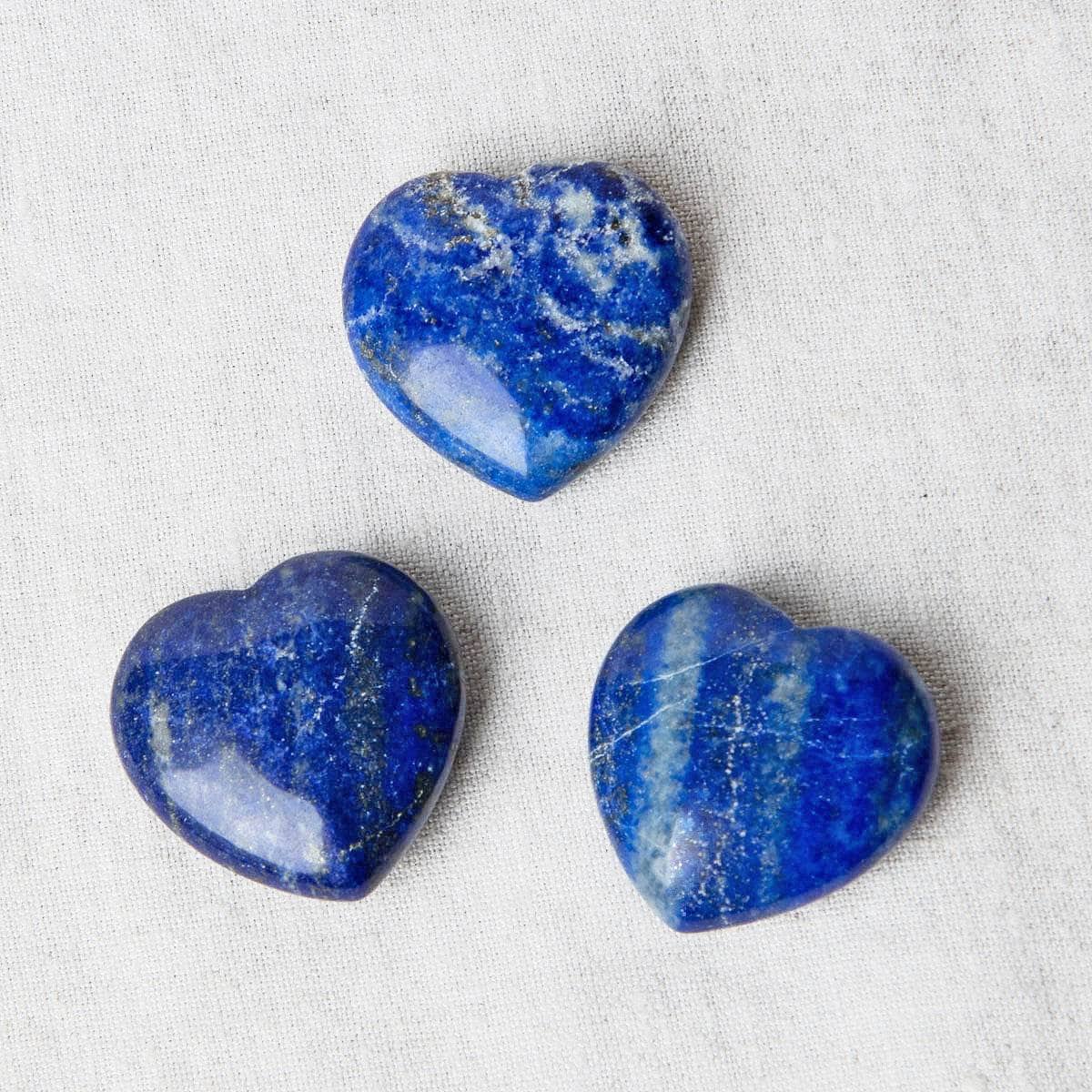 The Lapis Lazuli crystal heart is rich in harmony, healing vibes, and helps with balancing the throat chakra and the third eye chakra. The throat chakra and the third eye are intrinsically linked - each pertaining to truth, intuition, and the power we hold deep within. With its potent energy, this heart-shaped gem can also keep you safe from psychic attacks.