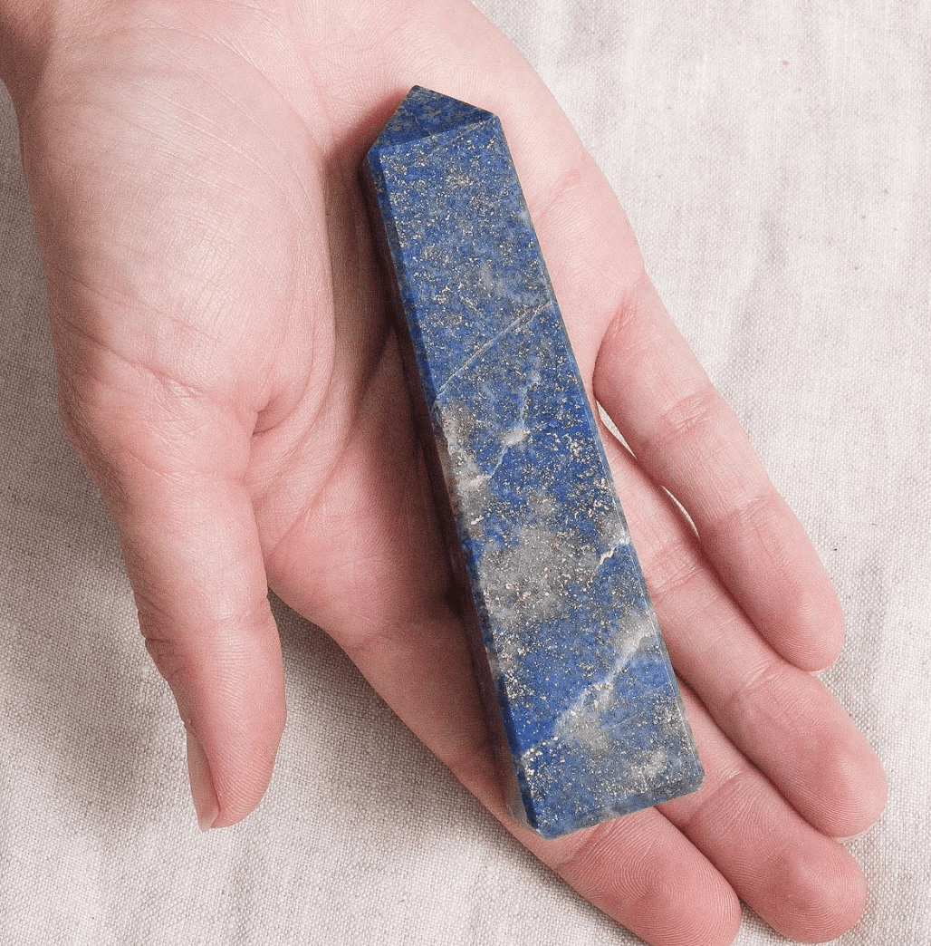 Lapis Lazuli is a third eye chakra stone. It helps you to turn that gaze inwards and to remember that sight goes beyond what is straight in front of us. For those craving purpose, bigger picture meaning, but also the ability to nurture your own sense of truth and belonging, this tower can serve as a compass or holder of that dream. It also touches base with the throat chakra too, so it can strengthen communication and let your truth flow free. The Lapis Lazuli crystal leaps between the grounded and the glorious and part of that power is the ability to work with dreams, intuition, and psychic powers.