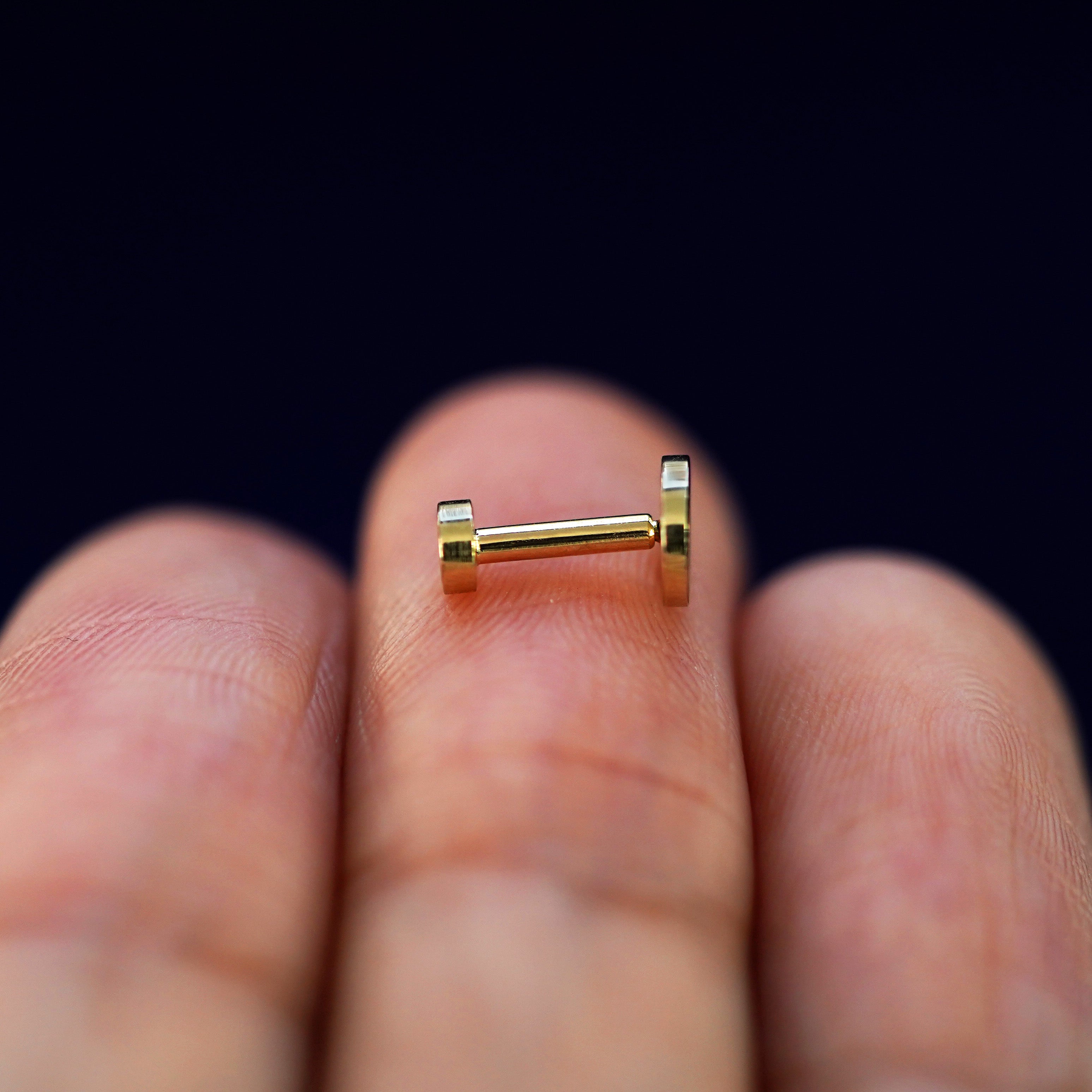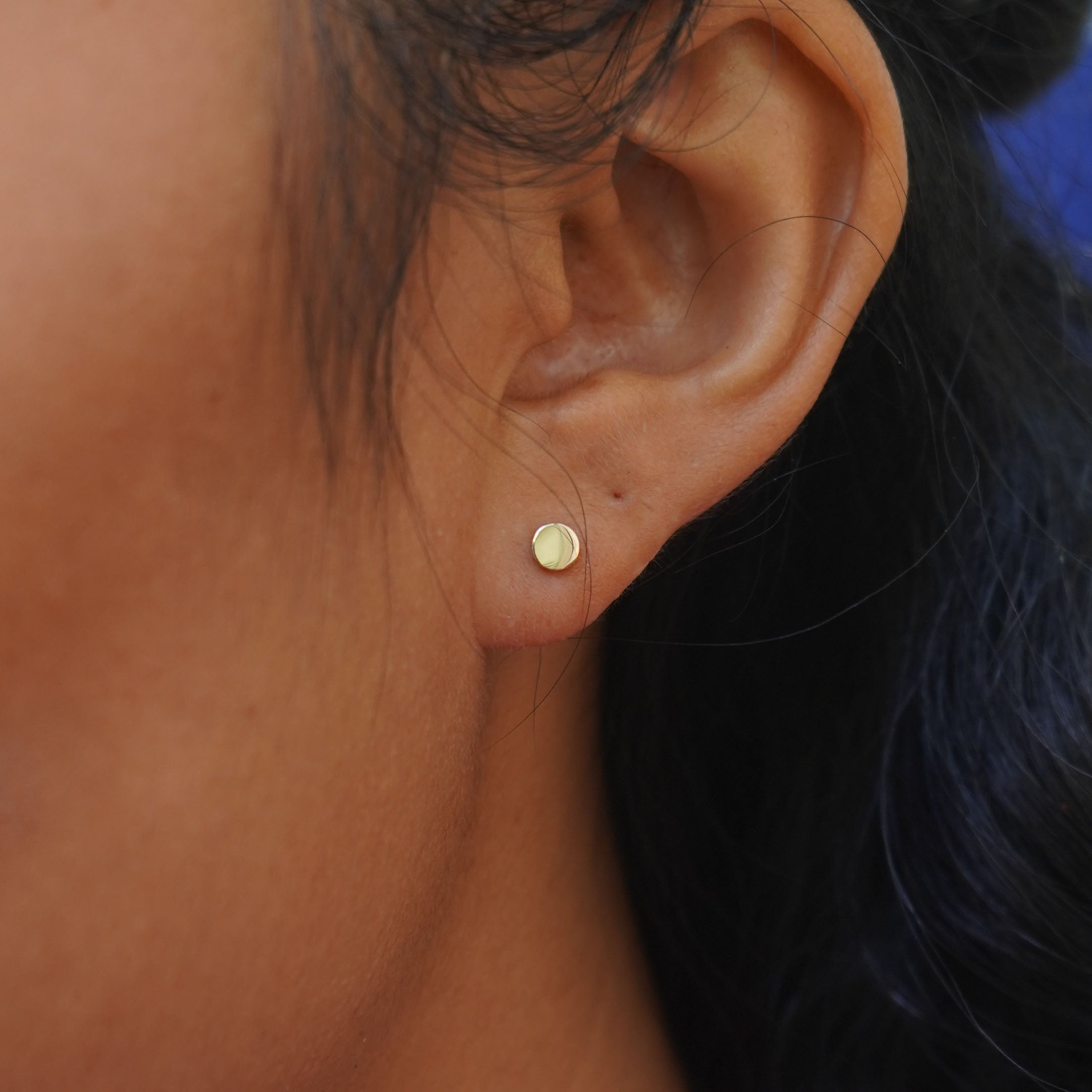 The largest in the circle stud fam, this delicate threadless flat back earring is comfortable enough to wear everywhere. This sustainable gold geometric jewelry piece is perfect for making a statement. Our flatbacks are crafted only in 14k yellow gold to avoid sensitivity.