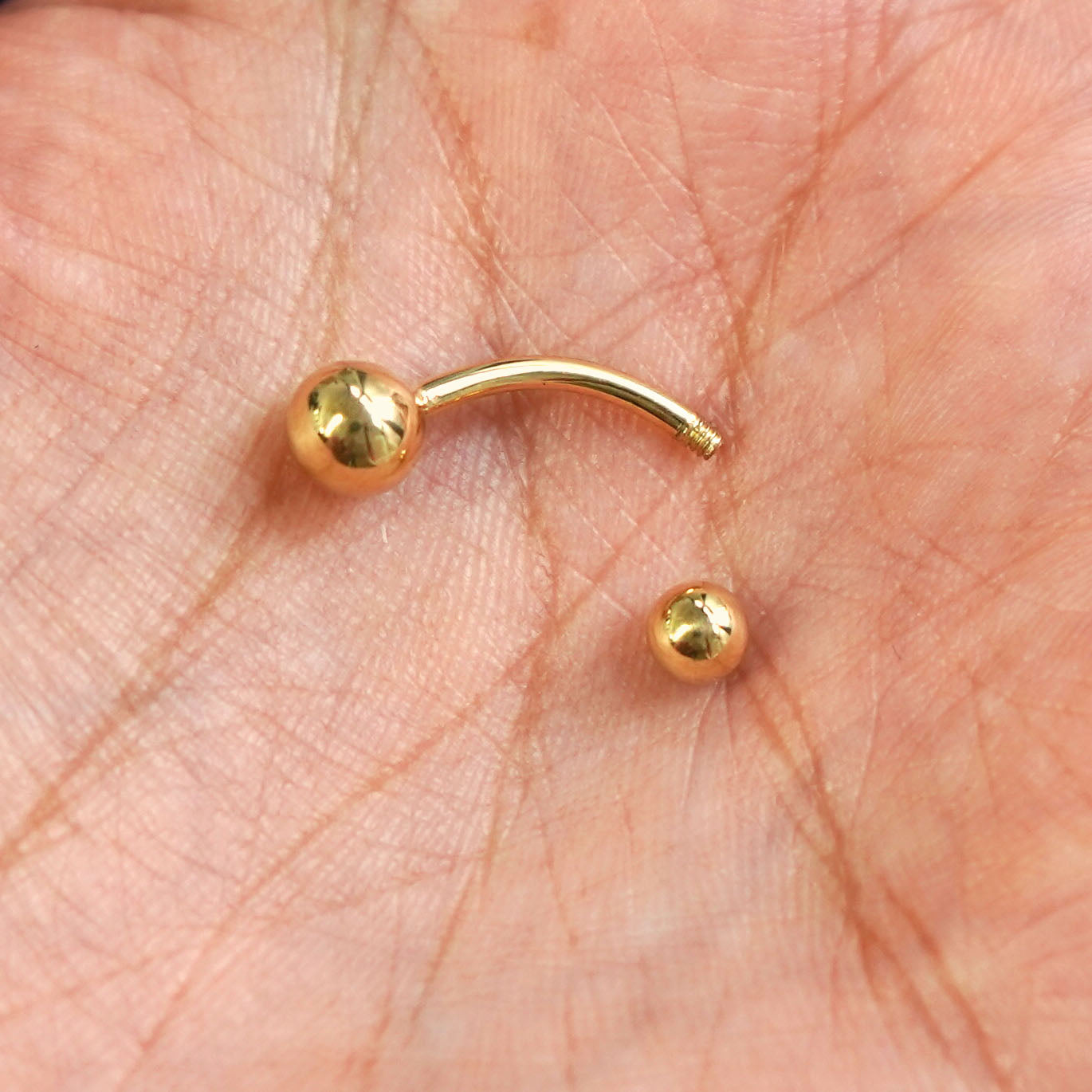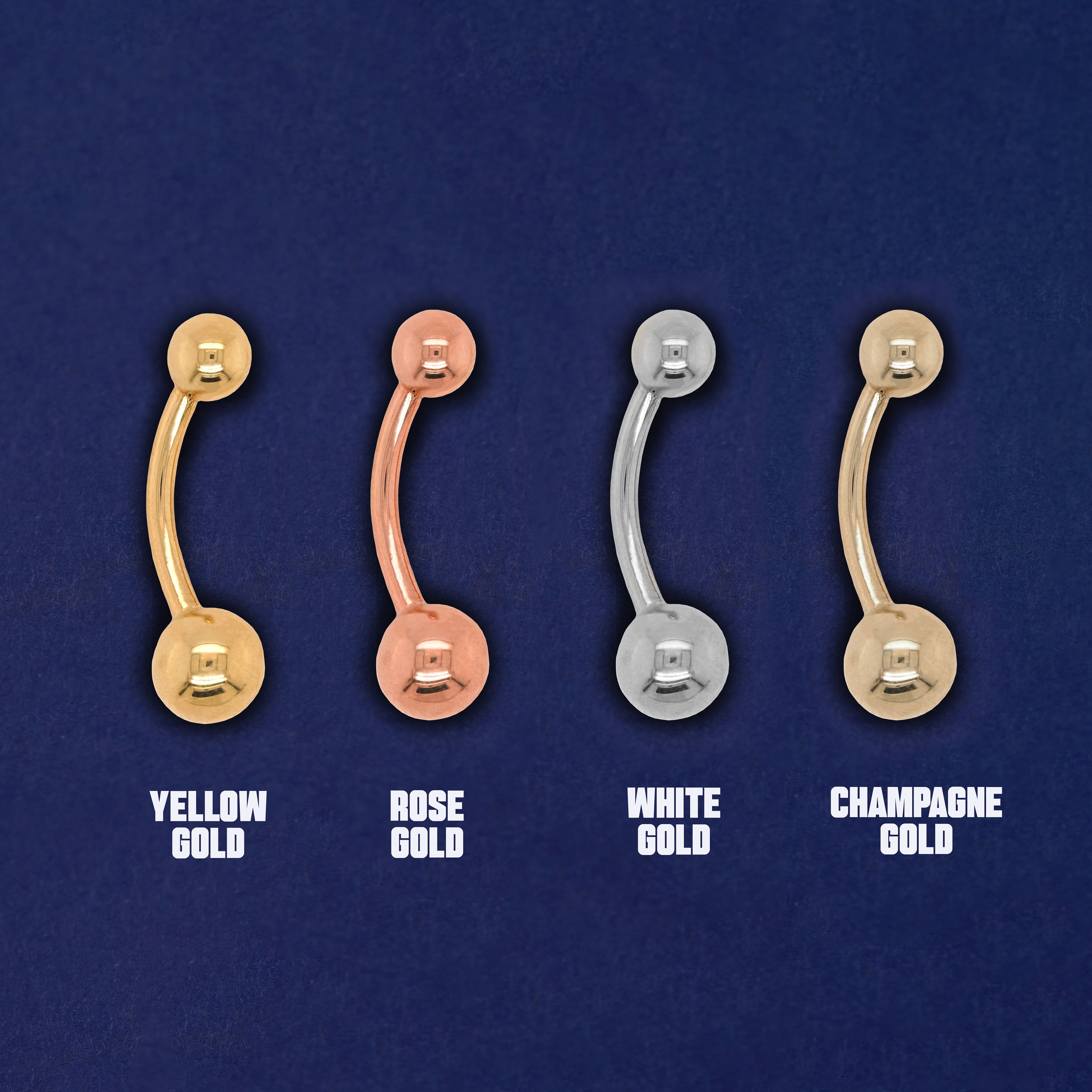 Solid gold body jewelry that's chic and classic, this curved barbell has it all. Perfect as a belly button/navel ring or for a nipple piercing!
