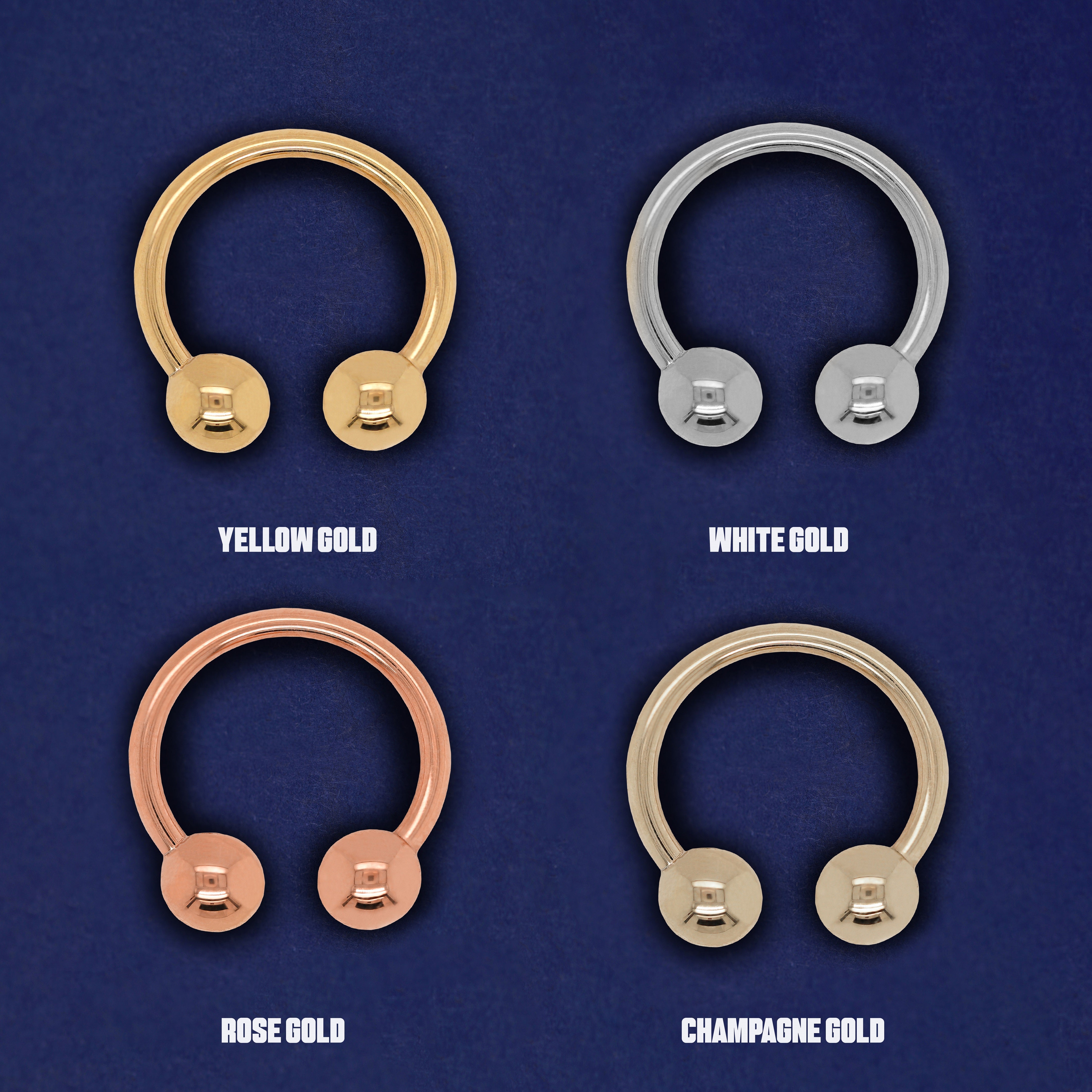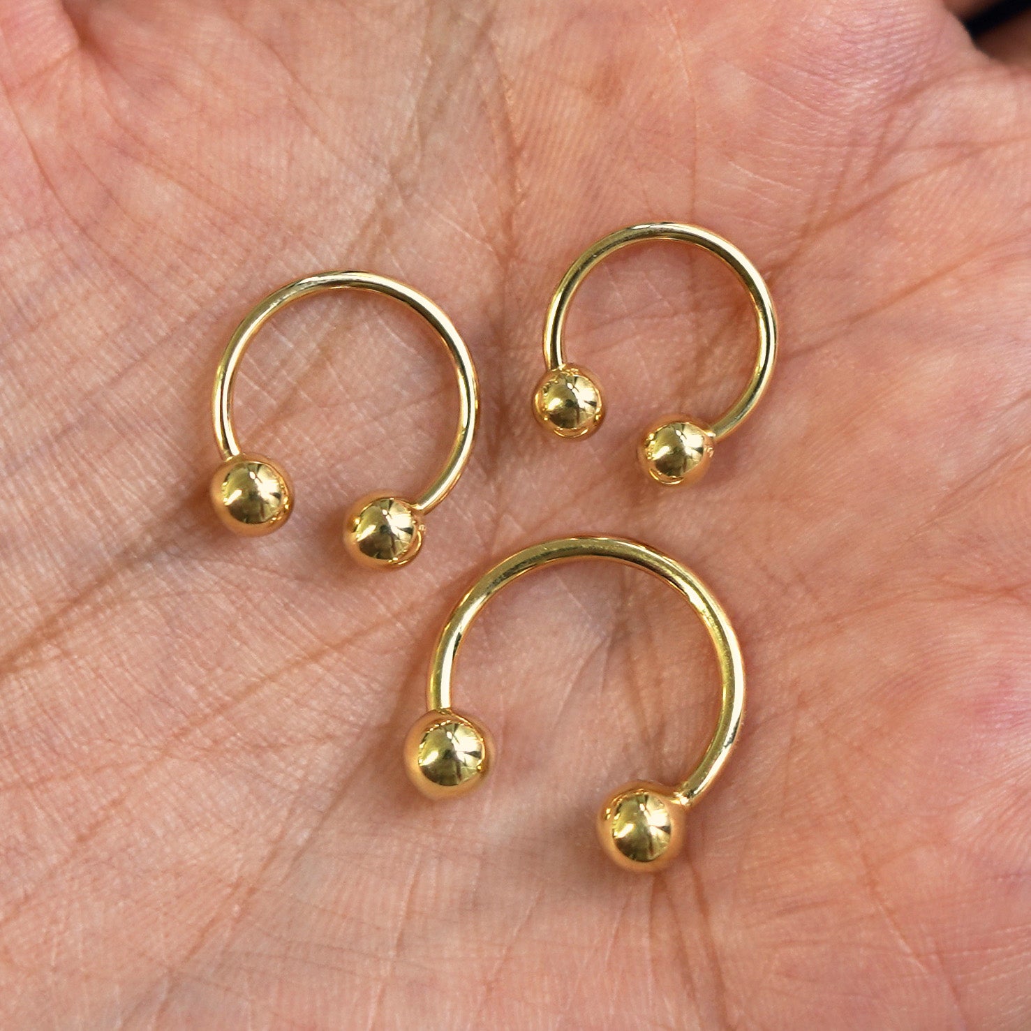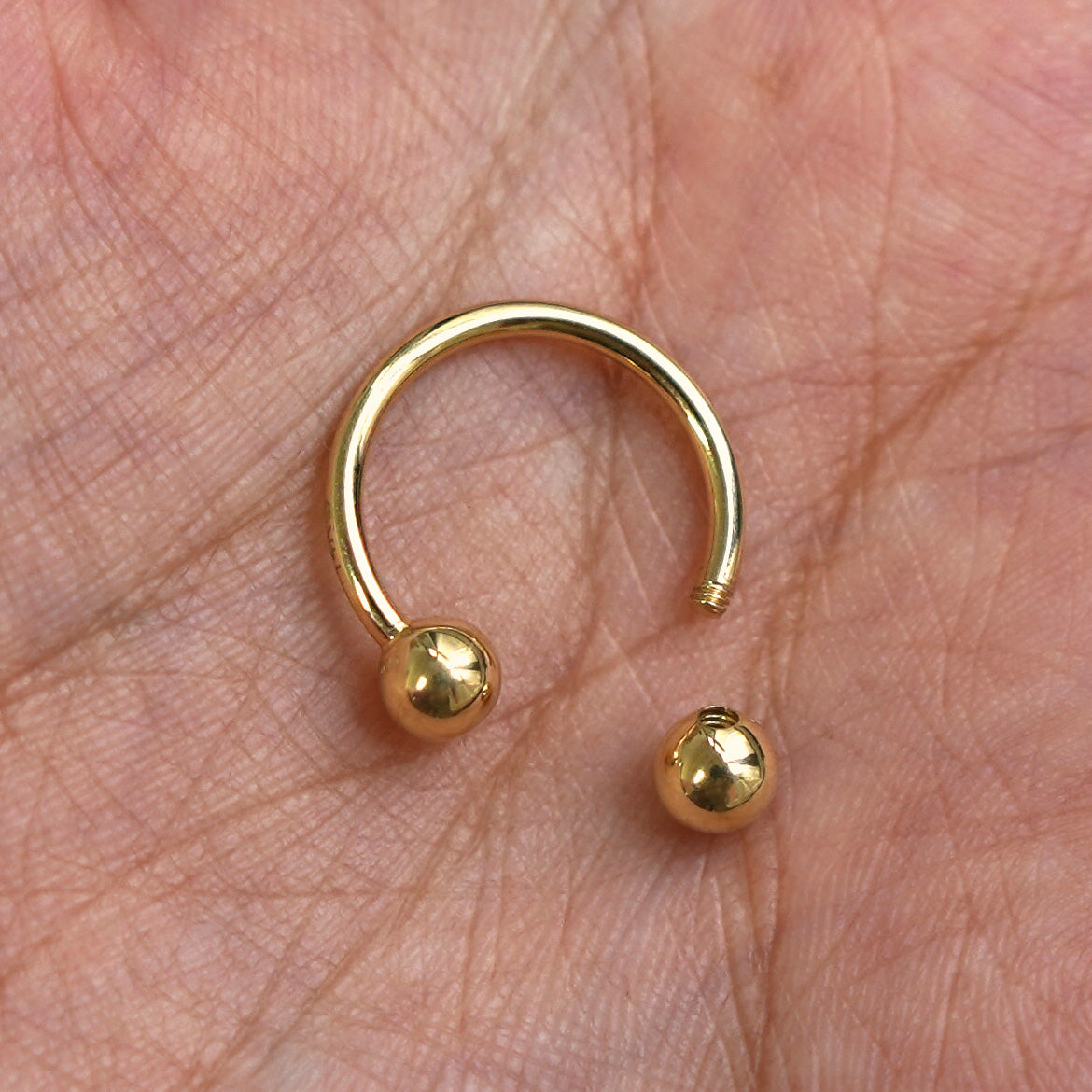 Versatile body jewelry for almost all your piercings, this cute large horseshoe ring is everything. Wear this 14k solid gold horseshoe piercing on your ear, daith, helix, lip, septum, nipple, cartilage or anywhere else! With its externally threaded screw off bead, this gold piercing is easy to put on and you’ll never want to take it off.