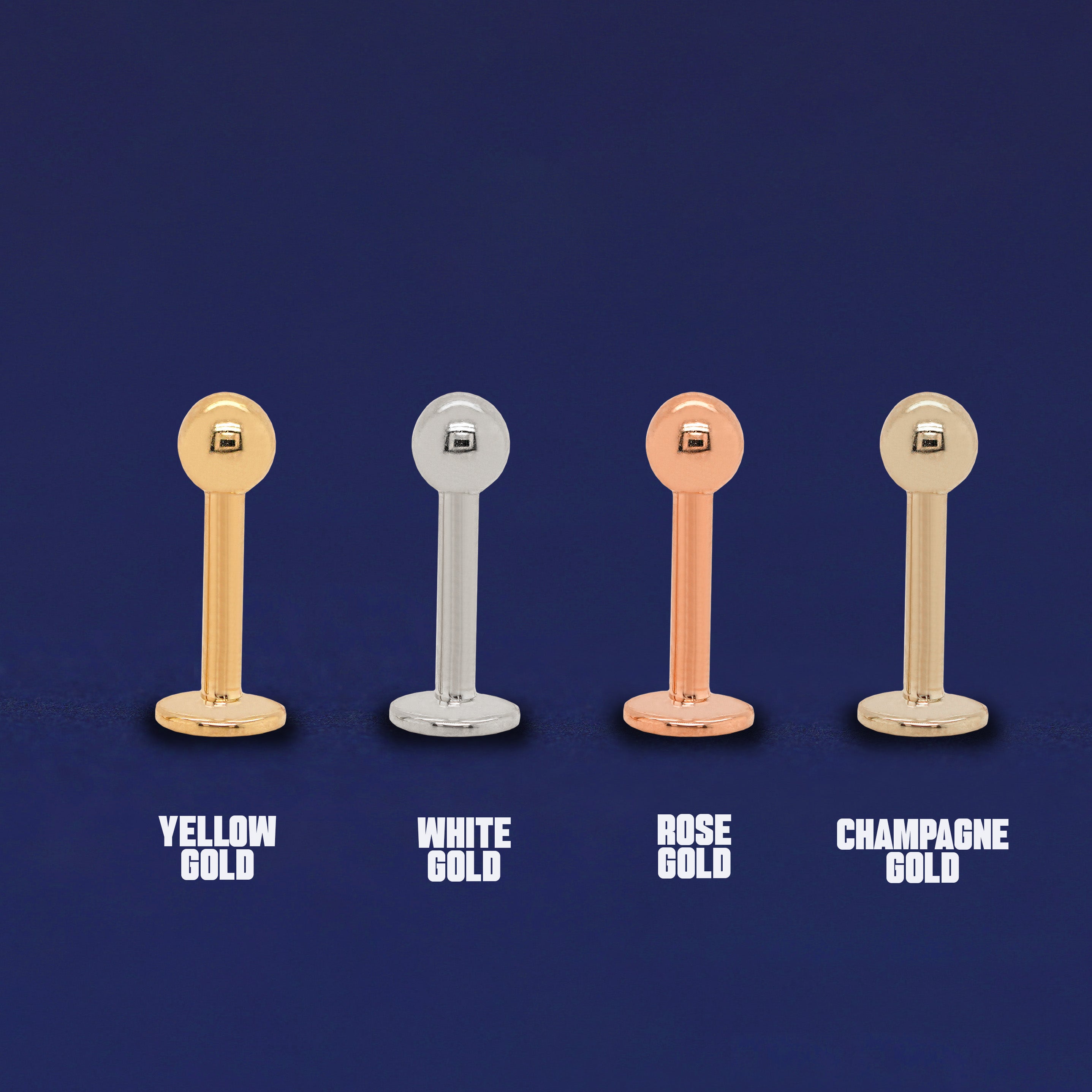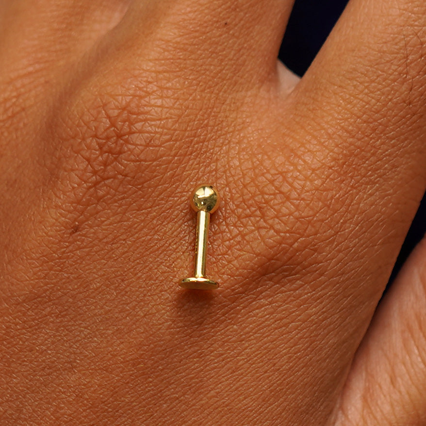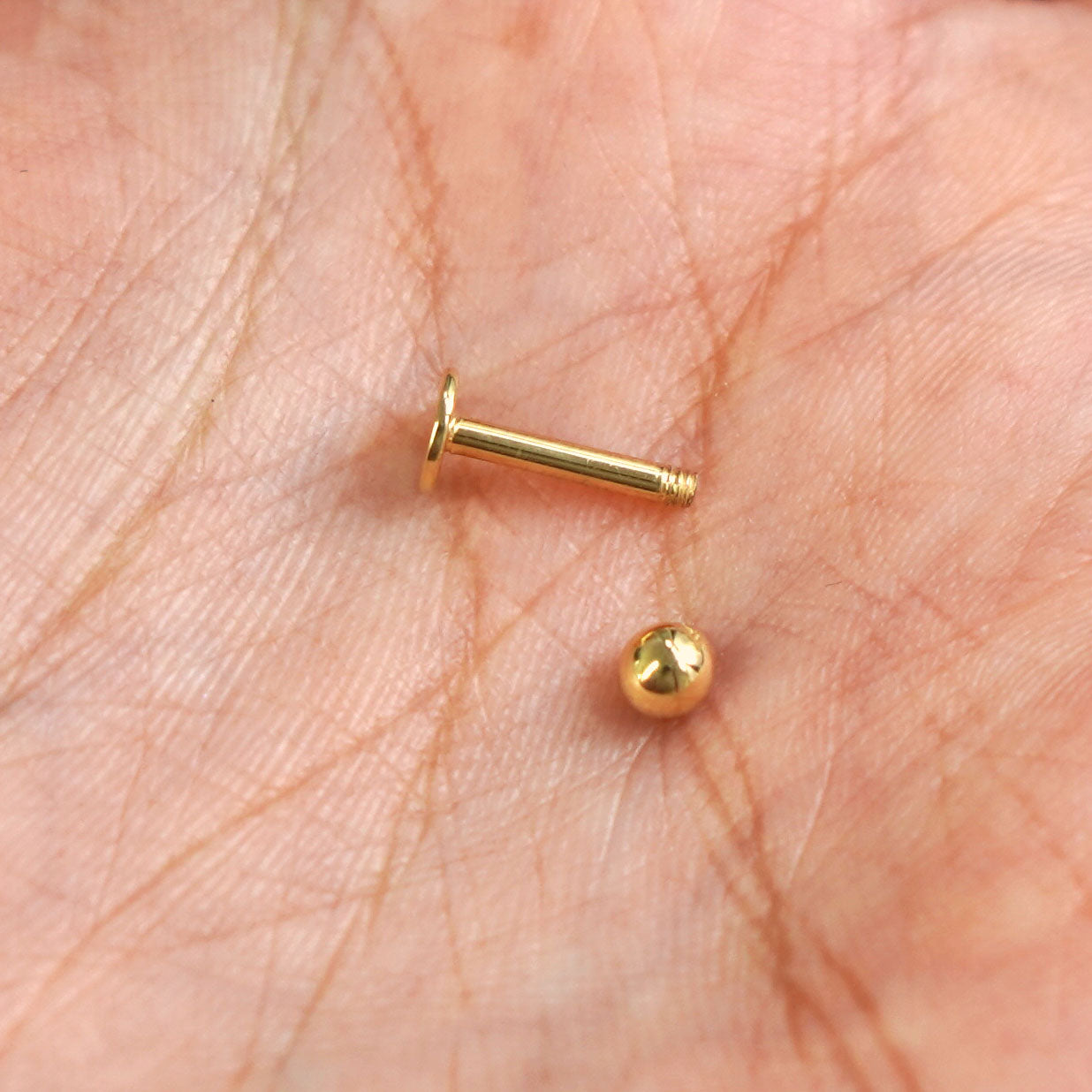 This solid gold flatback labret piercing is one comfy body jewelry piece you’ll never want to take off! This cute piercing is perfect for any type of labret or lip piercing, your cartilage, tragus, helix, earlobe, nose, conch, tongue, or wherever you want a little bit of extra shine.