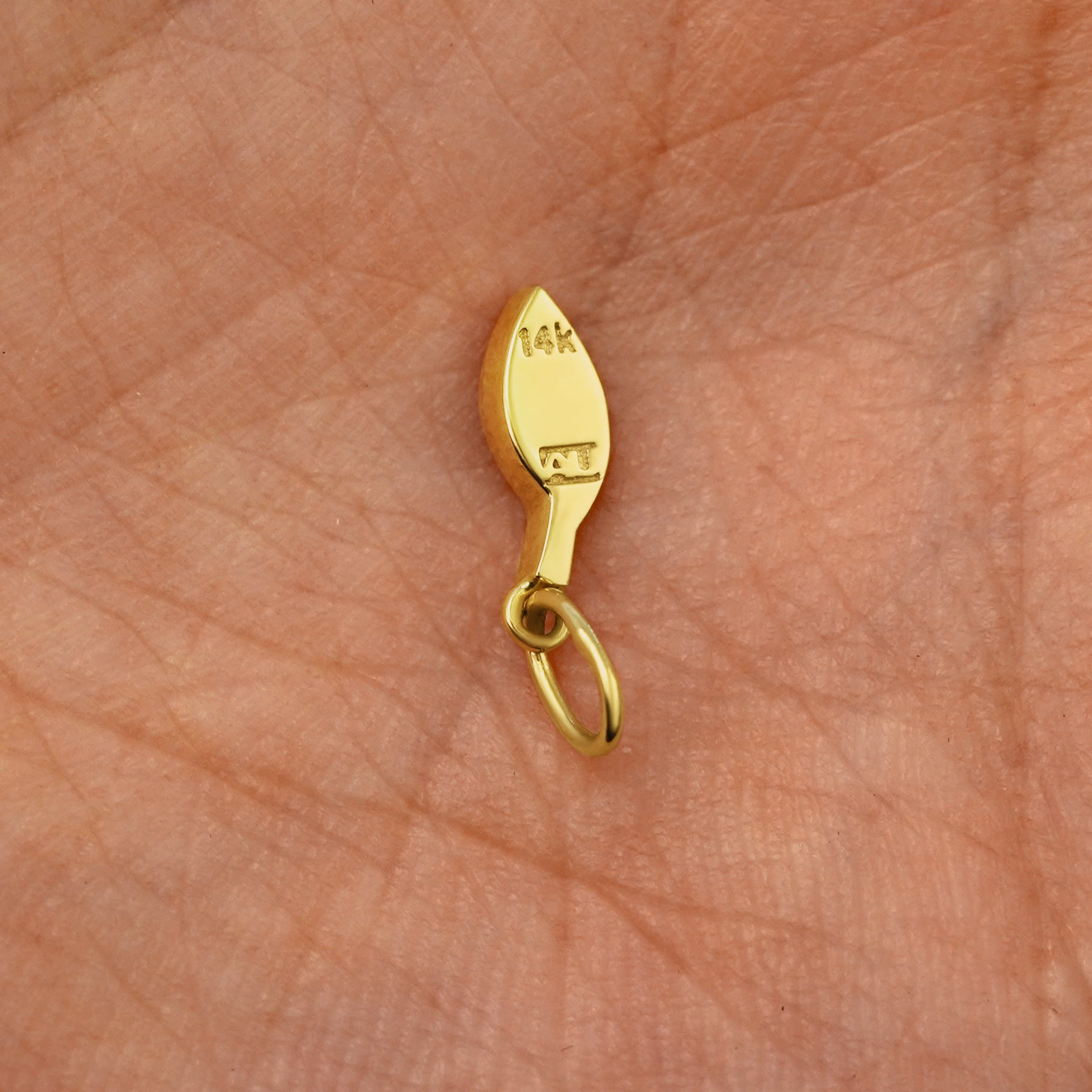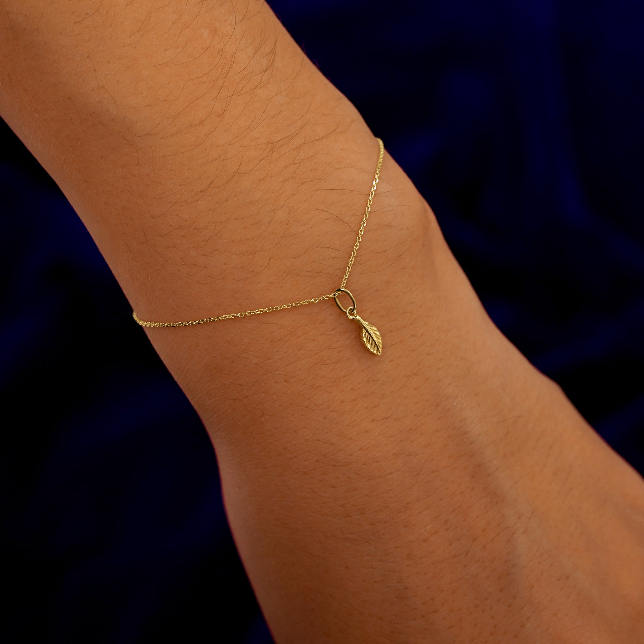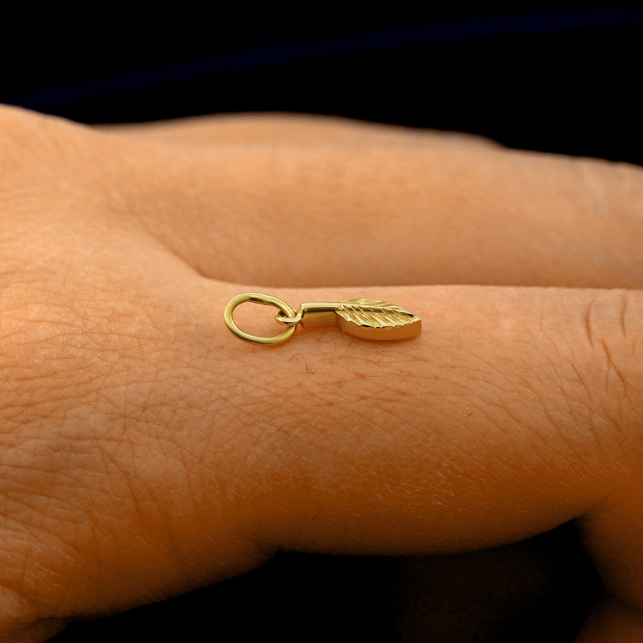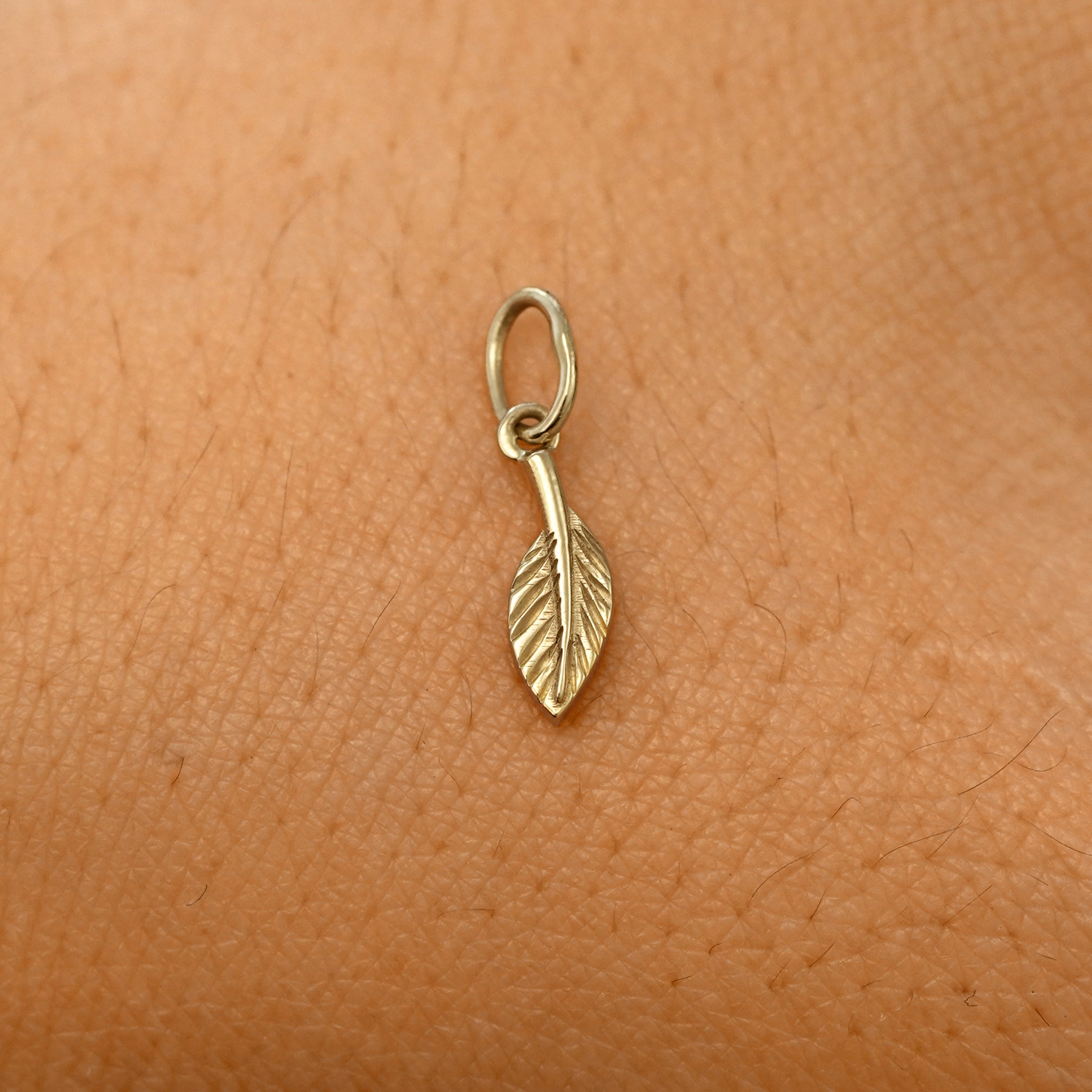 A single little leaf charm to add a touch of nature to your collection. Handcrafted from solid 14k gold, this piece is the perfect companion to our Thin Leaves or Chevron Leaves Bands.