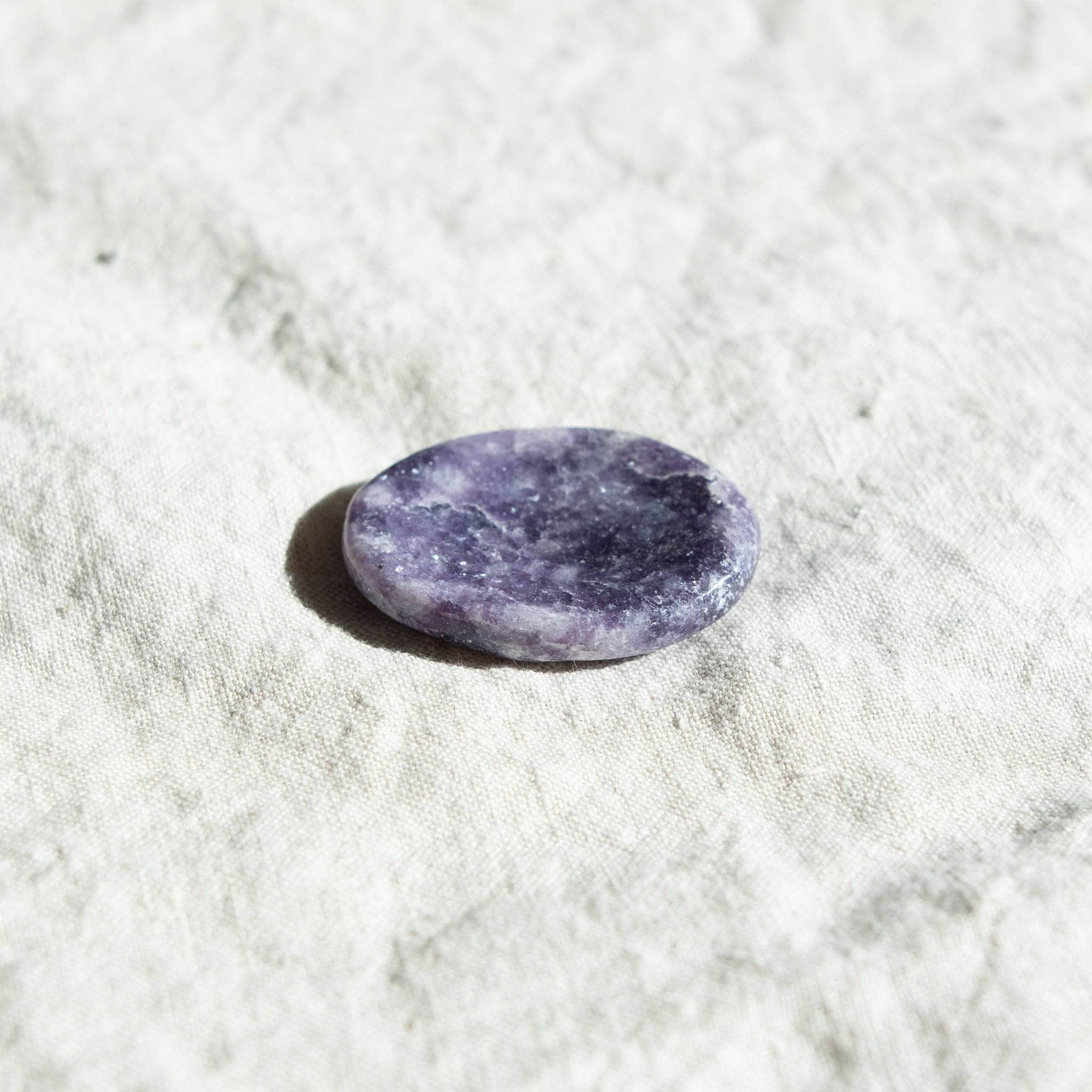 Dressed in soft lilac shades and with a promise to guide you through times of transition, the Lepidolite Worry Stone is used for spiritual healing, riding the waves of anxiety, and keeping your head and heart connected and working in tandem with the world beneath your feet.