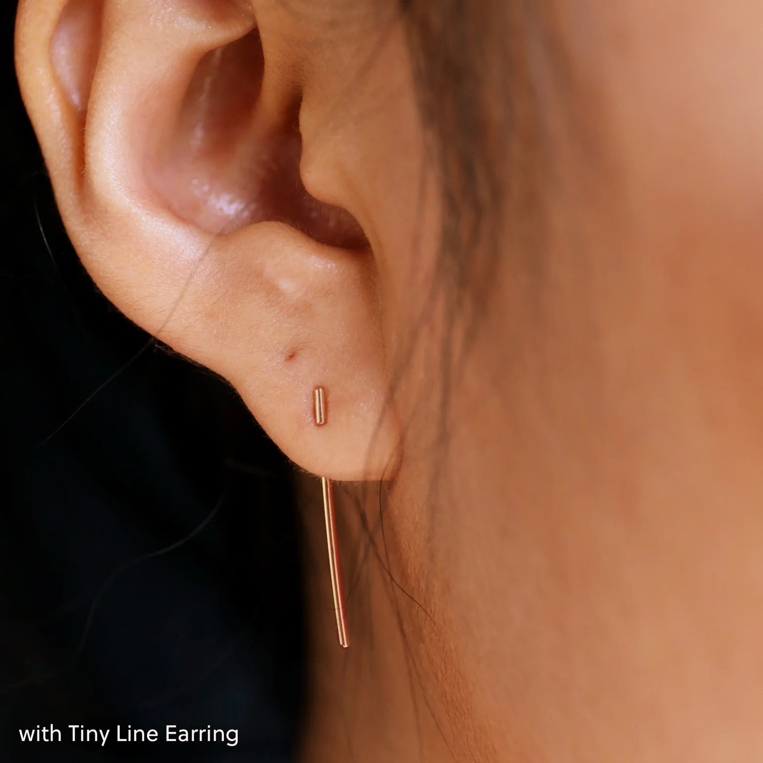 There is joy in simplicity, and this delicate line jacket earring is a perfect example. Adding it to your gold stud earring instantly adds a layer and a direction to your minimalist jewelry. Get creative with this 14k solid gold add-on.