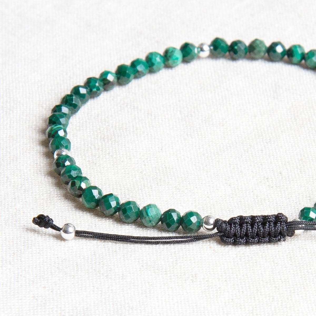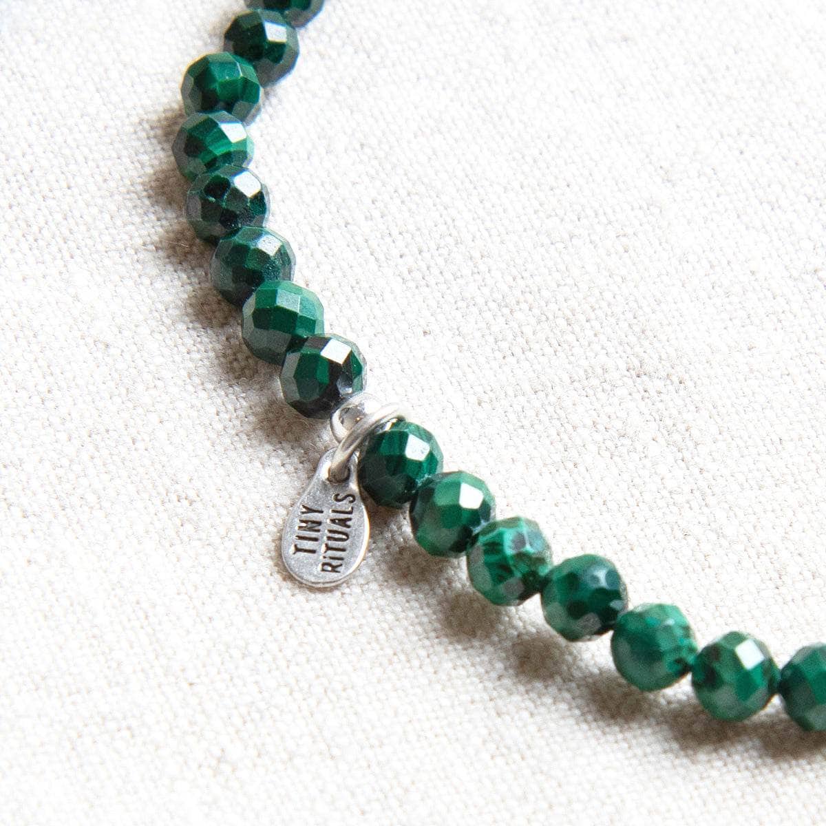 - Faceted Genuine 4mm Malachite Gemstone Beads with silvery beads & Tiny Rituals Tag