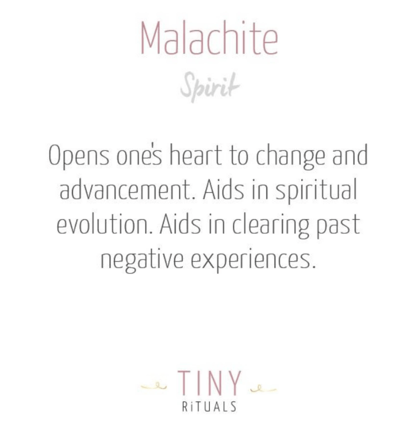 The magic of Malachite is heavenly and hypnotic and comes from the Greek word for soft. While brimming with radiant strength, this stone certainly has a gentleness about it and is a celebrated heart chakra opener. Ever ready to help you peel back the layers of the heart, Malachite carries the wisdom of the earth and a deep set of feminine energy. From the trees to the moon and everything that blooms, Malachite is known as the Stone of Transformation and for good reason. It helps to flush out toxic emotions, invites you to let go of that which is not serving you, and encourages you to step forward onto sunny new pastures.
