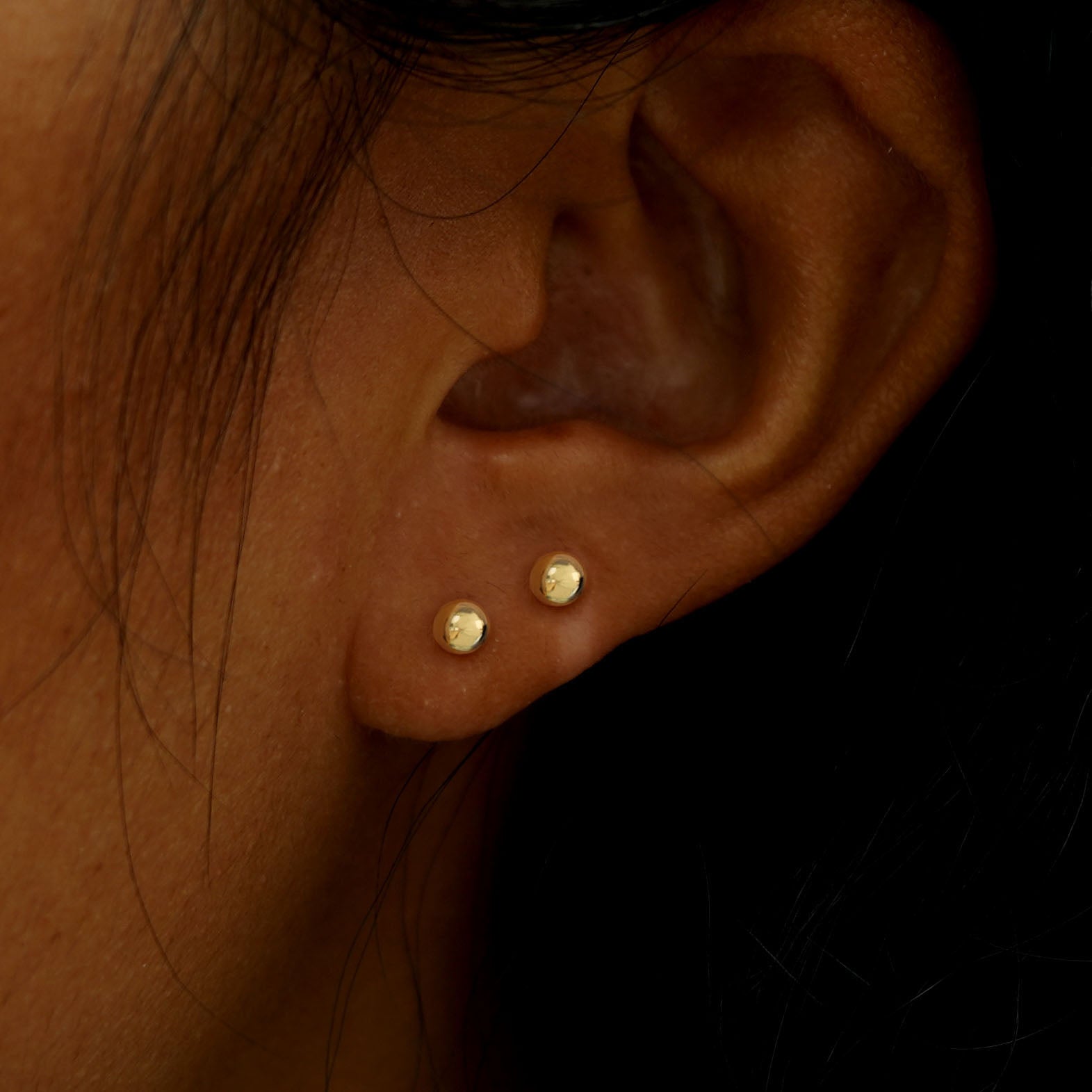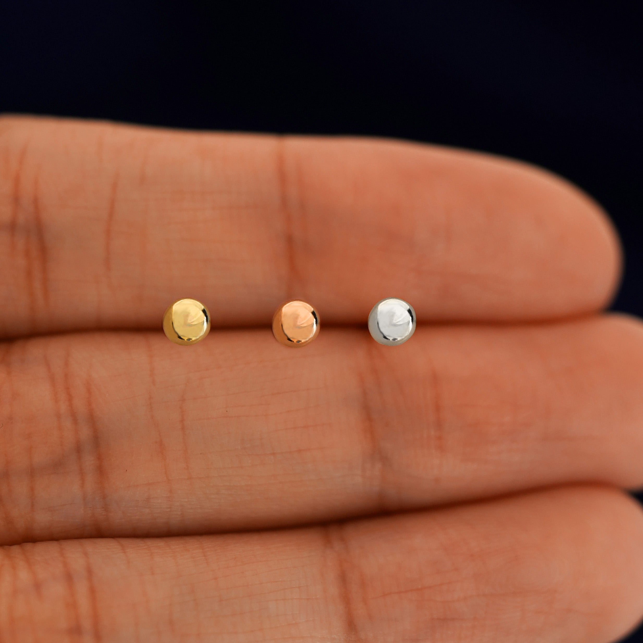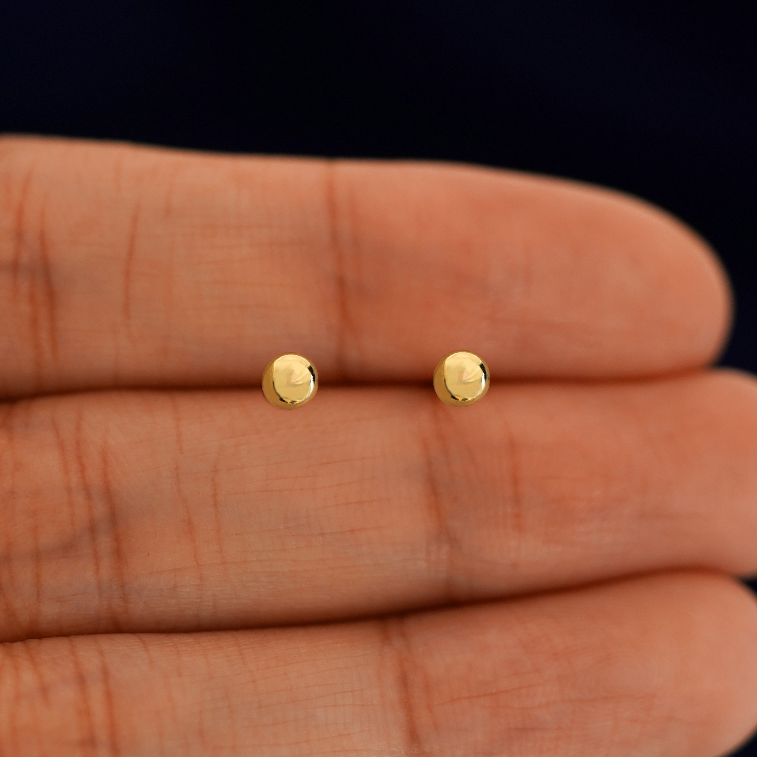 Solid, sturdy, and simple, this medium ball flatback is the perfect minimalist earring. Crafted from solid 14k gold these push in studs won’t dent, so you can wear them to sleep, shower, or workout in. Great for a cartilage, tragus, labret or other types of piercings.