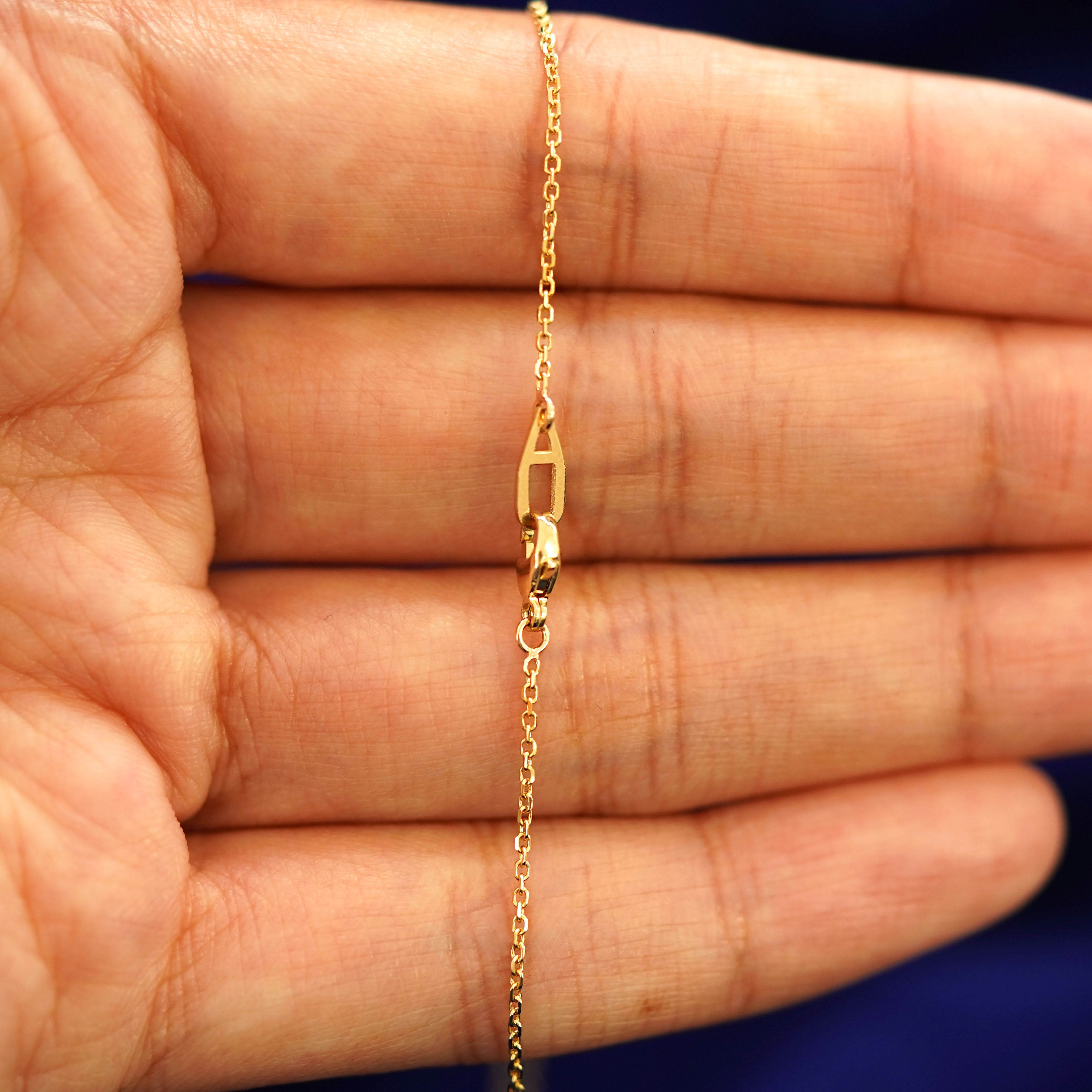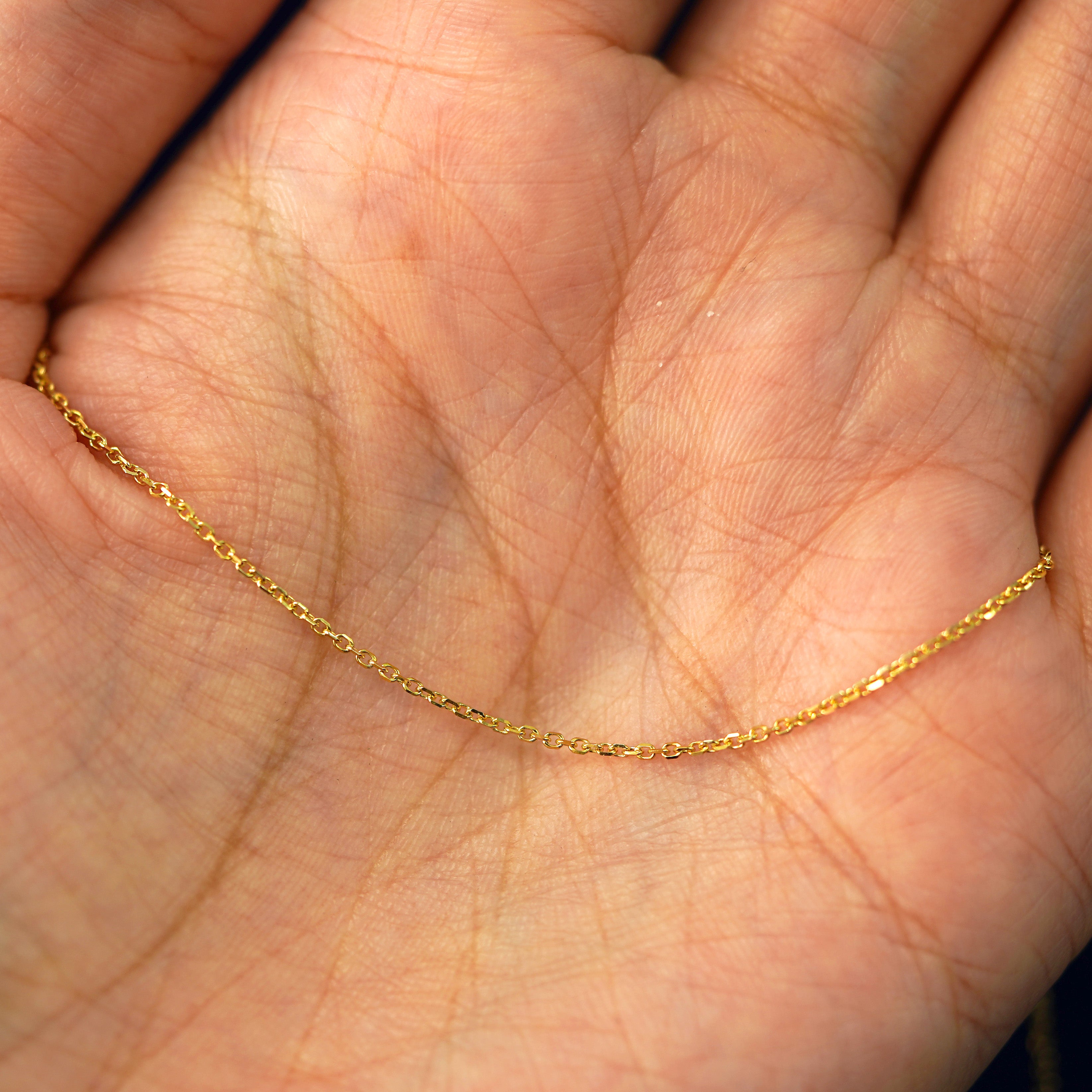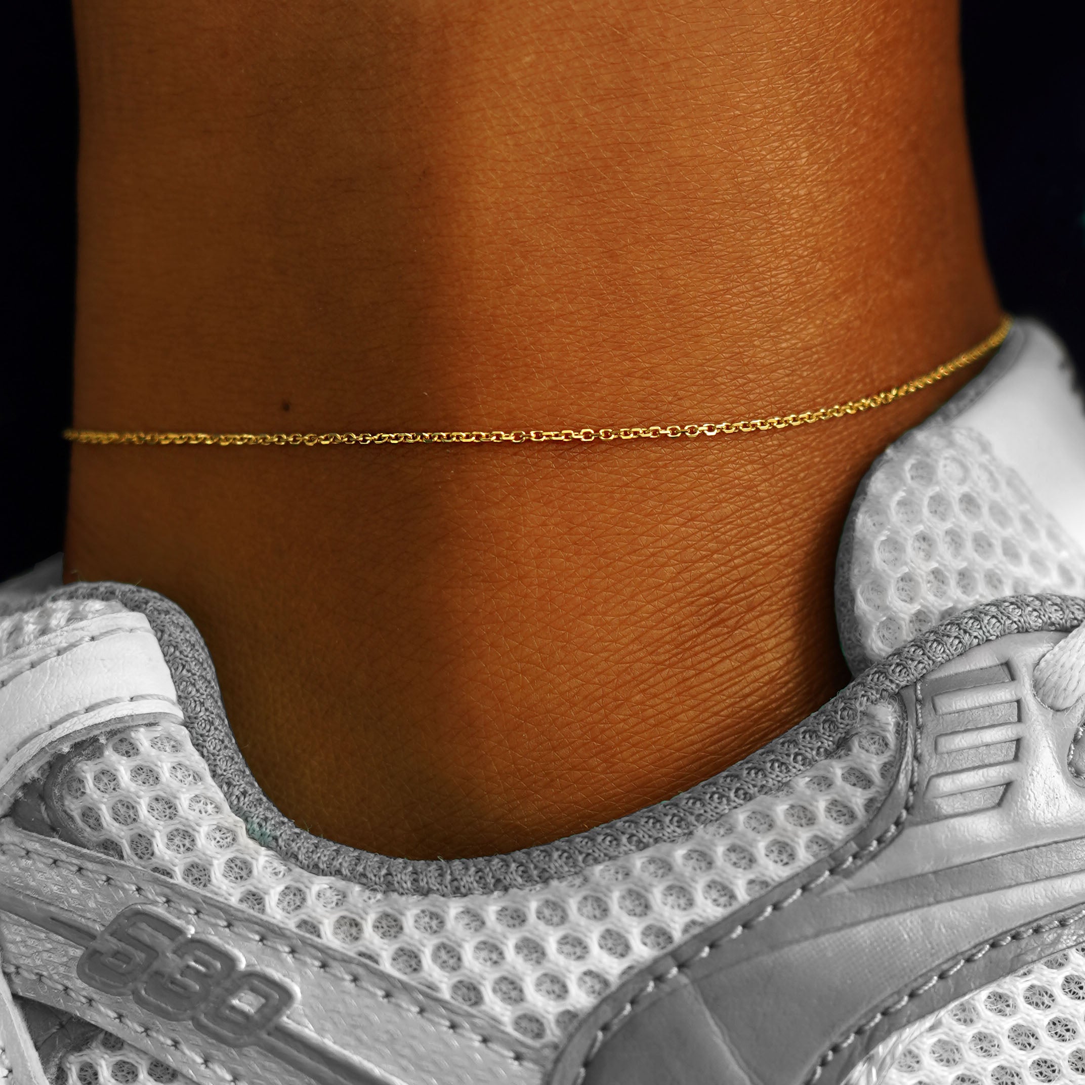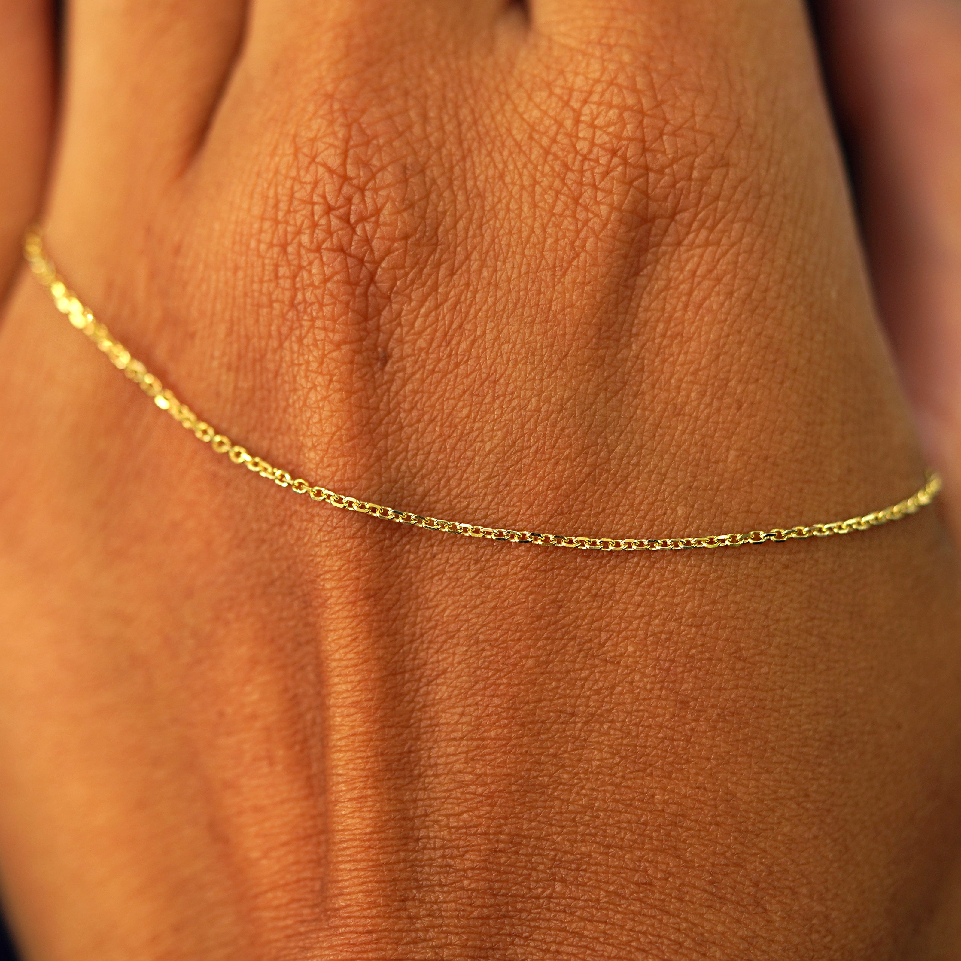 The perfect style staple, our timeless cable anklets now come in three sizes, our classic Cable, our Thick Cable, and now a medium cable. This chic solid gold ankle bracelet has sparkling diamond cut oval links and secures with a lobster claw clasp and an easy-to-grip Automic Gold AU plate.