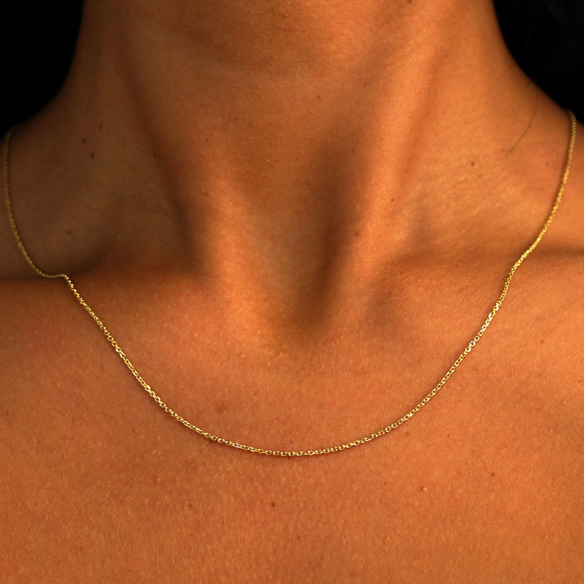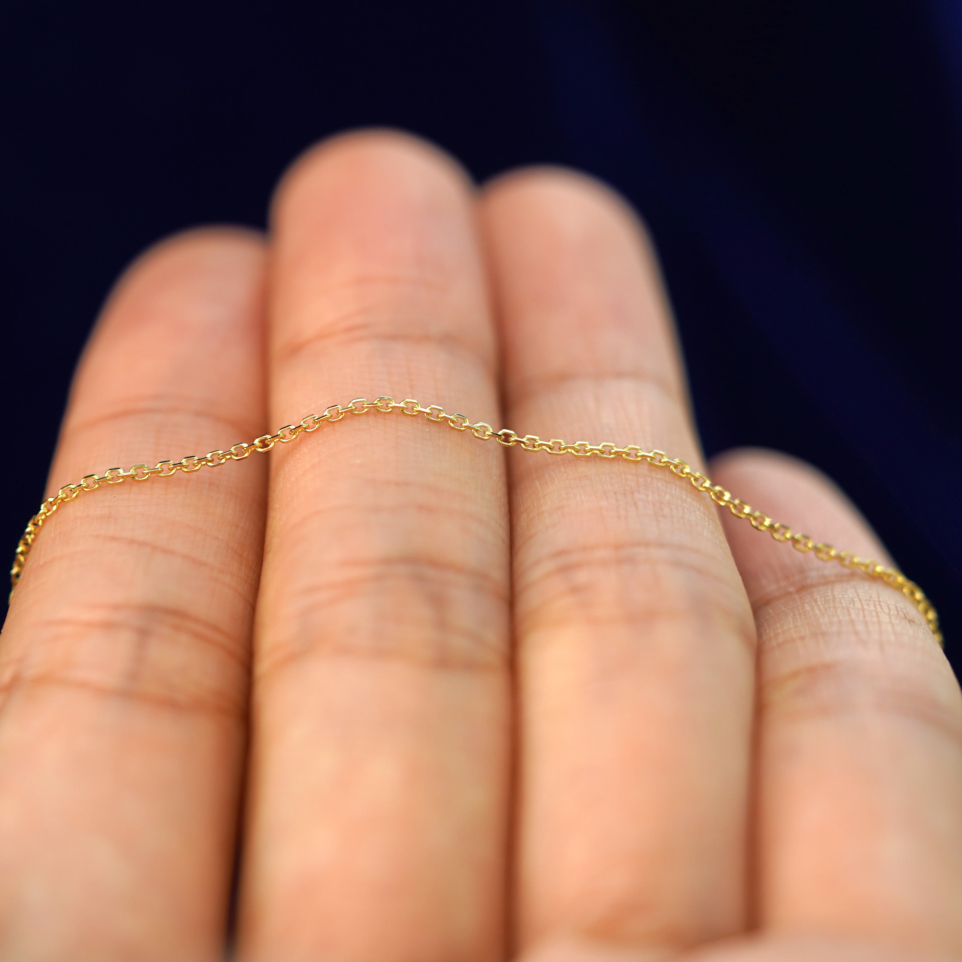 A companion to our classic Cable Chain and Thick Cable Chain, this is the perfect sized necklace for everyone who wants to add just a little extra style. With its classic oval links and diamond cut design, this solid 14k gold necklace is sparkling, durable, and comfortable. Secures with a spring ring clasp and an easy-to-grip Automic Gold AU plate.