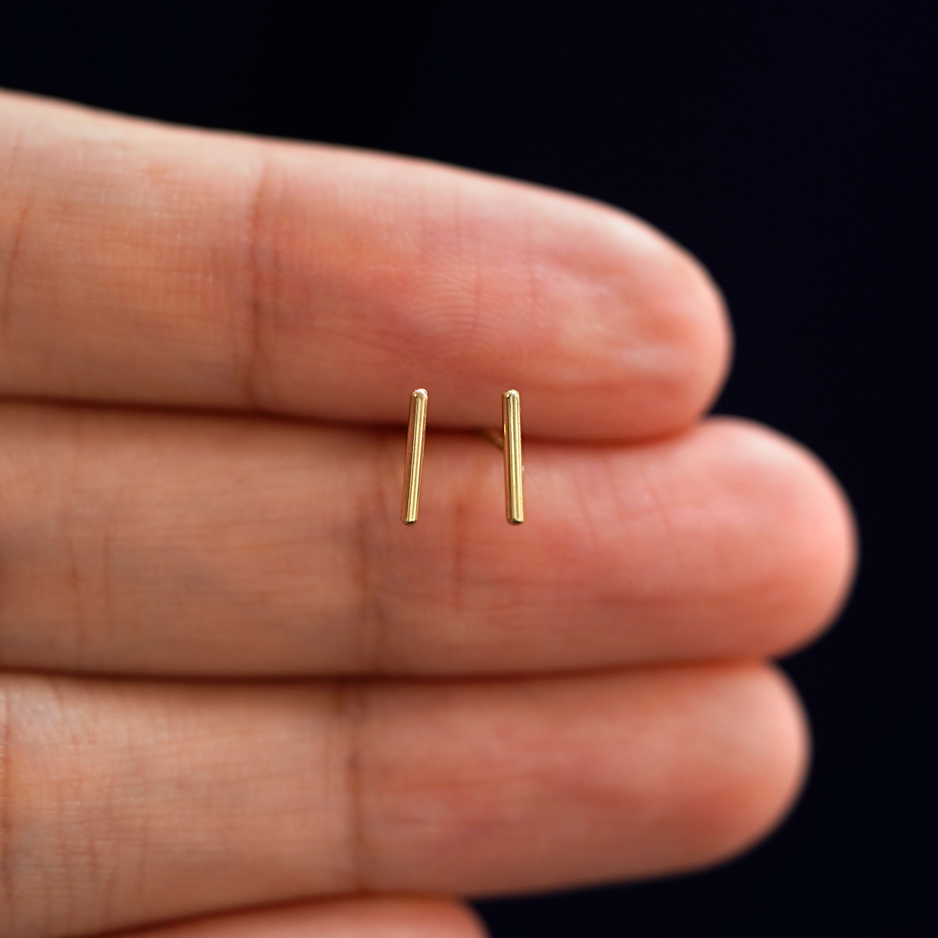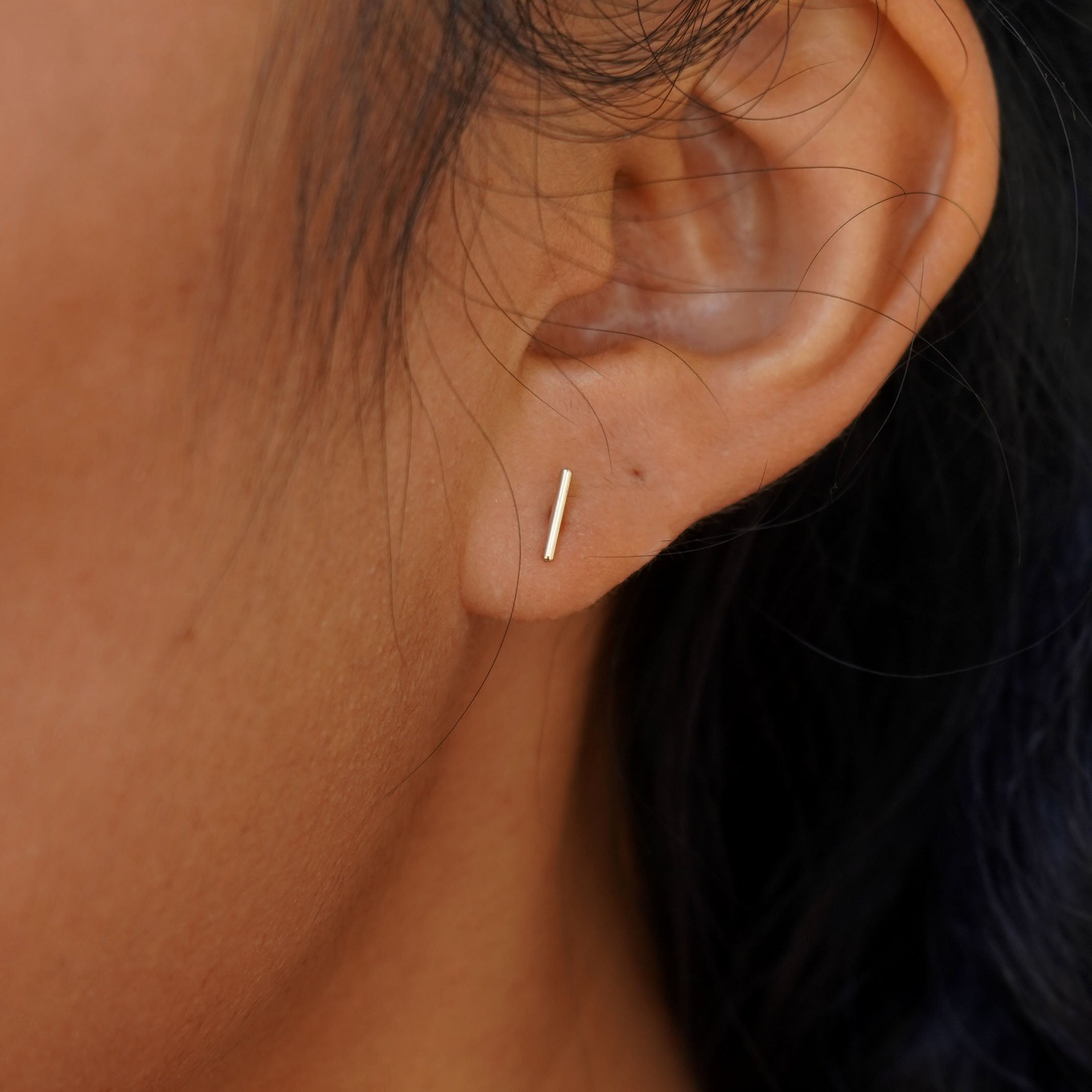 The middle child of the Line Earrings series likes to be noticed, but will never get in the way. The 3D design and rounded edges allows these dainty studs to be comfortable no matter how long you wear them. Our 14 karat gold stud earrings are tested for real life, so you can keep them on from dusk ‘til dawn.