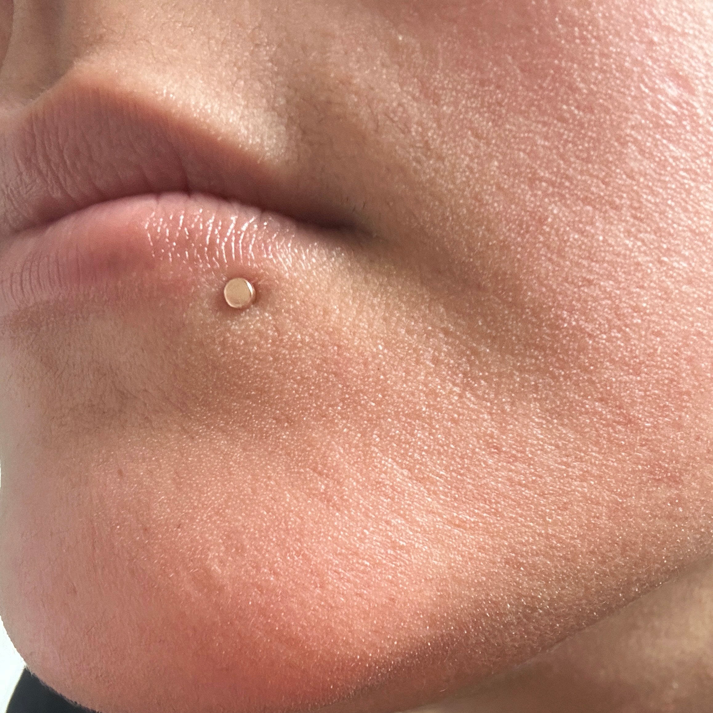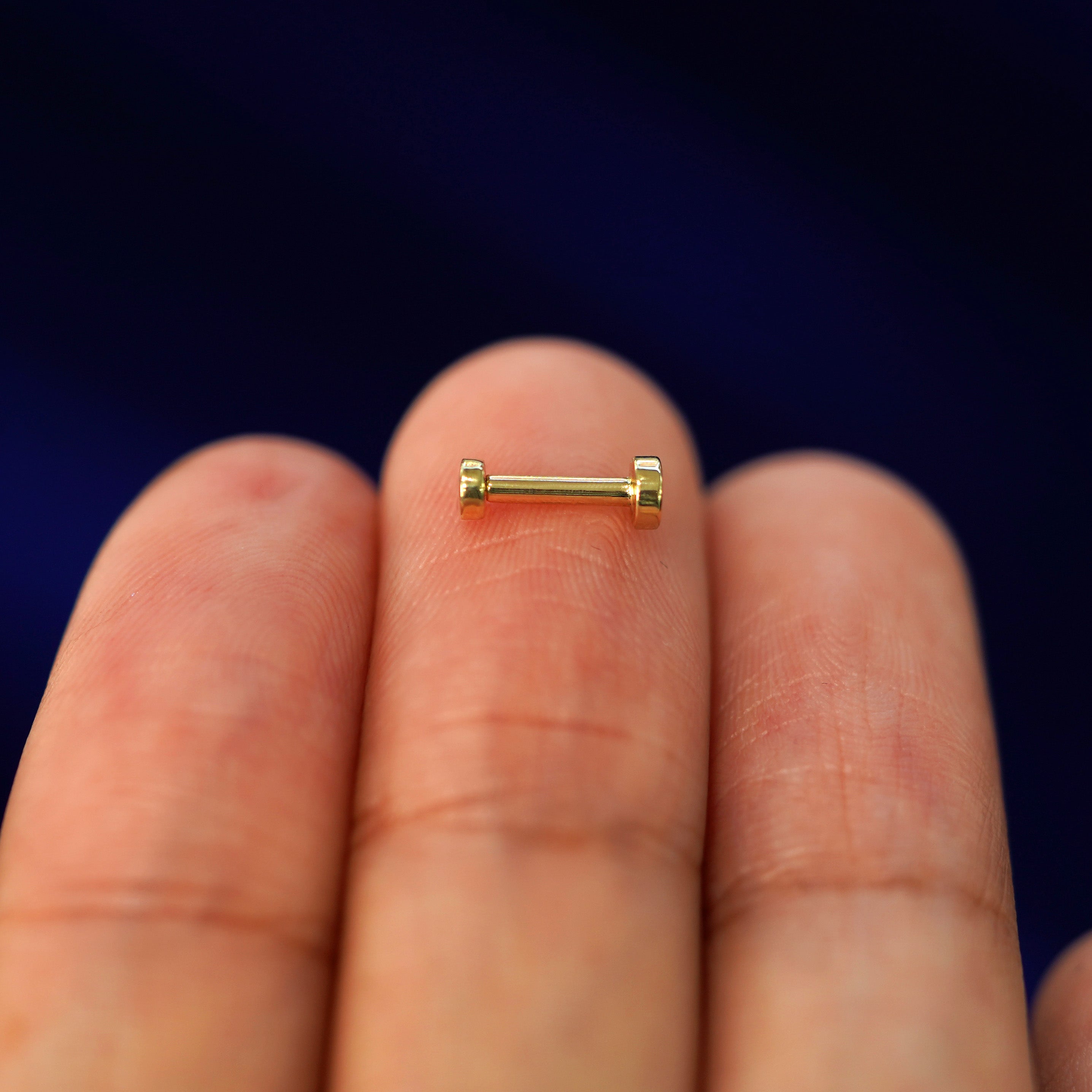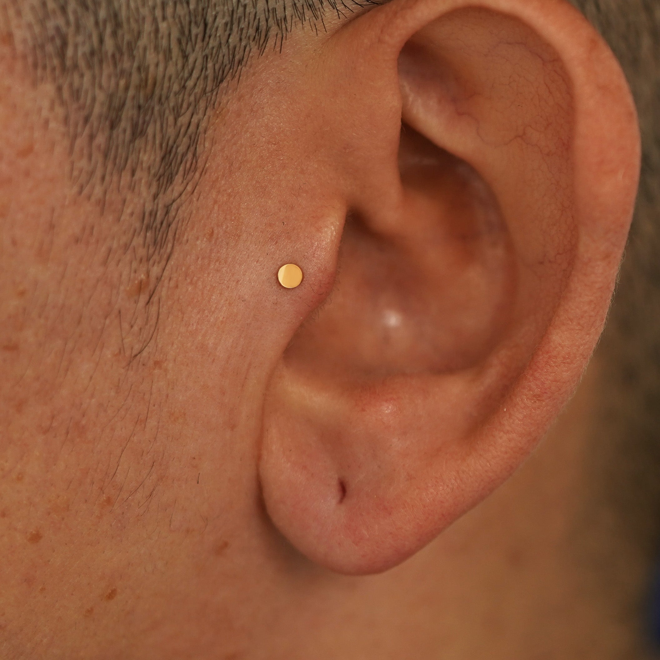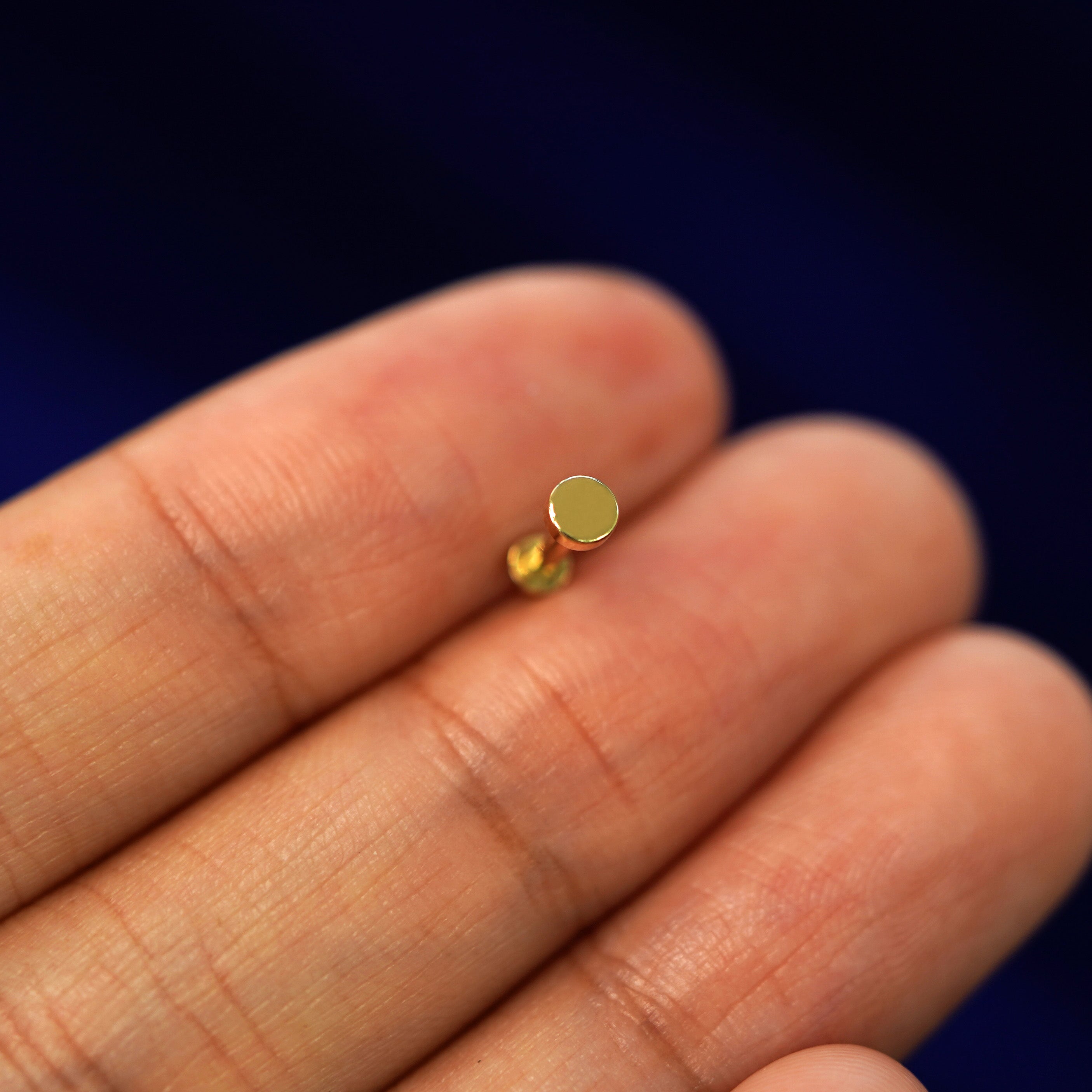 The smallest of our circle studs is minimalist jewelry you'll never want to take off! This dainty flat back threadless push in stud is made with 14k solid gold and is perfect as a cartilage earring or on a helix piercing. Our flat backs are crafted only in 14k yellow gold to avoid sensitivity.