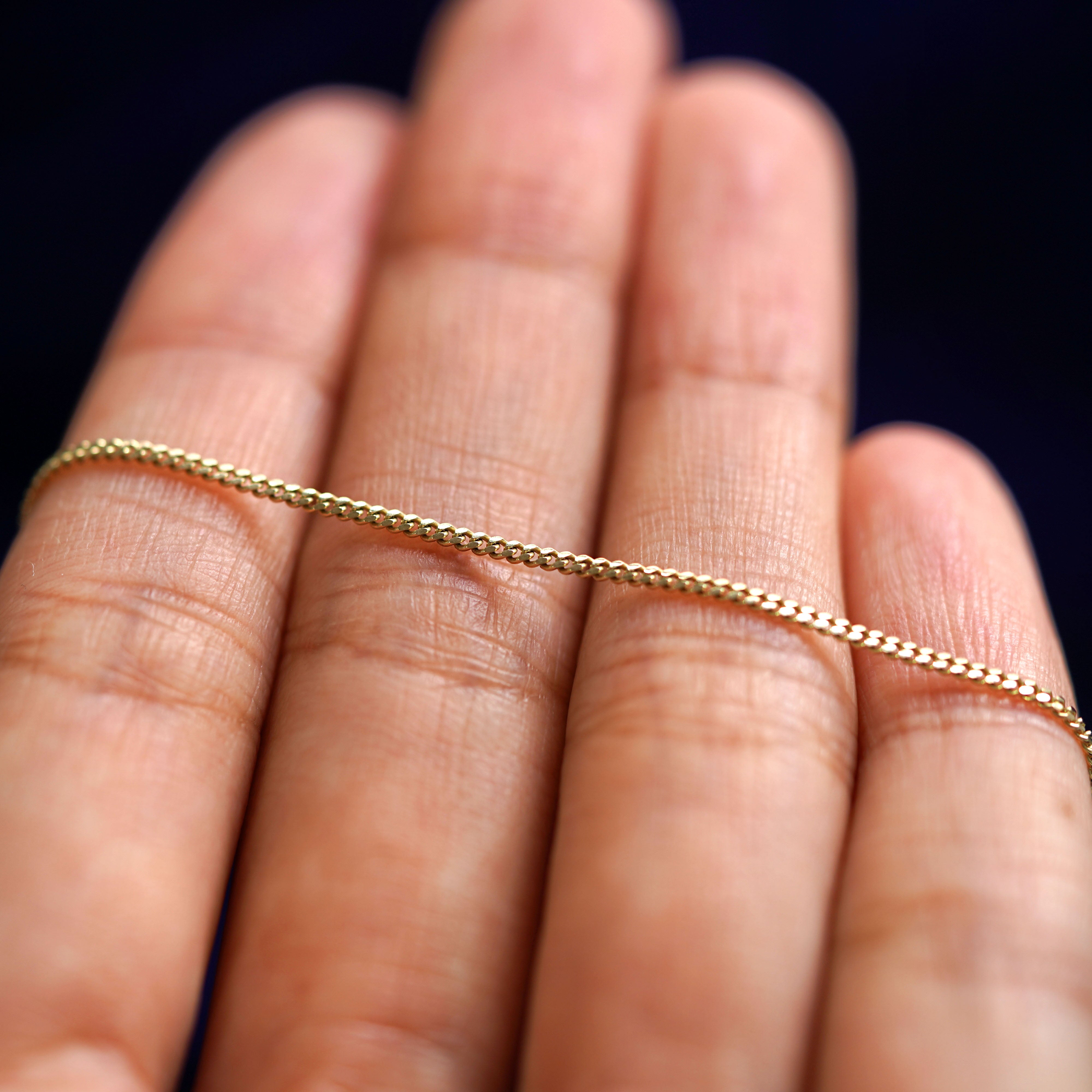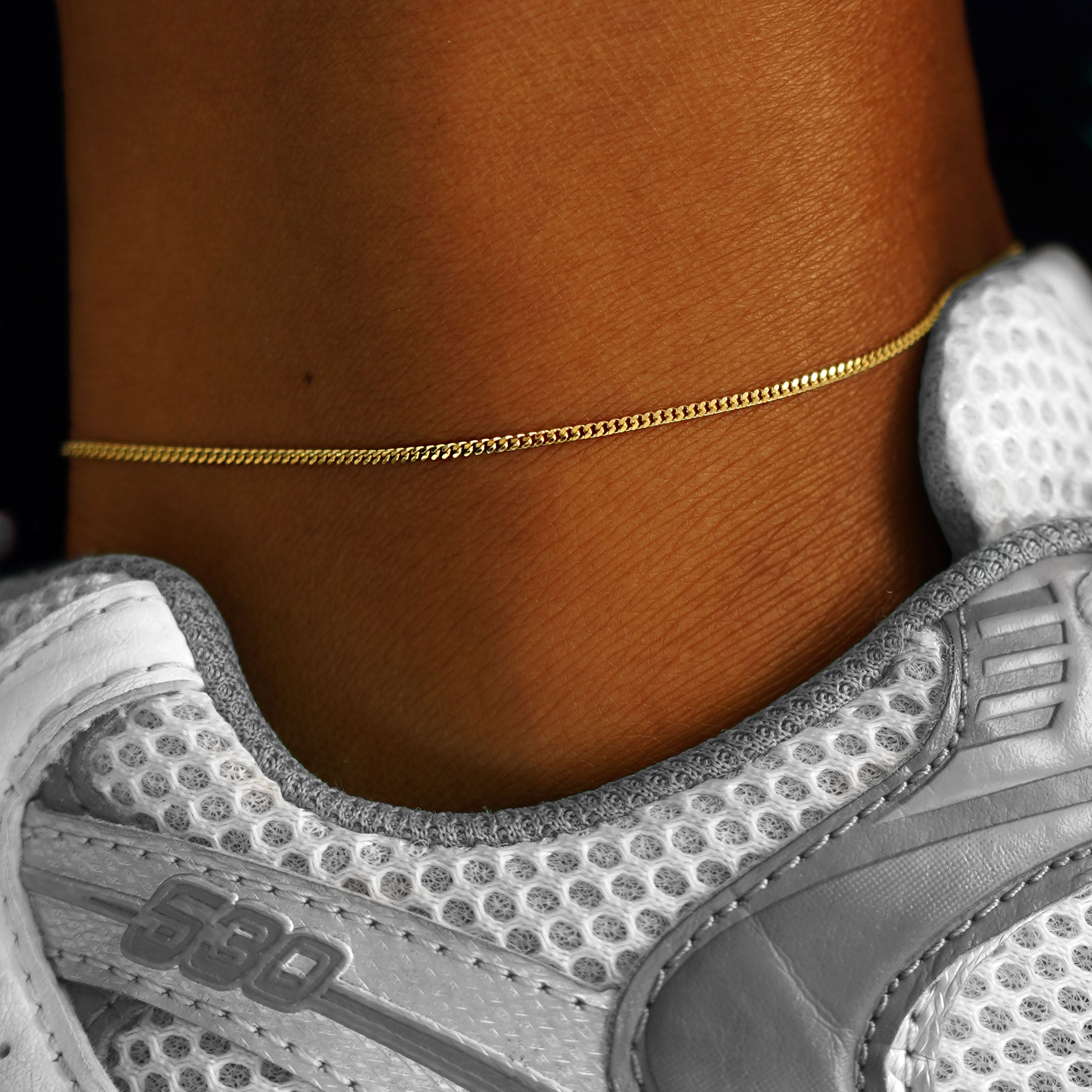 A comfy and elegant chain ankle bracelet that you can wear anywhere. Our mini Miami anklet is made with solid 14k gold so you can wear this beauty without worry. Secures with a lobster lock and easy-to-grip Automic Gold AU plate.