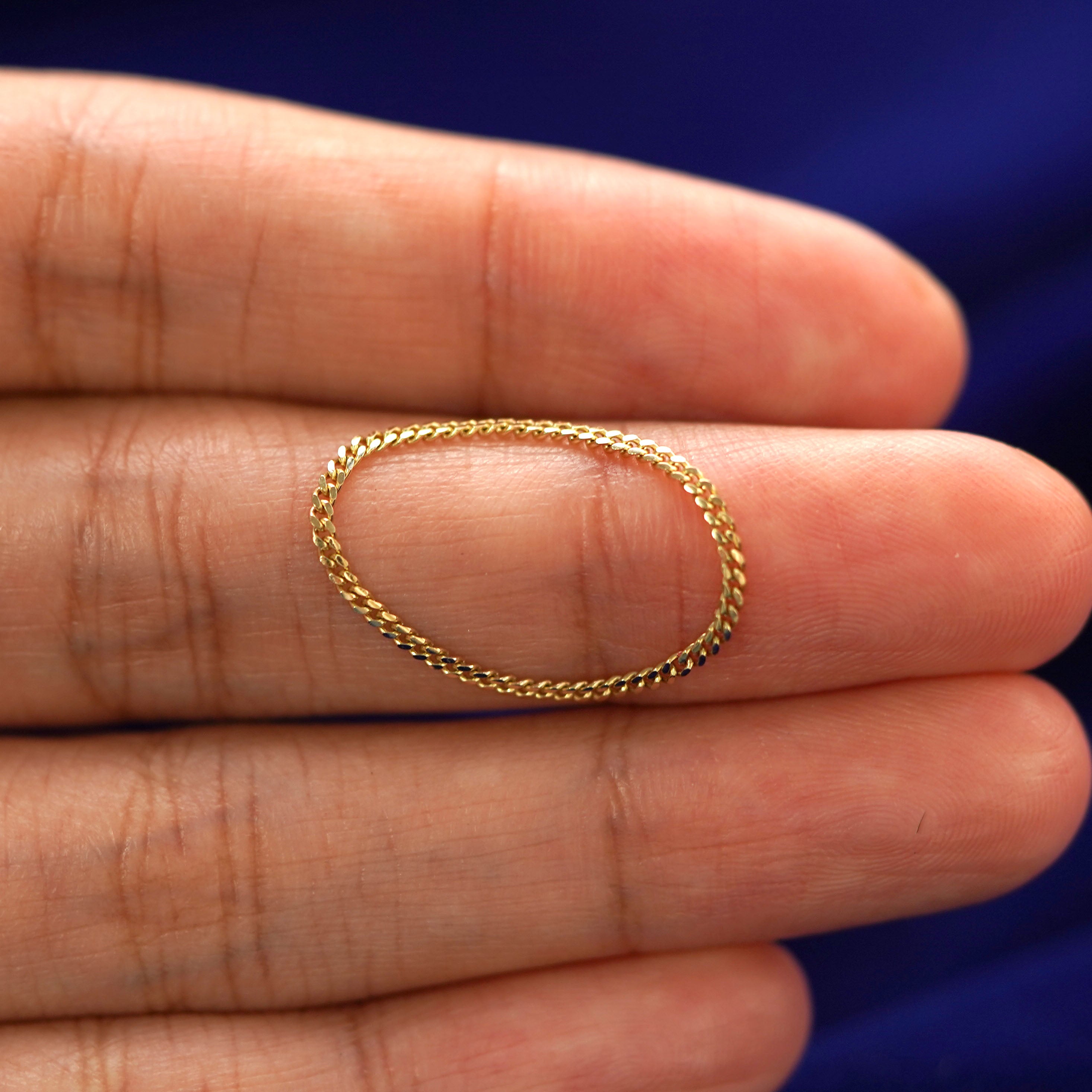 The newest edition to the Mini Miami collection, this chic chain ring has the sparkle and shine to stand out on its own, or wear it with our Mini Miami Chain, Bracelet, or Anklet for a complete look. Designed to be durable, this solid 14k gold ring won’t stretch or sang and is flexible and comfortable enough to wear every day.