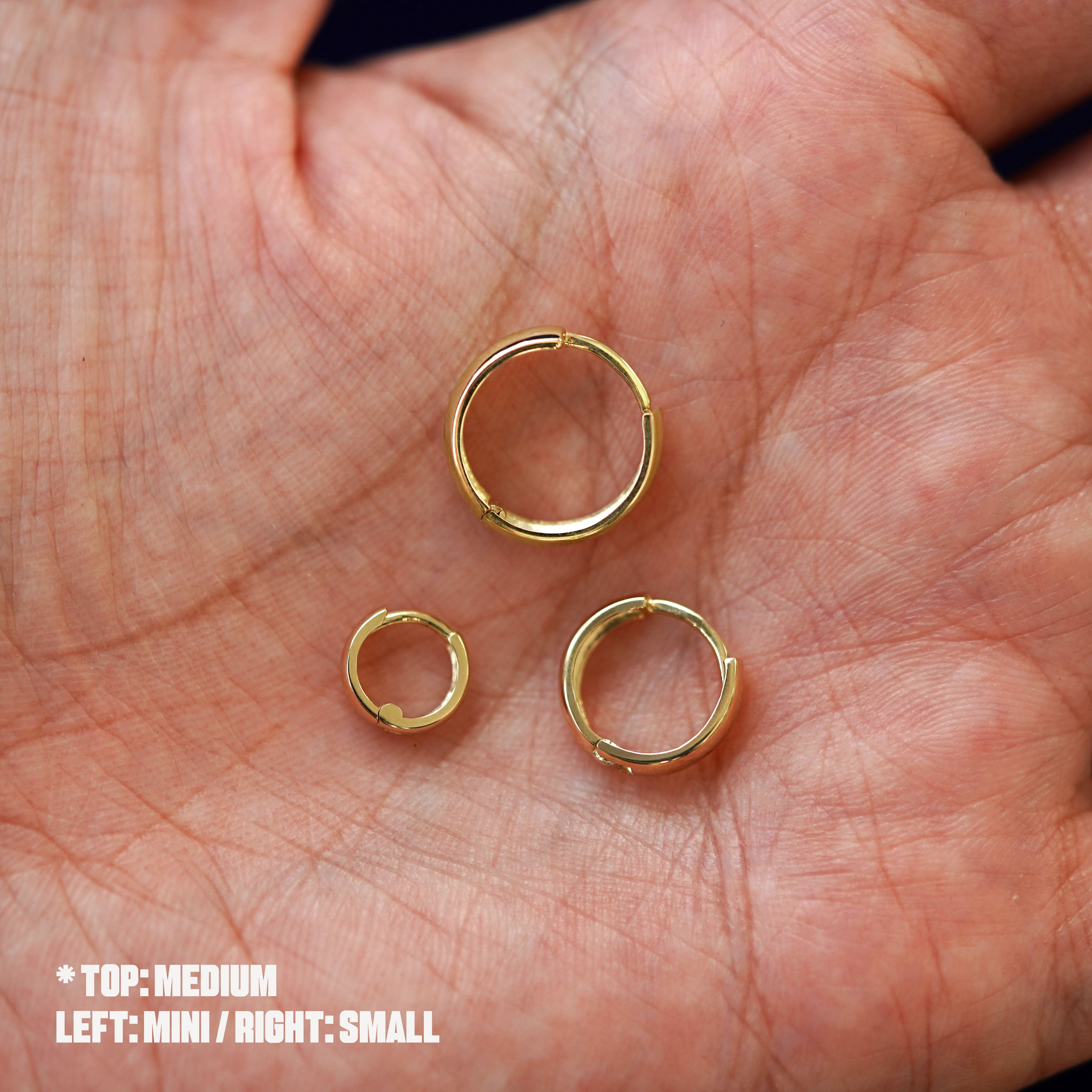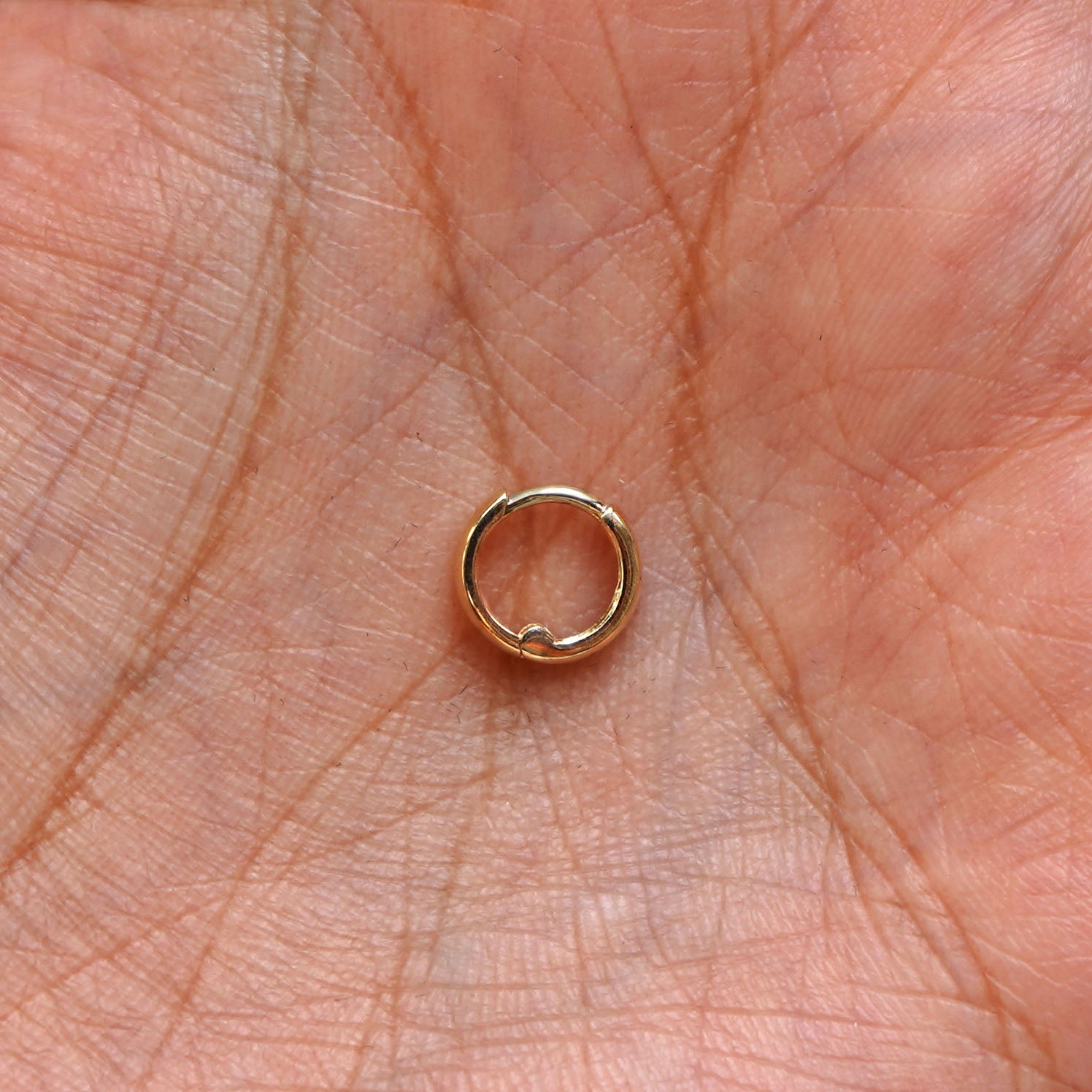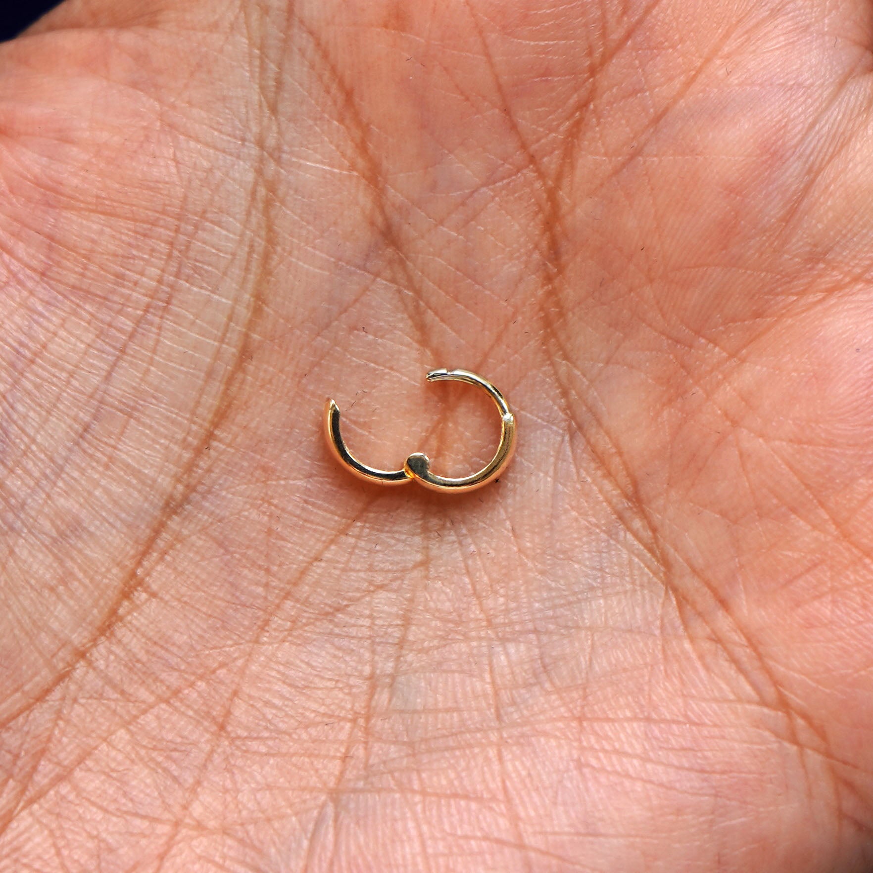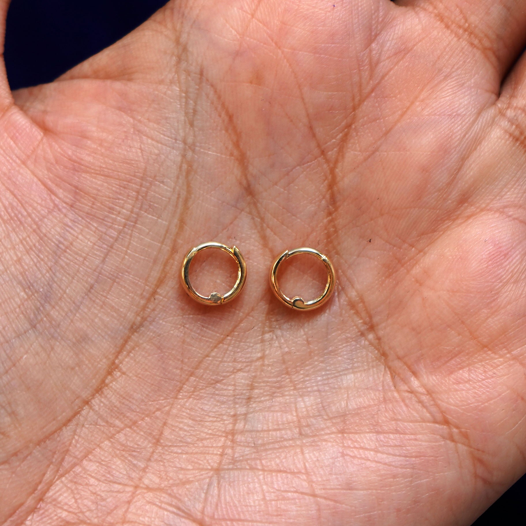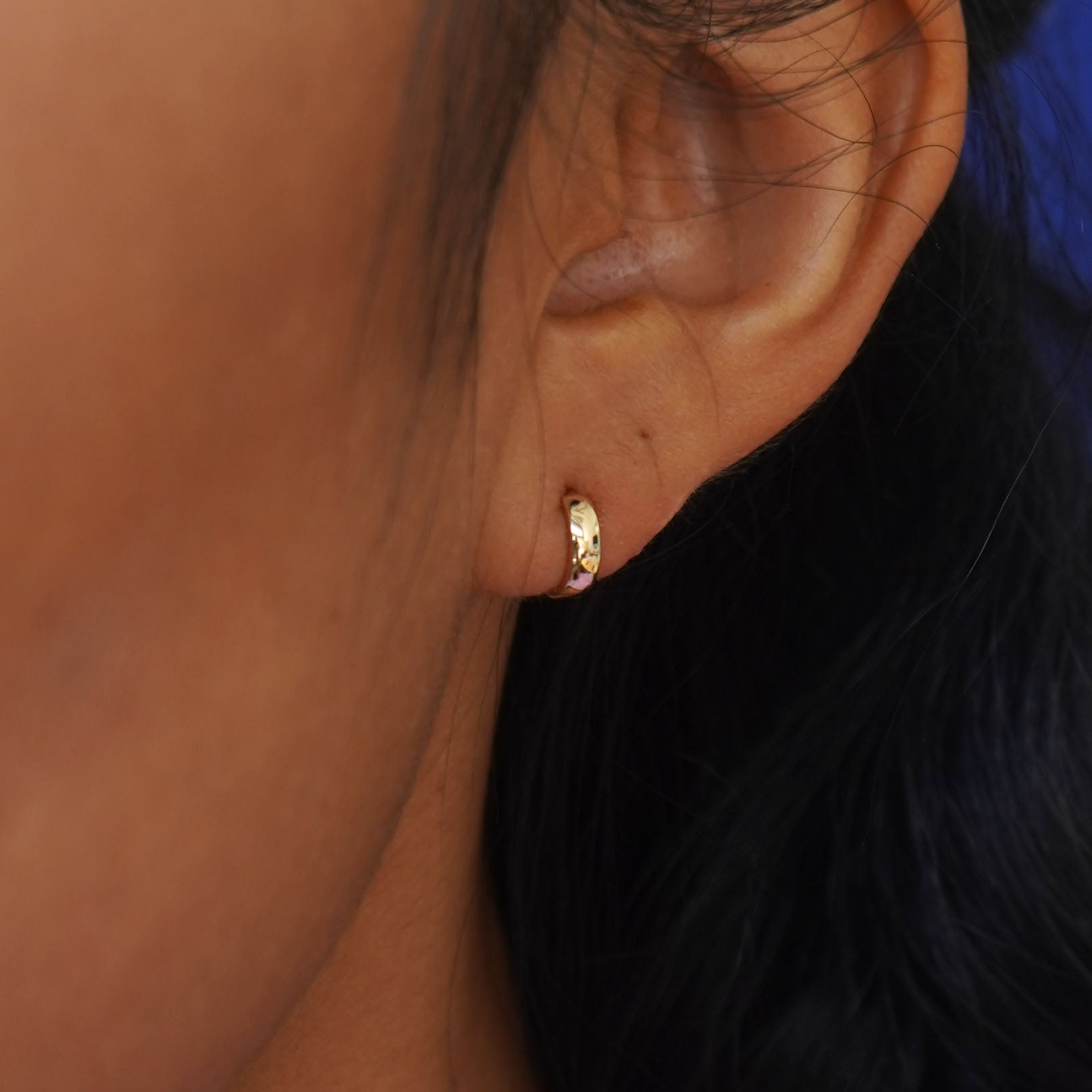 The perfect bit of curve to add flair to a pair of classic wide hoops. These dainty clicker hoops are made from recycled 14 karat gold, so you can be style-savvy as well as eco-conscious. Close these tiny huggies with a click and wear your sustainable gold earrings everyday.