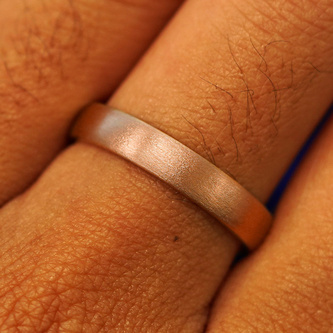 Half Curvy, Half Industrial, our Mix Matte Band is completely perfect. Designed for people with high sensitivity, this ring combines a slightly rounded edge with a flat face to create an incredibly comfortable band. The matte finish gives this handmade solid gold ring a refined look. This genderless piece makes a fantastic wedding band or wear it as a stackable, everyday ring.