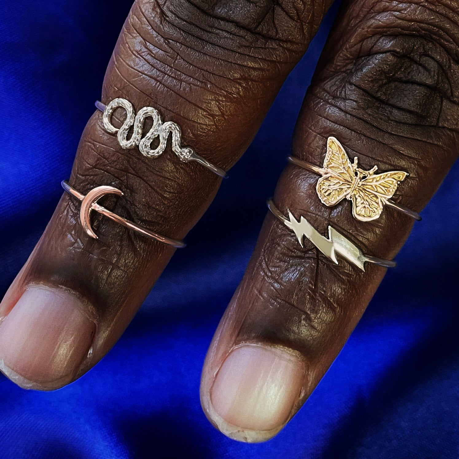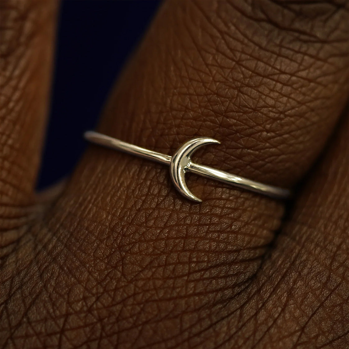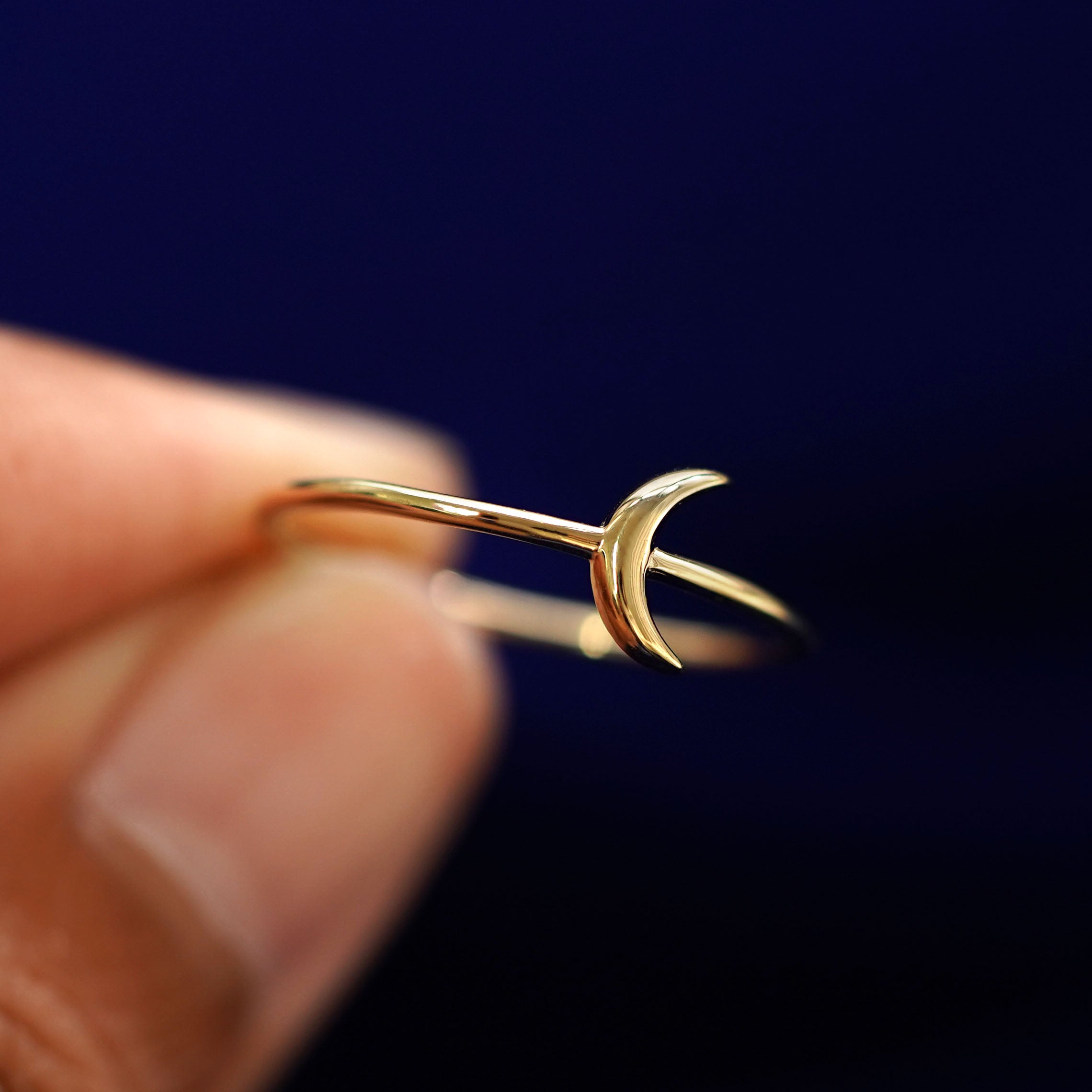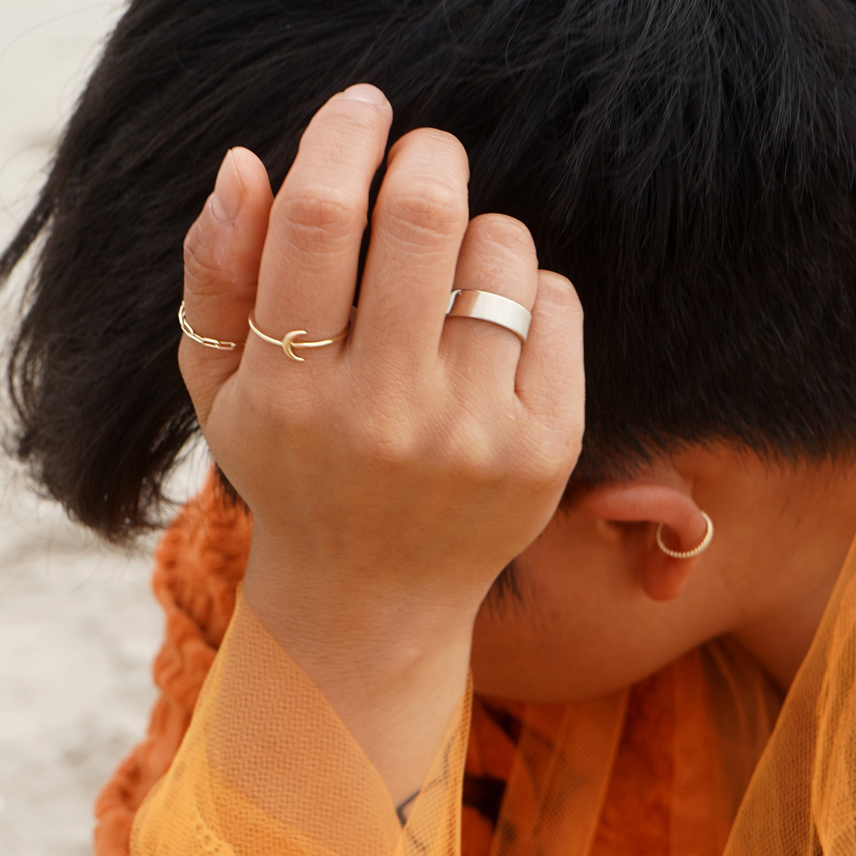 For celestial jewelry to make you look out of this world, this dainty crescent moon ring is simply heavenly. Wear this solid 14k gold ring with our Sun ring for an incredible stacked jewelry look.