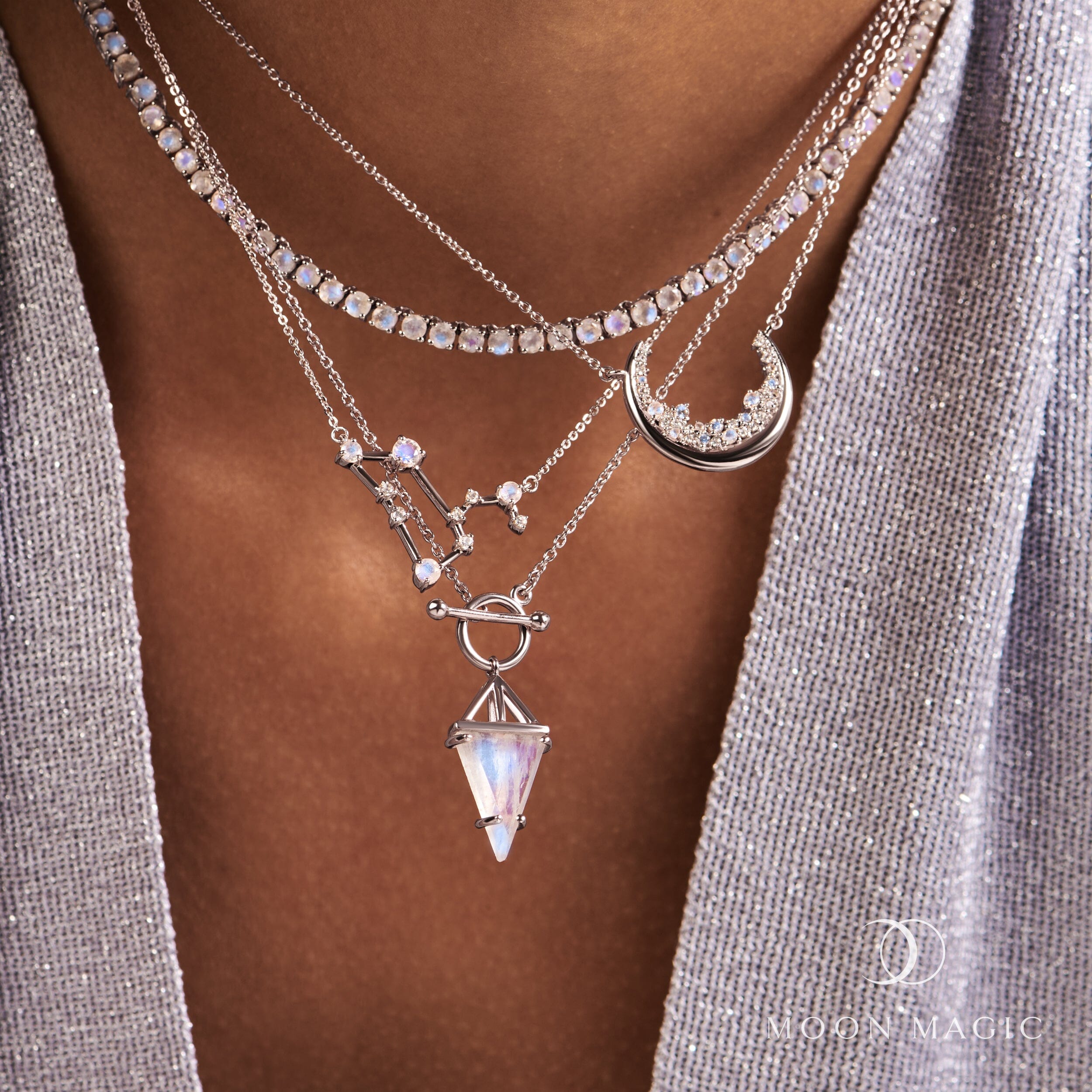 Every Leo knows that diamonds are more than just a luxury – they are a necessity! Adorned with authentic Rainbow Moonstone & ethically-sourced Diamonds, this is more than just a beautiful accessory - it’s a symbol of your charismatic spirit, determination, and connection to the cosmos, designed to boost your intuition, connect you to divine feminine power, and provide protection and balance. Now is your chance to channel that captivating, confident Leo energy. Perfect for gifting, even better for keeping.