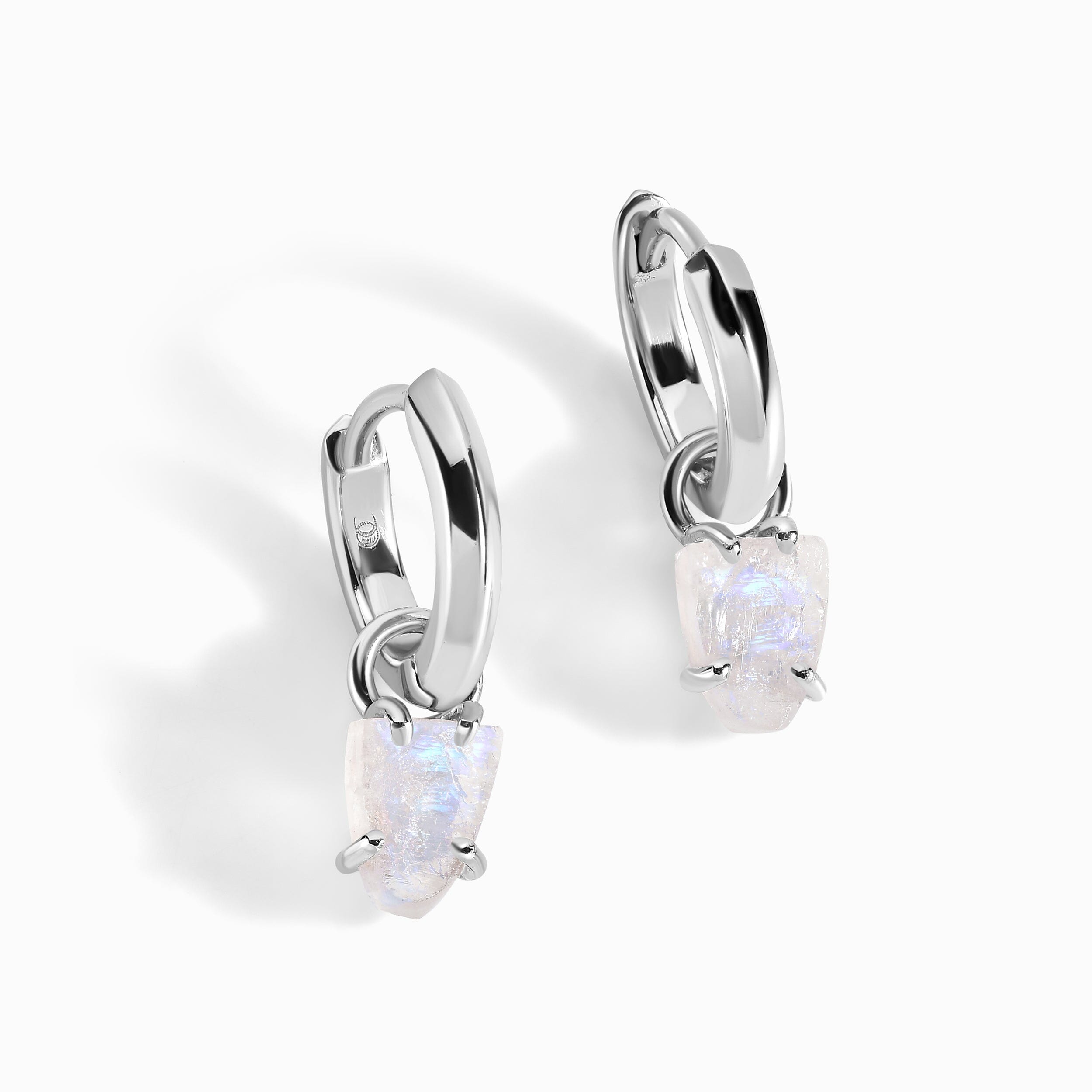 These stylish, essential hoops will bring the raw power of Moonstone into your life. Delicately suspended on the hoops, the raw Moonstone gem brings gentle protective energy into your life, encouraging inner balance and helping you listen to your inner voice. Made with a luxe, high-shine brass finish, these hoops are hypoallergenic, tarnish-proof, and water-resistant.