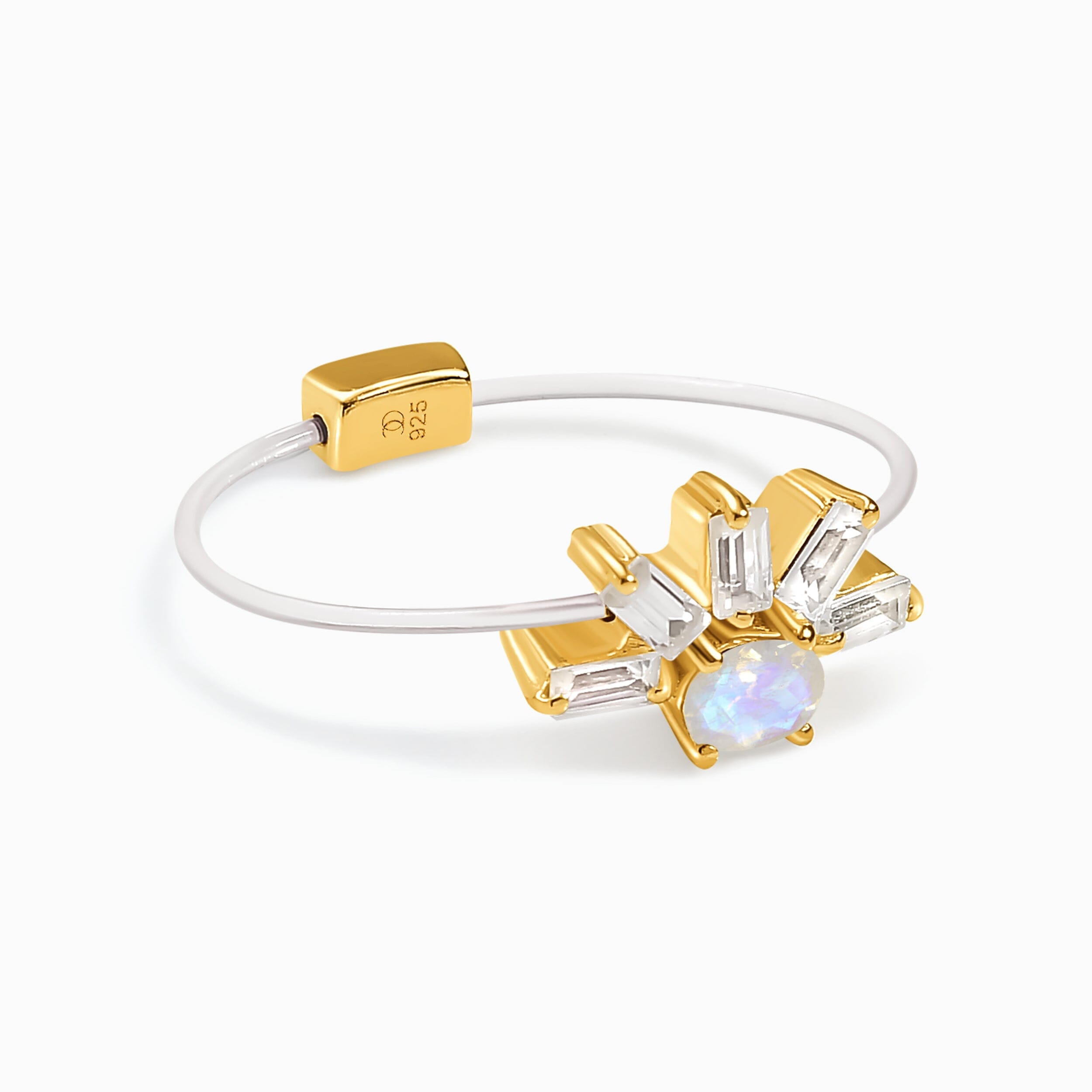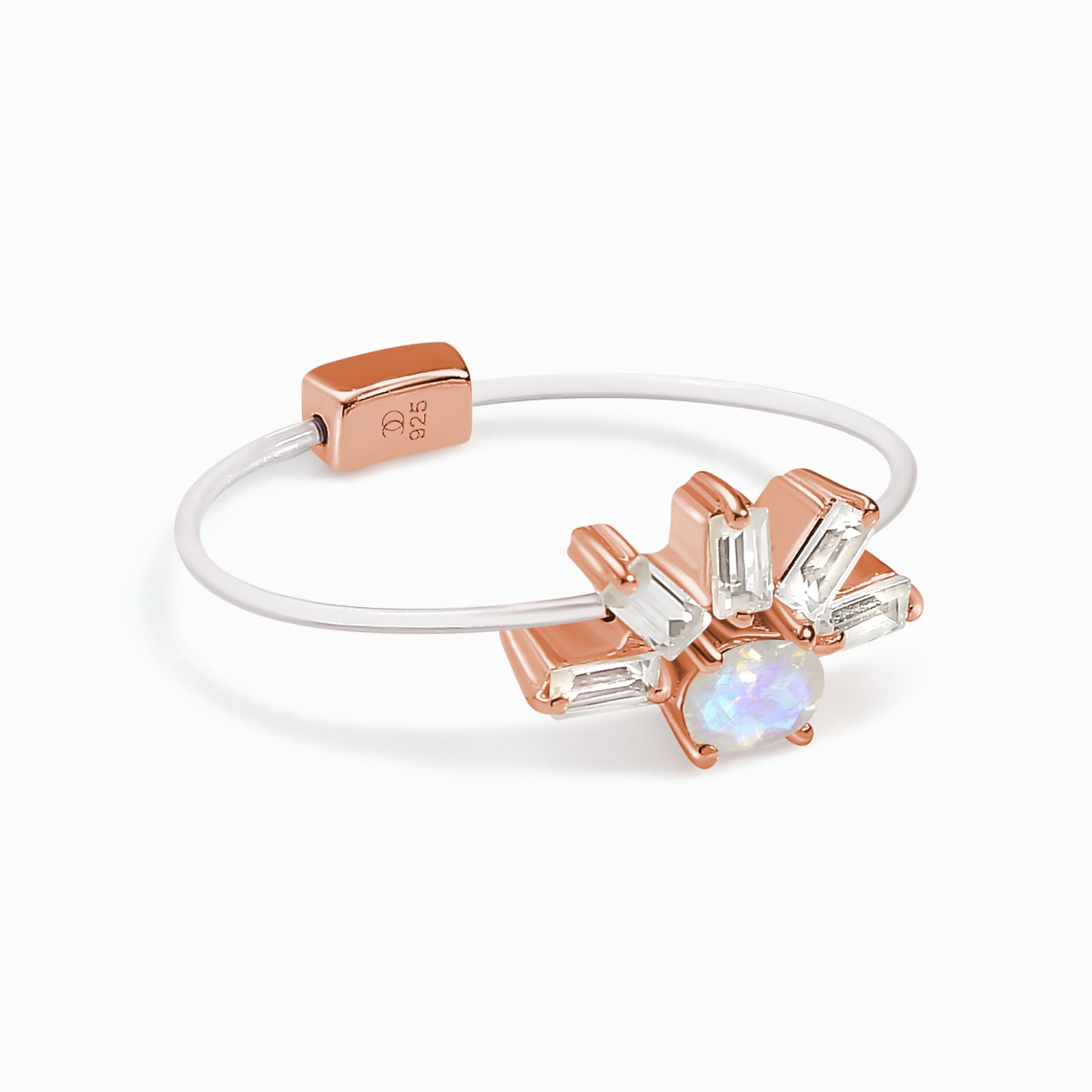 The invisible band supports our Moonstone, making it appear to float above your finger. It's lightweight, flexible, and resilient for maximum comfort.