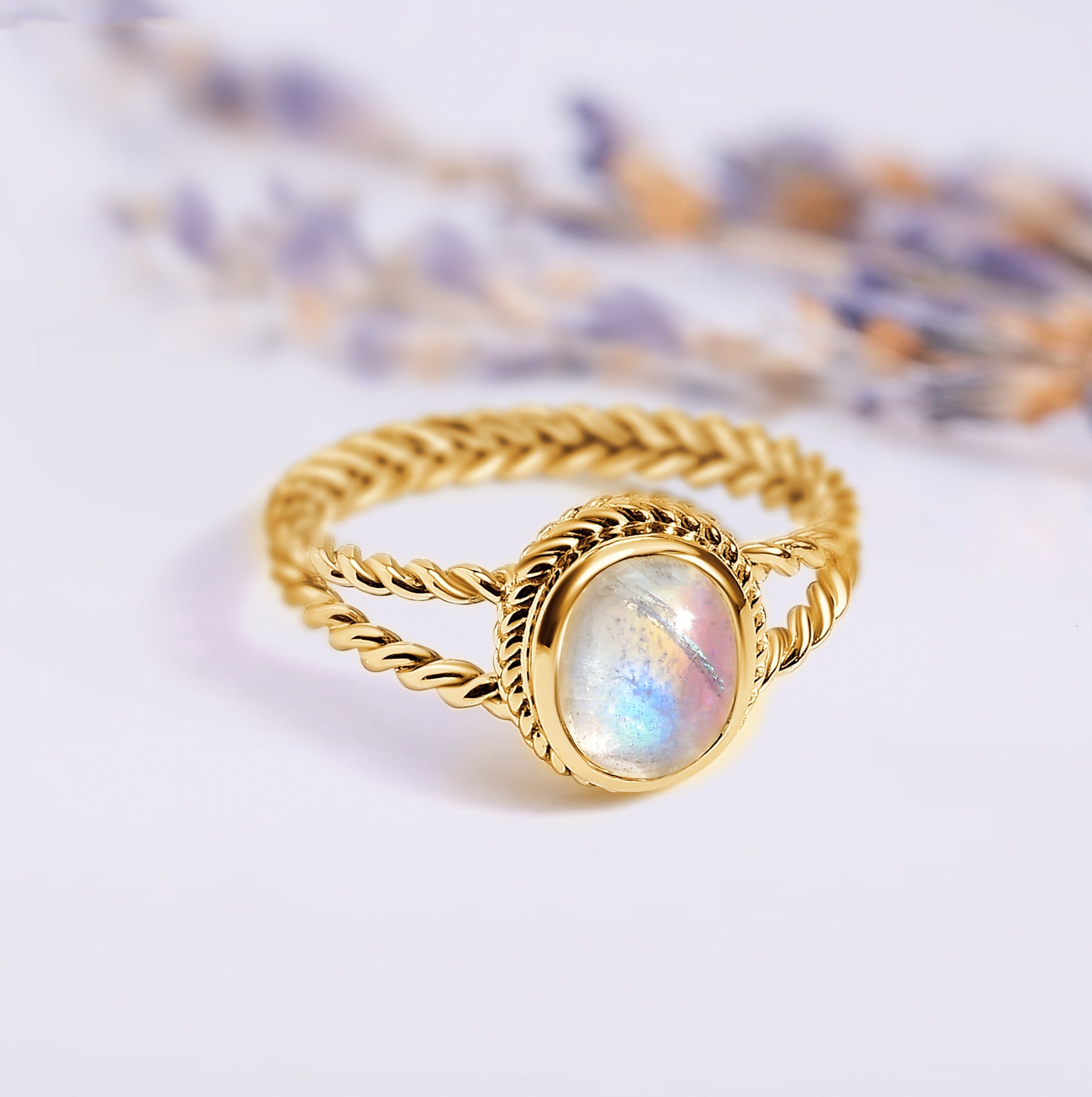 Reintroducing our highly requested Moonstone Ring - Lynx Light, resurrected for your life's next chapter. Adorned with an enchanting Moonstone, known as the stone of new beginnings, this ring offers emotional balance and intuitive guidance. Navigate new adventures confidently with this timeless piece, brought back by popular demand for those seeking both style and protection.