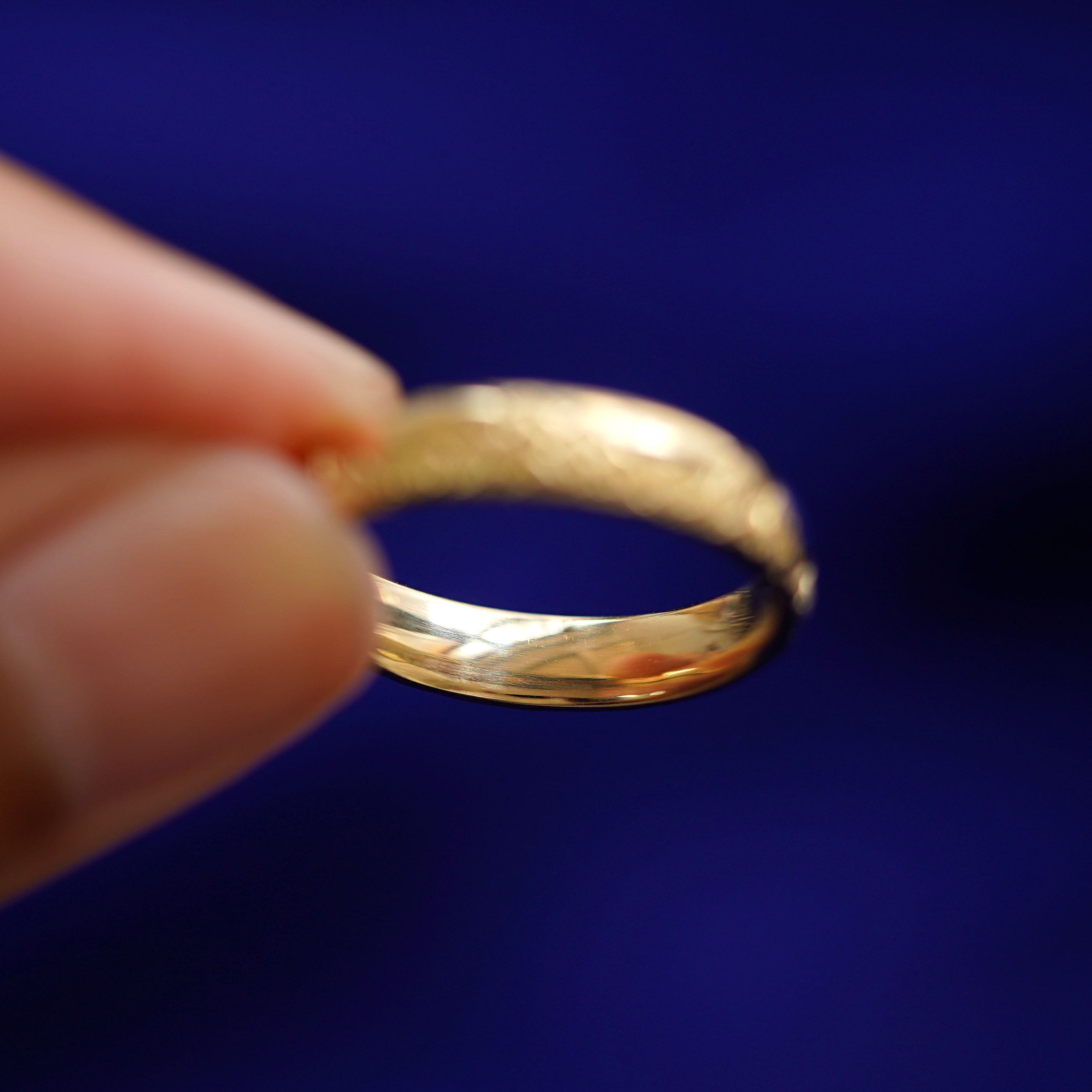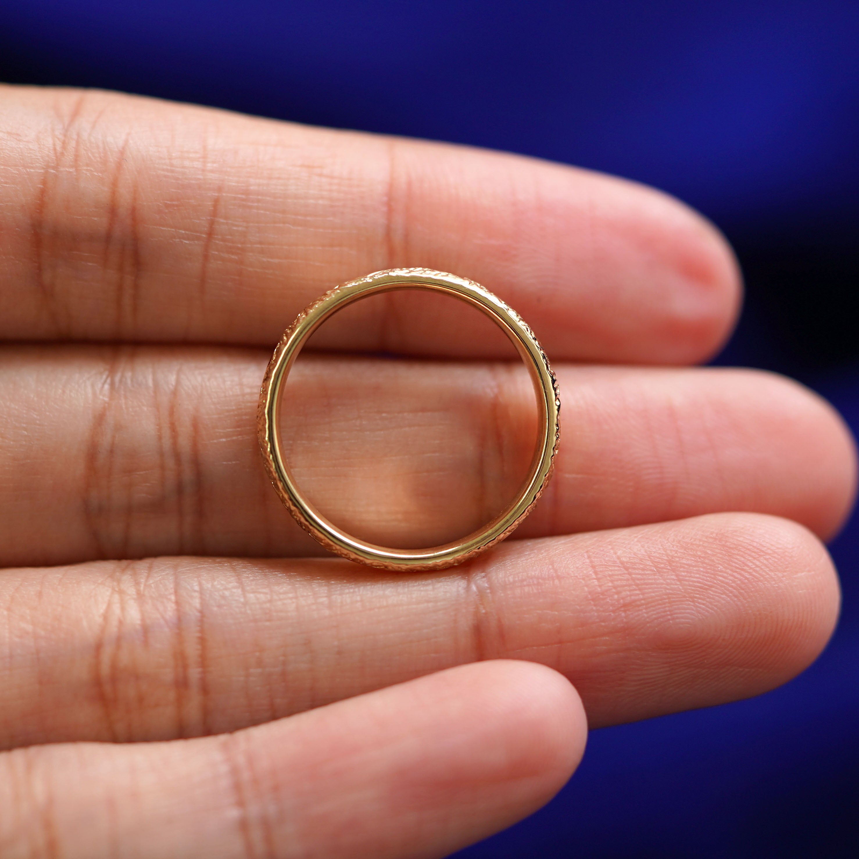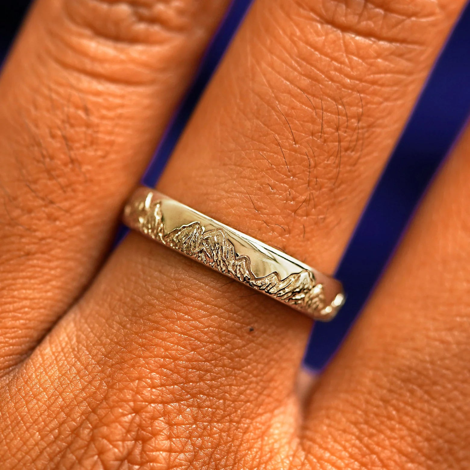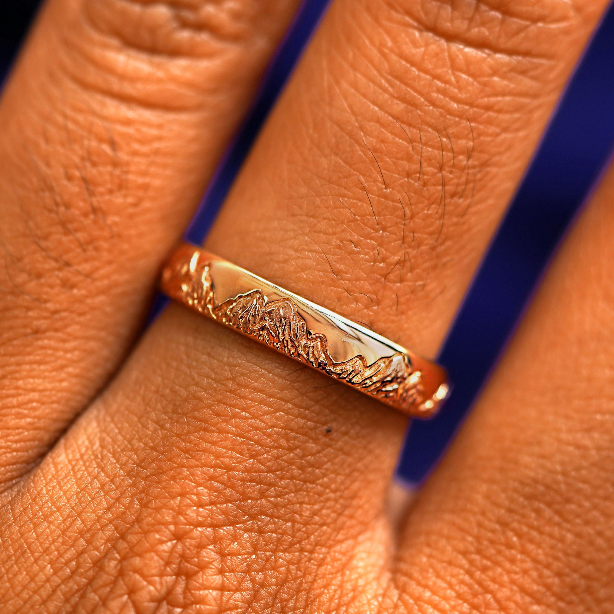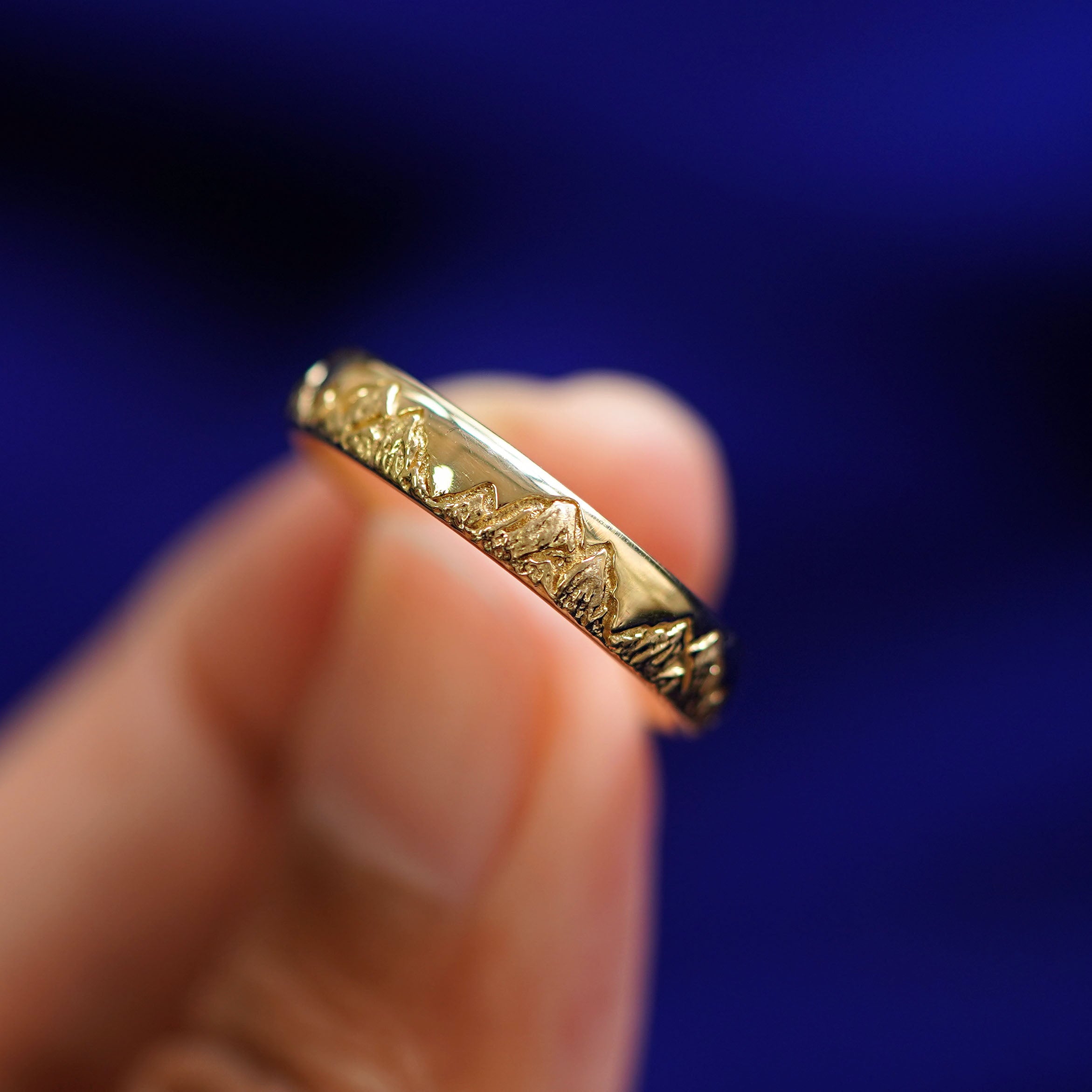 If the love of your life loves nature, then this is the unique wedding ring for you. This incredible wedding band features a stunningly etched mountain range that wraps fully around the band and is designed in recycled, solid 14k gold or 950 platinum. A perfect, intricate band for anyone who’s climbed their way to the top of your heart.