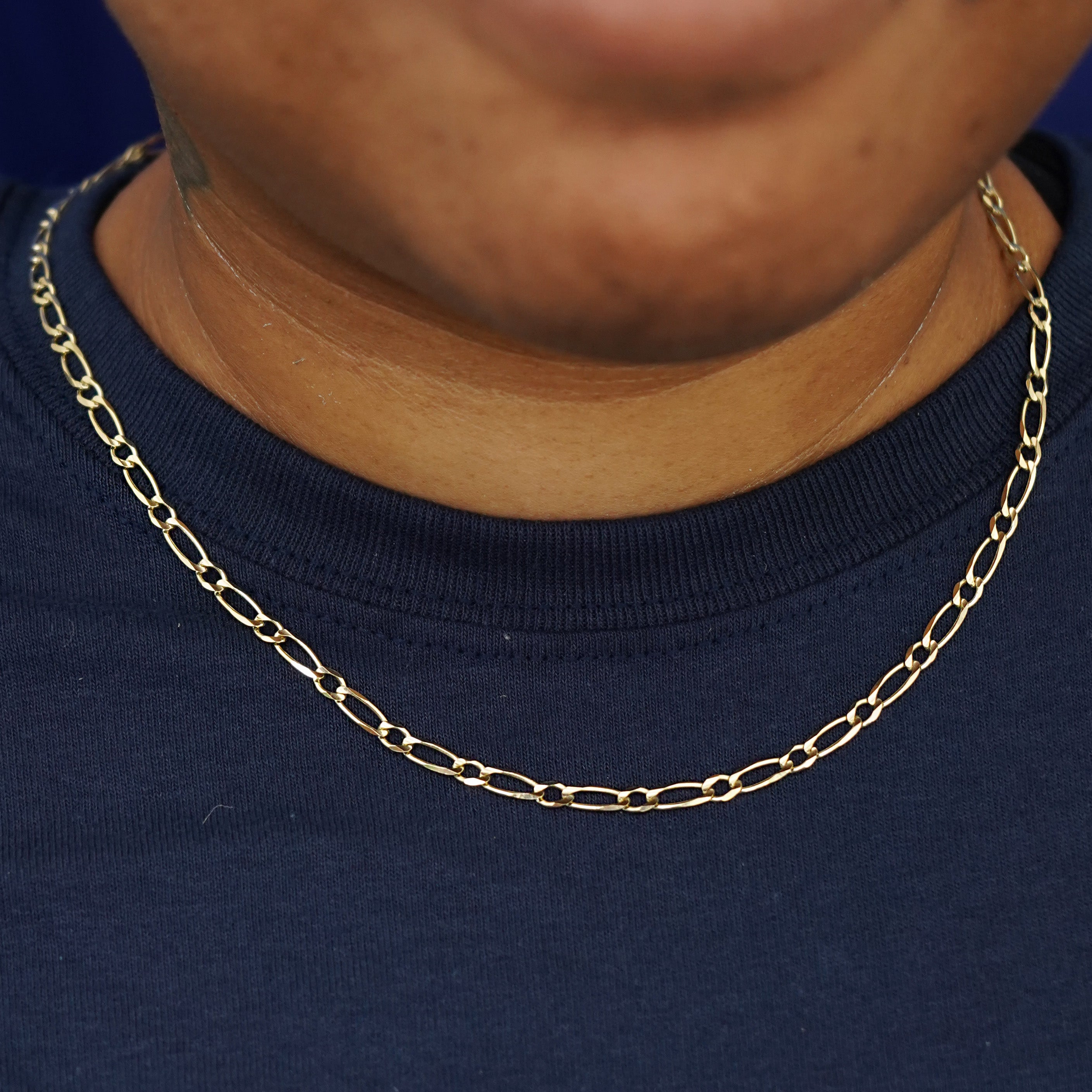 A twist on the classic Figaro style, this One To One chain features alternating round and long links. A 14k solid gold chain that is sleek, sexy, and stylish. Wear this shiny chain necklace alone or with our Essential Chainor Cable Chain for a chic layered jewelry look.