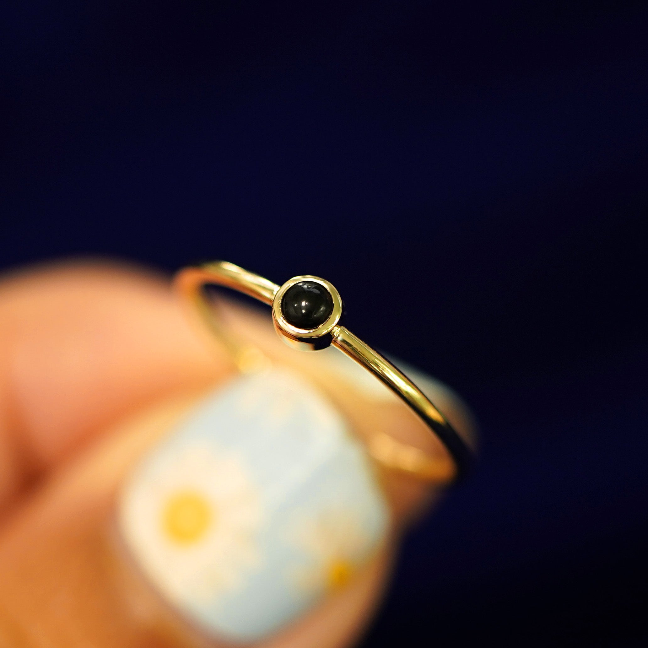 The Black Onyx is said to be a powerful protection stone. Whether you're out for the night or having a weekend in, you'll want this dainty gold ring with you everywhere you go. Wear this 14k solid gold beauty as a midi ring, thumb ring, or pair it with our other gemstone rings for a stacked style.