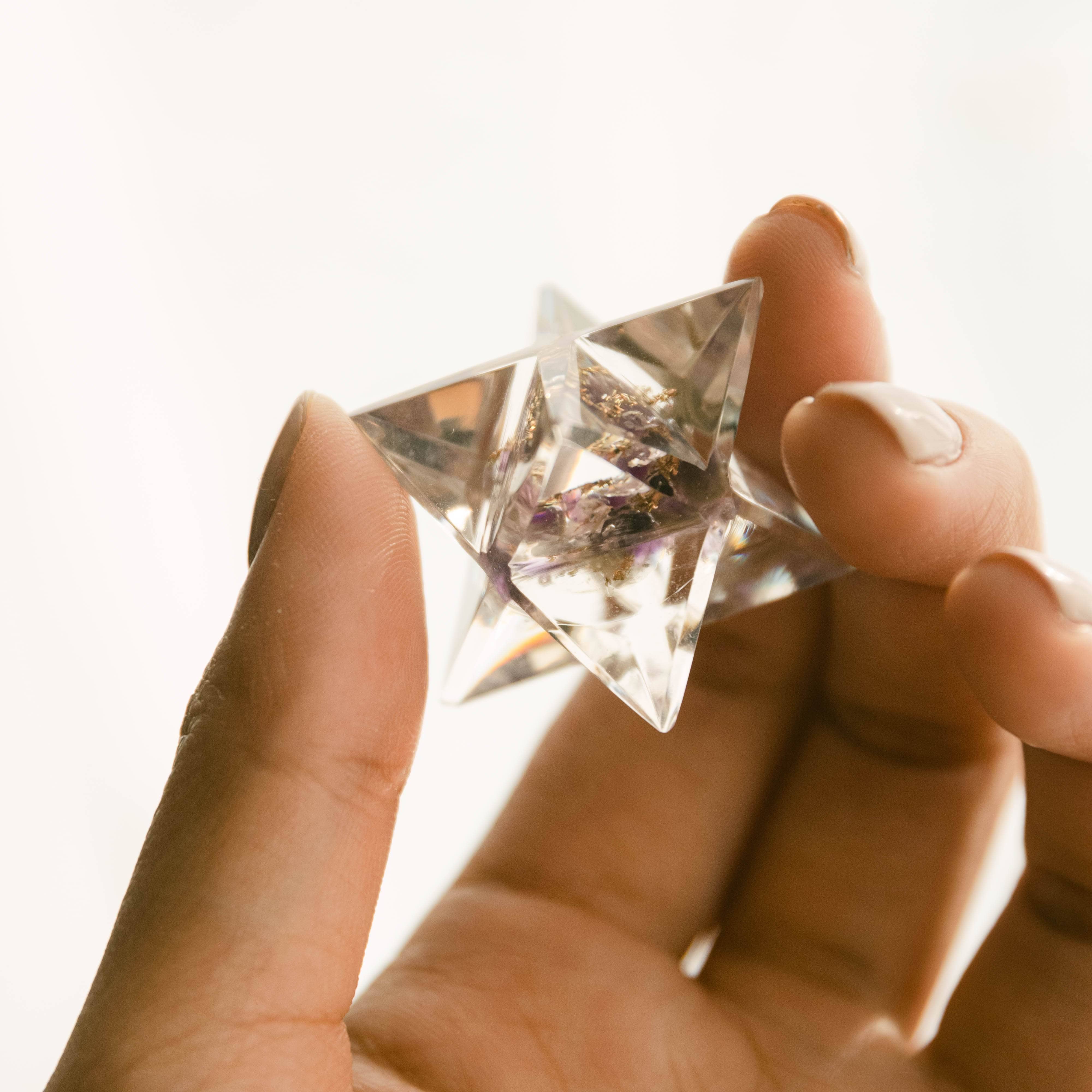 The Amethyst Orgone Merkaba is here to keep your crown chakra shining and ever connected to the higher realm.