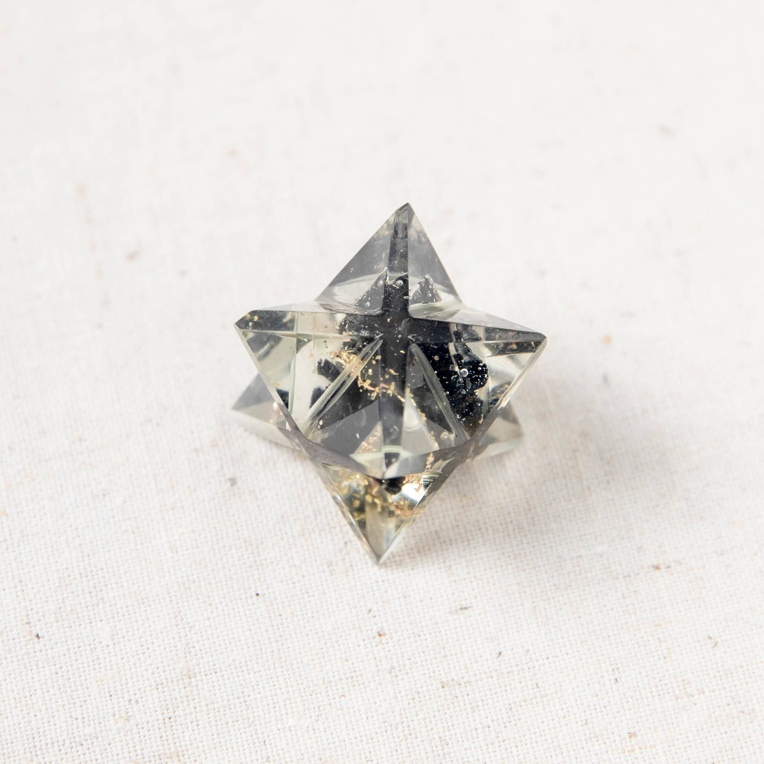 The Black Tourmaline Orgone Merkaba is here to keep you safe and sound and clear from any toxic energies. This transformational gem keeps our root chakra grounded and our vibes calm and collected.